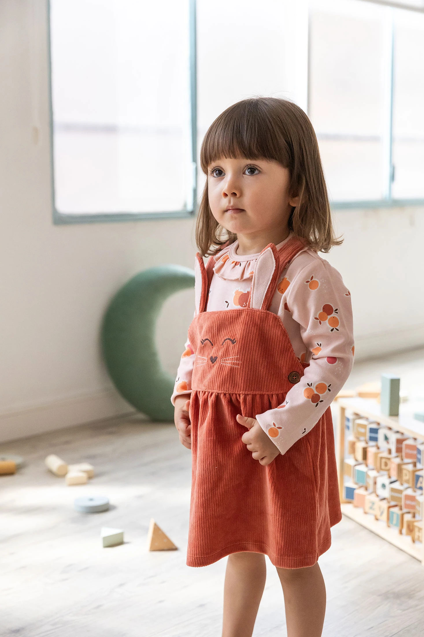 Conjunto de tricô para bebé em cor laranja que apresenta um design de coelhos, perfeito para manter o seu pequeno aquecido e confortável durante os meses mais frios. Confeccionado em materiais suaves e respiráveis, assegura conforto durante todo o dia. Disponível em tamanhos de 1 mês a 2 anos, este conjunto combina perfeitamente com casacos ou sobretudos neutros para um visual adorável. Ideal para qualquer ocasião em que se precise de calor e estilo.