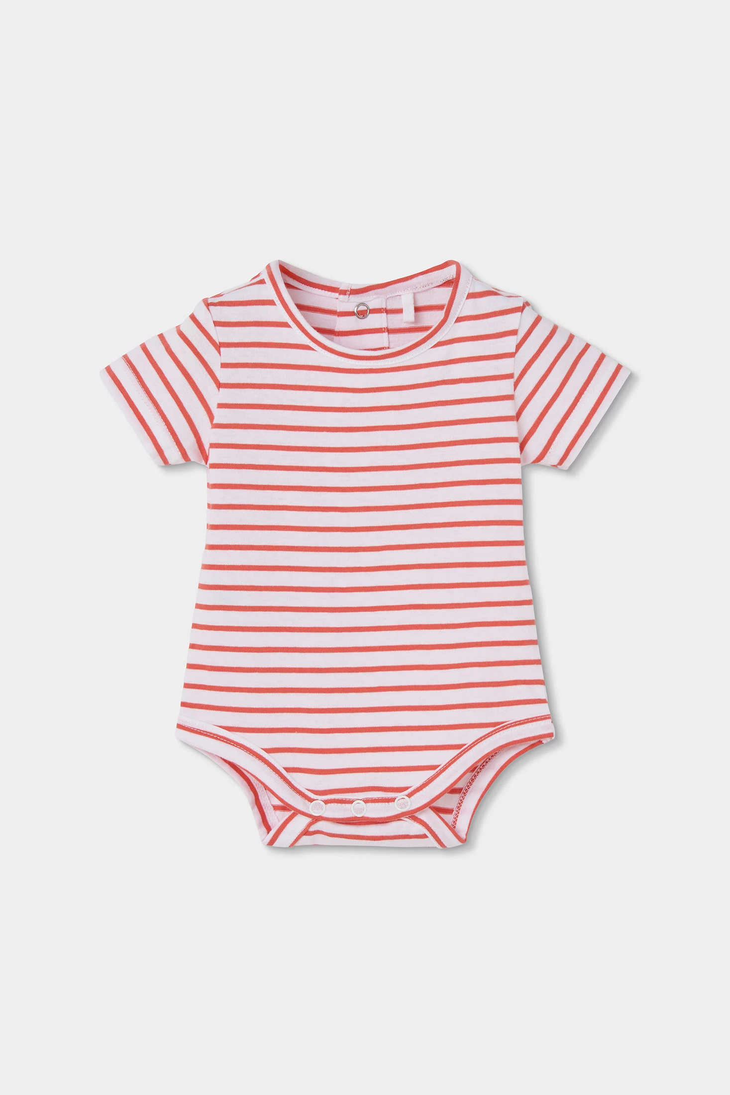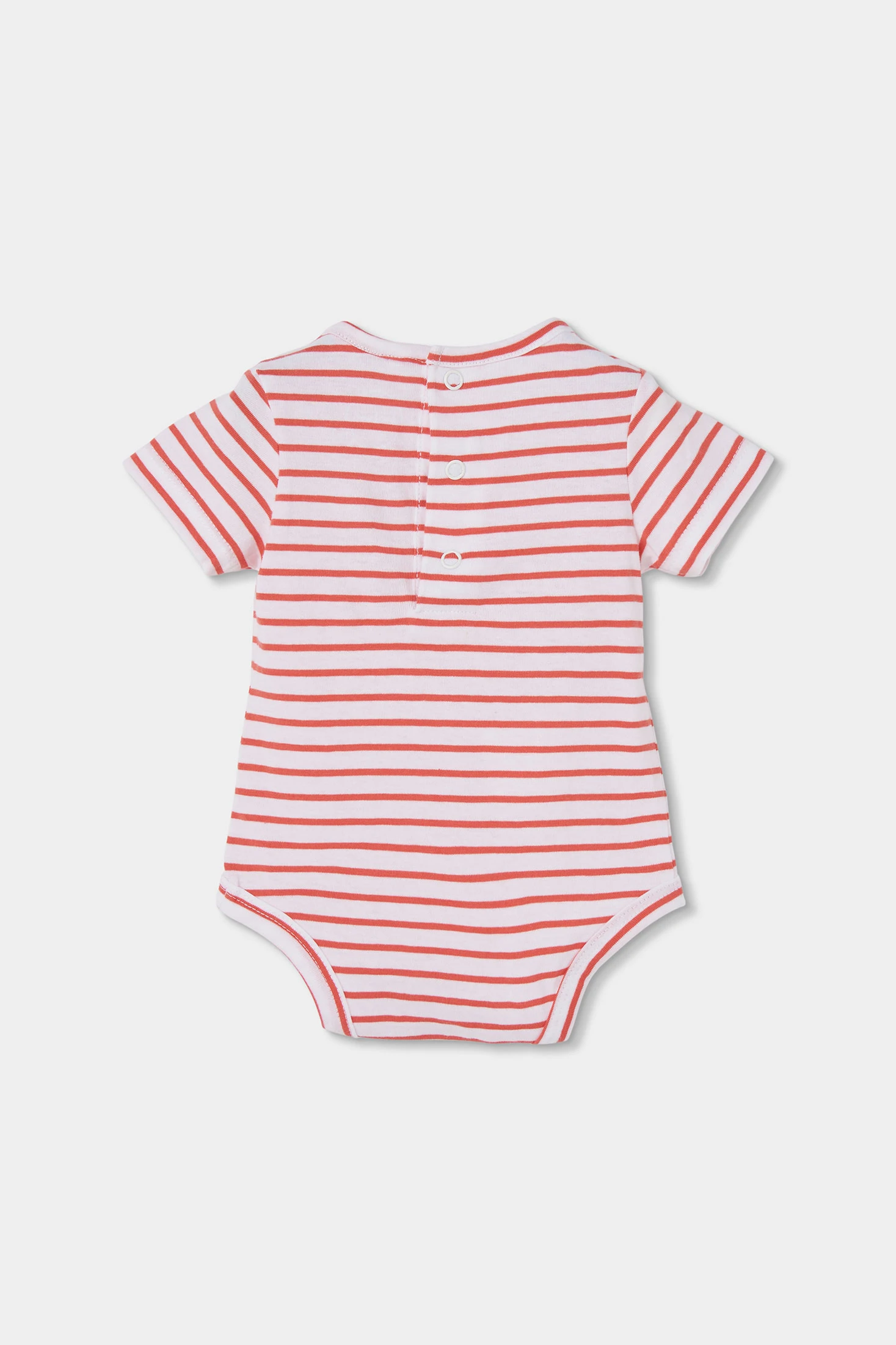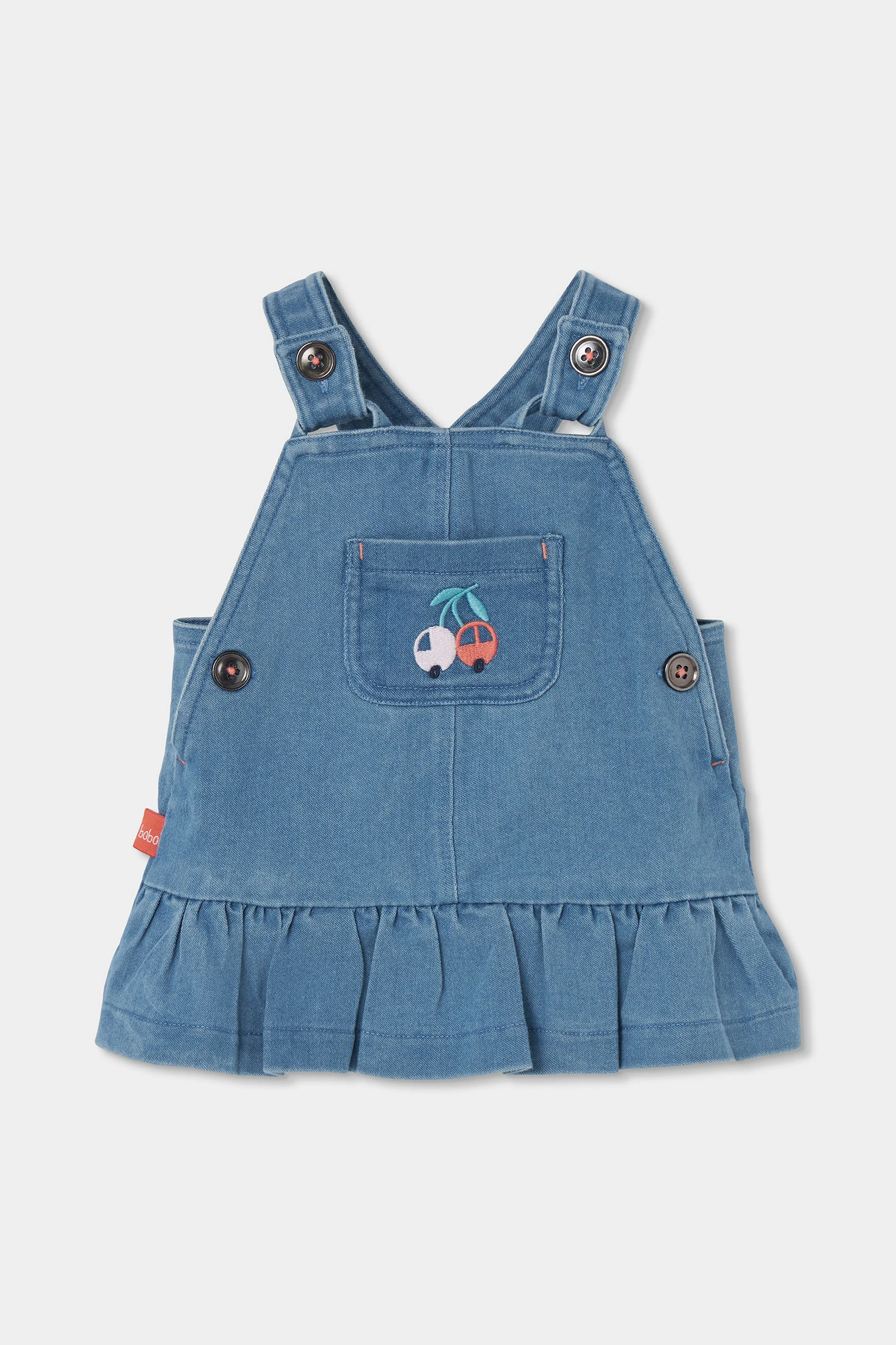 Conjunto para bebé composto por um body às riscas e uma jardineira em ganga com detalhes bordados, perfeito para os dias de verão. O body em algodão macio oferece respirabilidade e conforto, enquanto a jardineira com alças ajustáveis garante um ajuste seguro e confortável. O seu design alegre e veranil é ideal para criar conjuntos cheios de estilo e ternura, acompanhando o bebé em todos os momentos do dia.