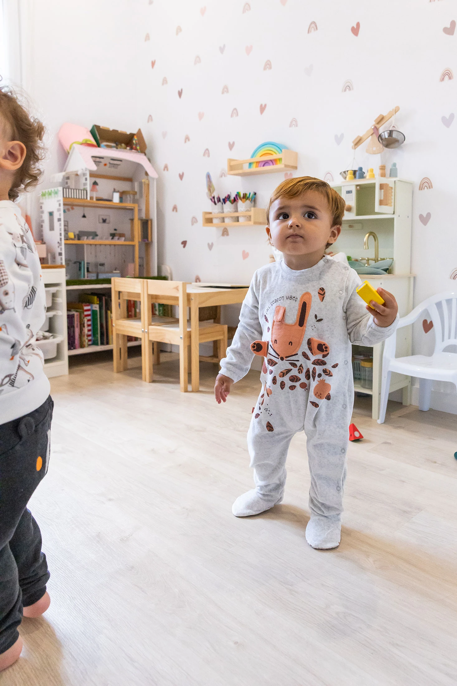 Babygrow de veludo cru, perfeito para o seu bebé nos meses mais frescos. Confeccionado num material suave, oferece uma sensação de conforto e calor incomparáveis. A sua encantadora estampagem de animais adiciona um toque lúdico e divertido. Desenhado com mangas compridas, é ideal para manter o seu pequeno aquecido em qualquer saída. Disponível em tamanhos desde 0 meses até 2 anos, é uma opção versátil para o uso diário, combinando perfeitamente com gorros.
