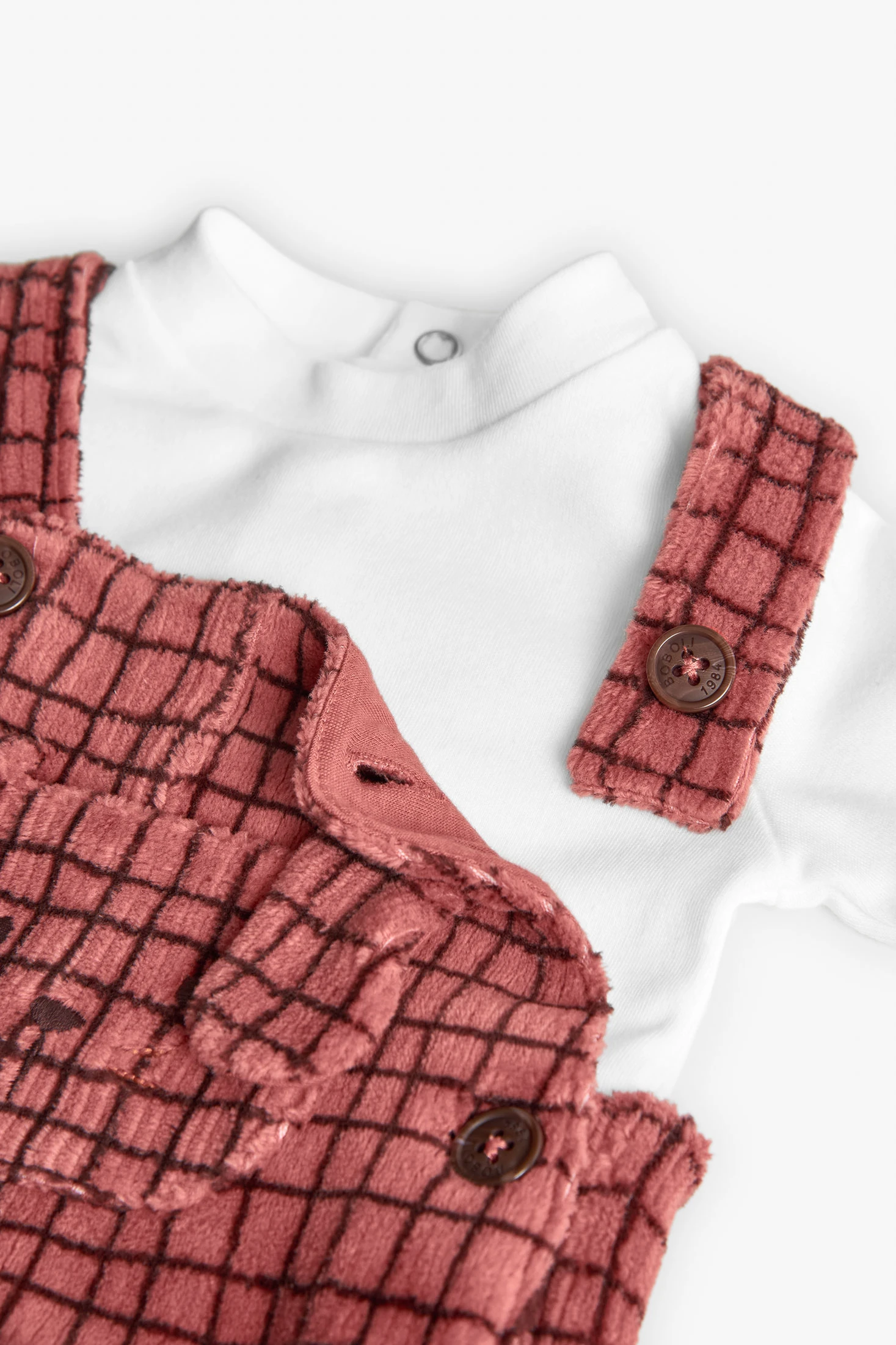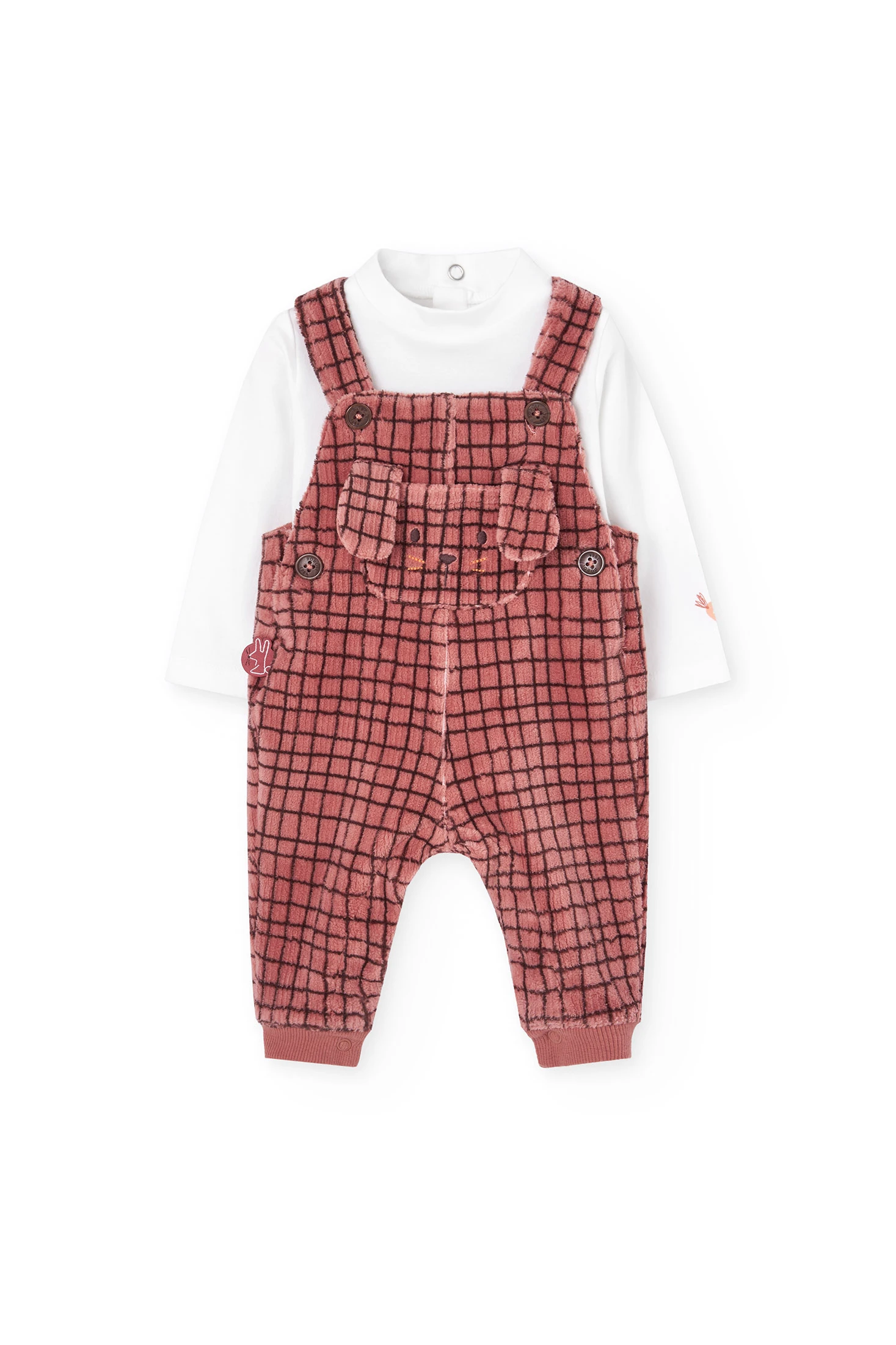 Conjunto de jardineira de malha com design de quadros para bebé menino, ideal para manter o teu pequeno quente durante o outono e inverno. Confeccionado em material suave e quente, apresenta um encantador padrão de quadros em tons castanhos. Alças com botão ajustável asseguram um ajuste confortável, enquanto o bolso frontal adiciona um toque encantador. Disponível em tamanhos de 1 mês a 2 anos, é perfeito para qualquer ocasião informal e combina facilmente com cardigans ou jaquetas para um estilo mais aquecido.