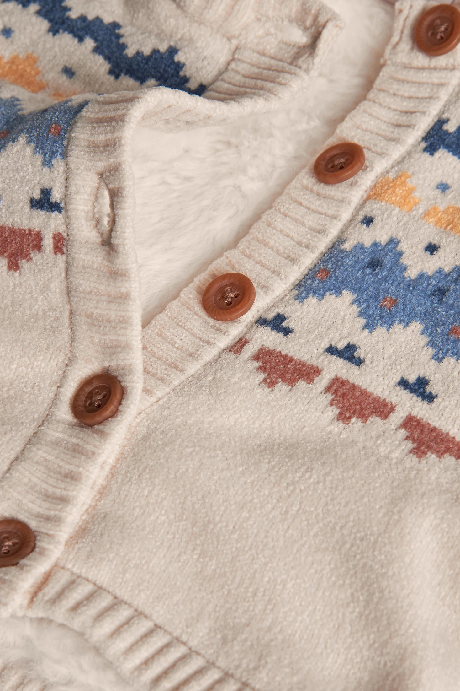 Casaco de malha cru para bebé, ideal para manter o seu pequeno aquecido nas estações mais frias, combina estilo e calor com o seu design clássico. Confeccionado em materiais suaves e desenhado adequadamente para a pele sensível do bebé, esta peça é perfeita para o uso diário durante o outono e o inverno. Disponível em tamanhos desde 1 mês até 24 meses, apresenta um prático fecho de botões que permite um ajuste fácil sobre a roupa do dia-a-dia ou em ocasiões especiais. Este casaco versátil combina harmoniosamente com calças, leggings ou vestidos, adicionando um toque acolhedor ao conjunto do seu bebé.