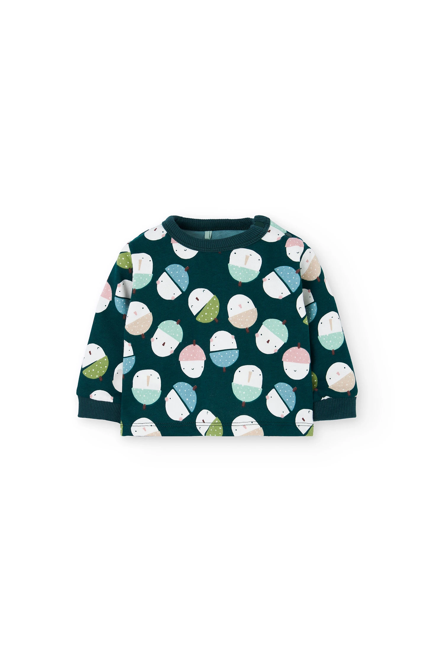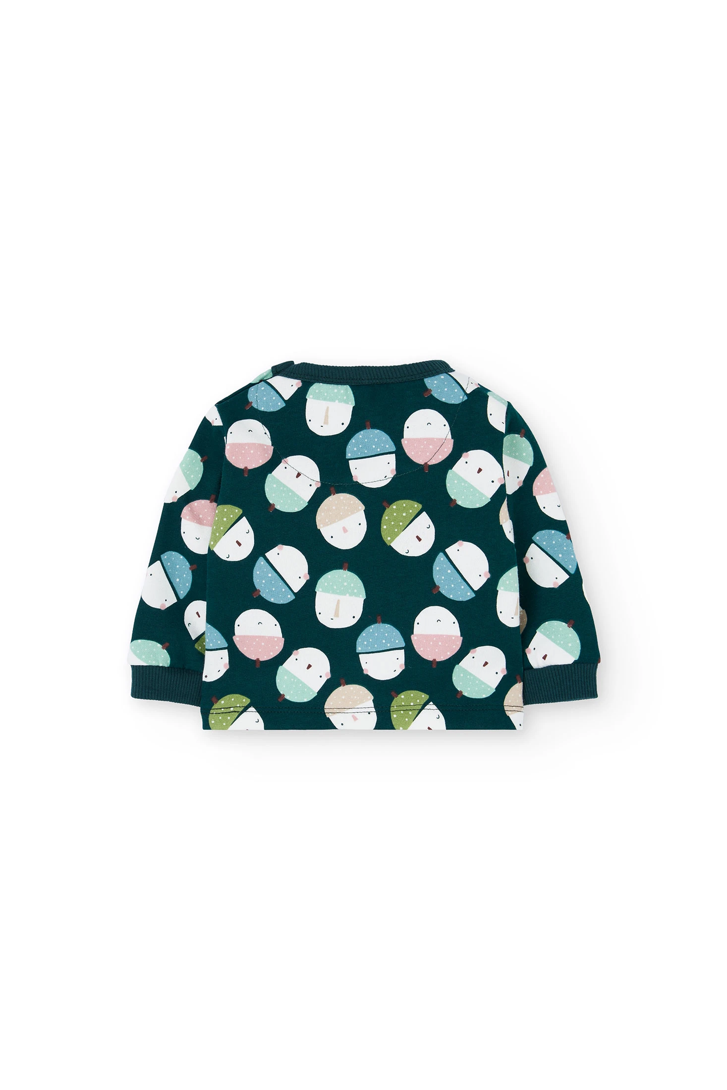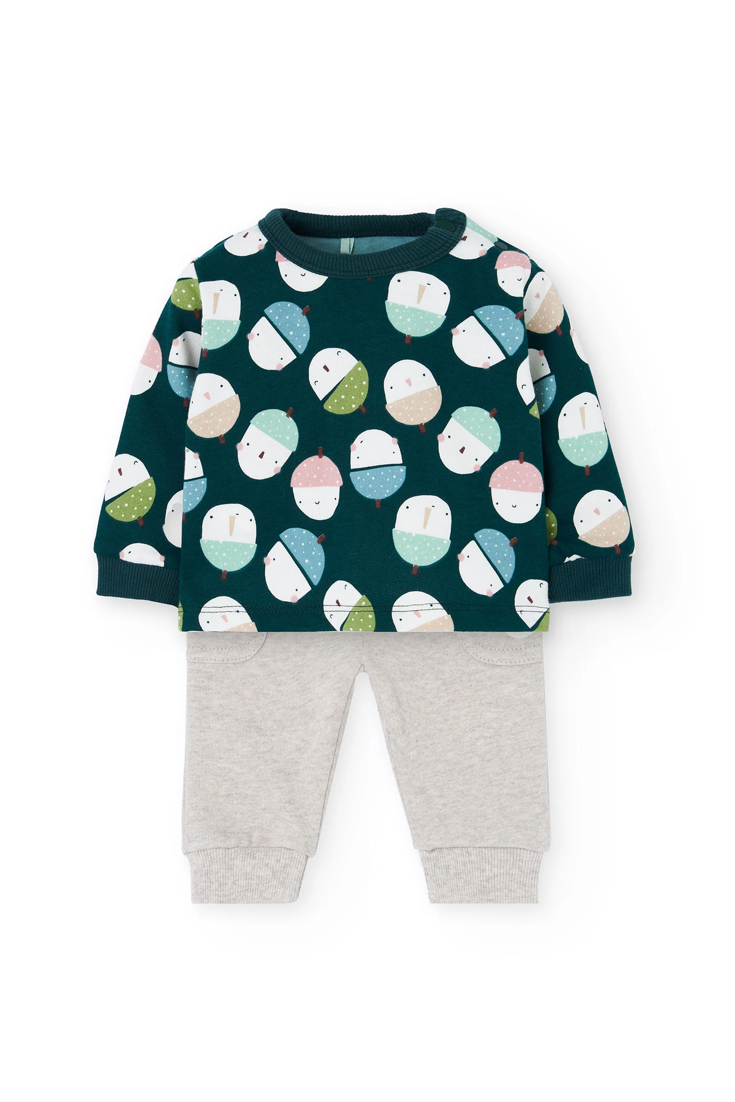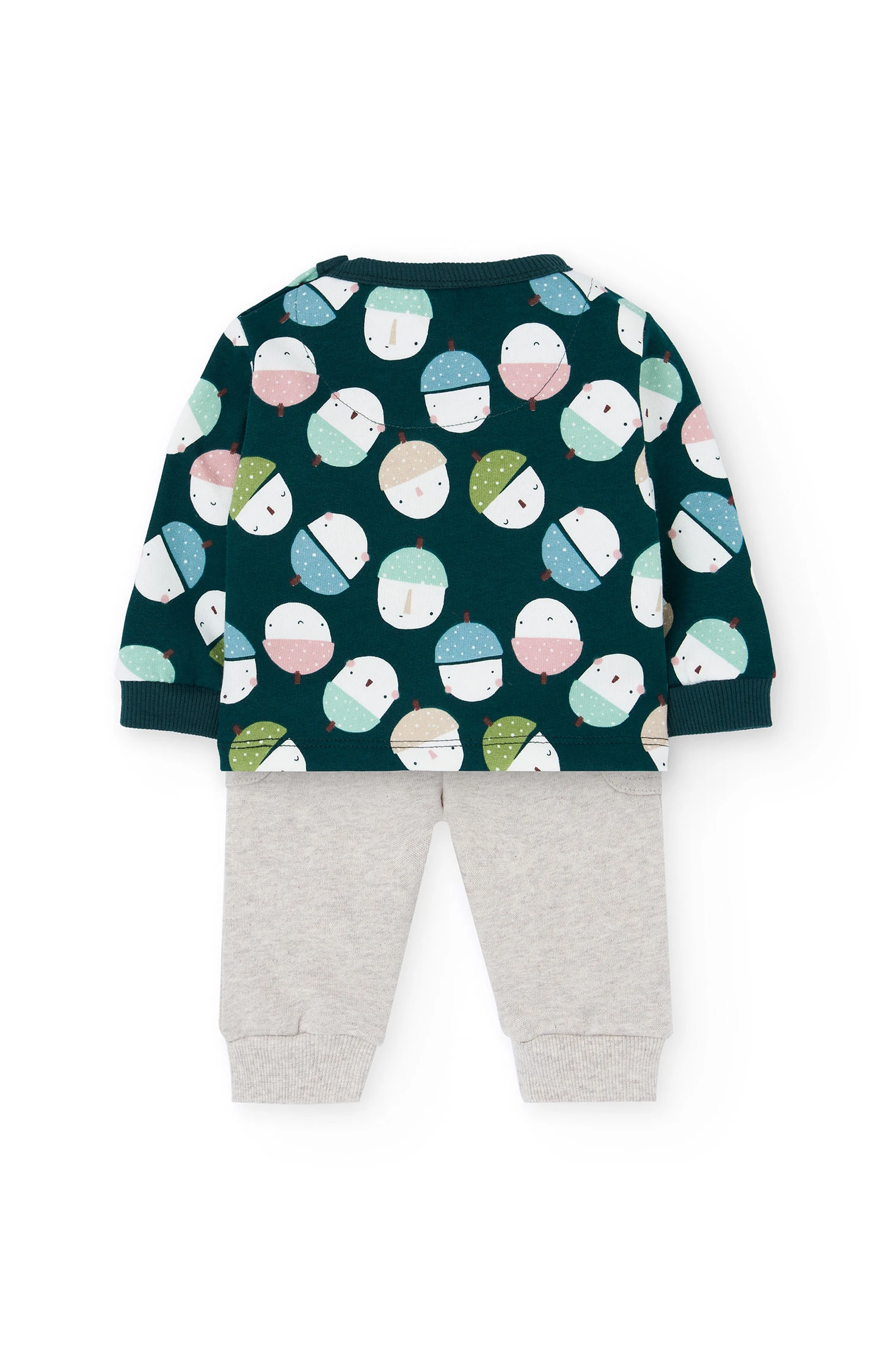 Conjunto de malha para bebé em encantadora cor verde com estampado de bolotas, ideal para manter as crianças quentes e com estilo durante o inverno. Fabricado com materiais quentes e suaves, garante conforto e uma ótima mobilidade para os pequenos. Disponível em tamanhos desde 1 mês até 2 anos, este conjunto pode ser facilmente combinado com outras peças do guarda-roupa infantil, oferecendo inúmeras possibilidades para um look moderno e versátil.