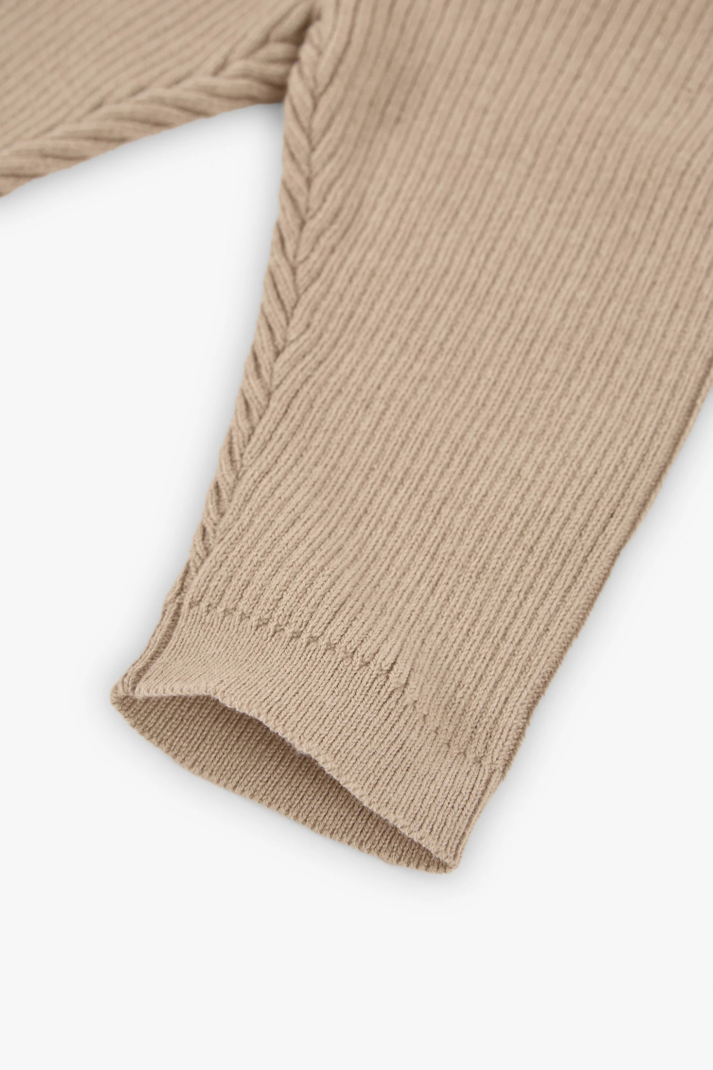 Leggings para bebé, desenhados para se ajustarem aos pequenos de 1 mês a 2 anos, asseguram um ajuste perfeito e confortável. Confecionados em algodão suave e respirável, são ideais para manter o seu bebé aquecido durante as estações frescas. Podem ser facilmente combinados com outras peças da coleção para criar looks adoráveis e versáteis. Perfeitos para uso diário, oferecem liberdade de movimento, permitindo que o seu pequeno explore o mundo com conforto.