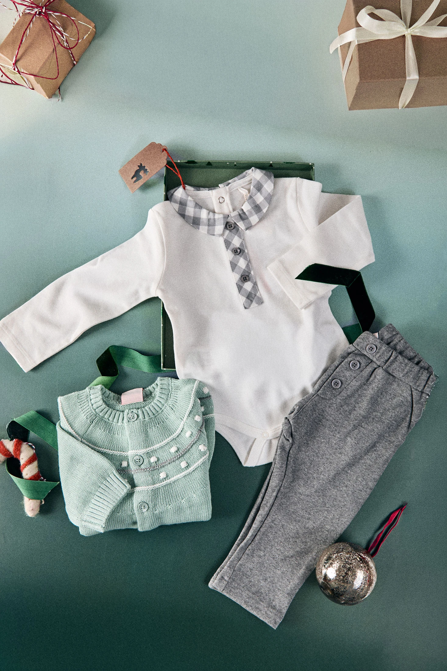 Conjunto de malha cinza entrançada para bebé, ideal para os meses mais frios do ano, graças à sua confeção num tecido de malha suave e quente que garante conforto e agasalho. O conjunto inclui uma camisola com um elegante desenho entrançado em cinza, proporcionando um toque de distinção. Disponível em tamanhos de 1 mês a 2 anos, é facilmente combinável com diversas peças de roupa, assegurando que o seu pequeno esteja sempre na moda e protegido do frio.
