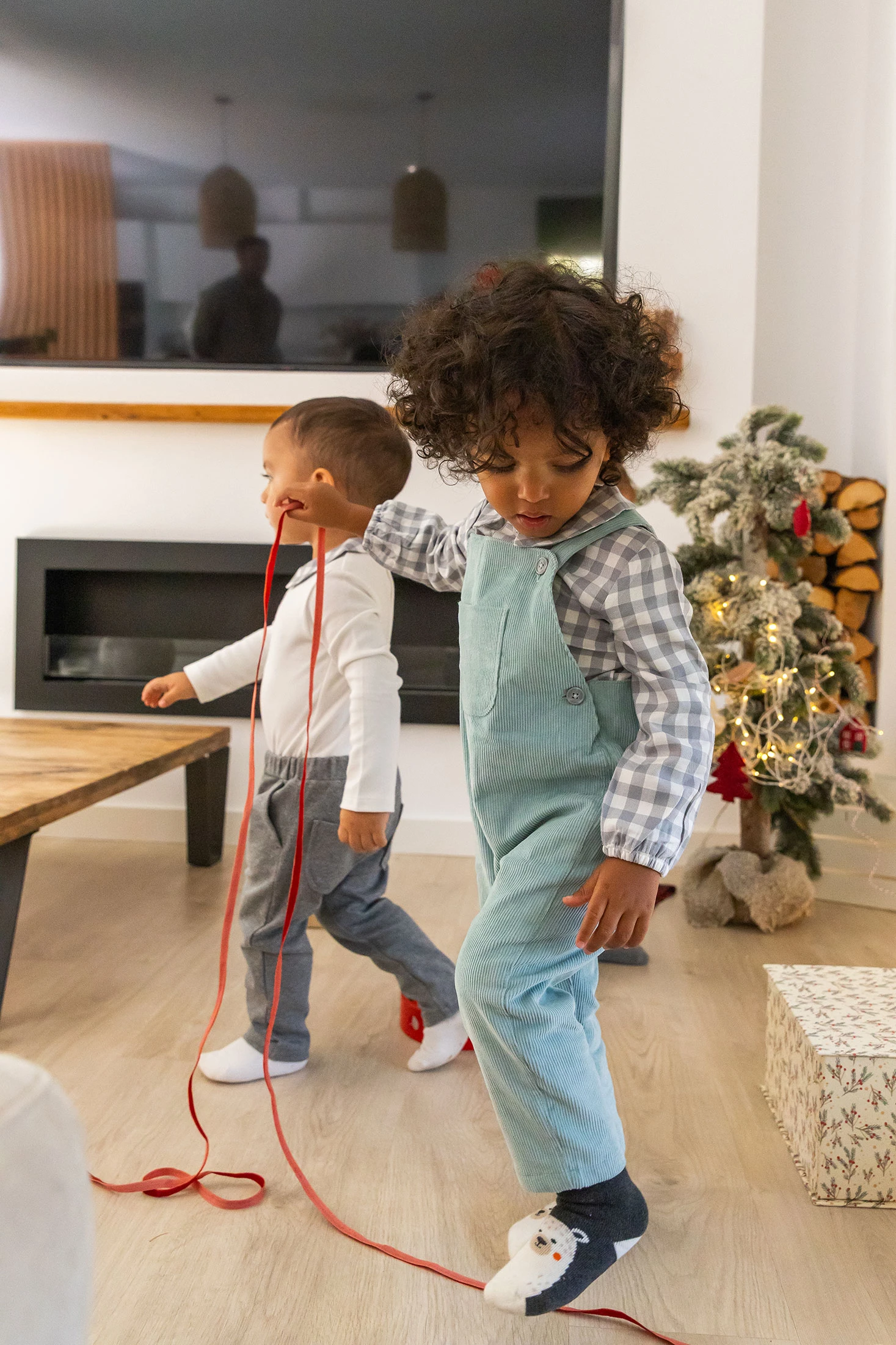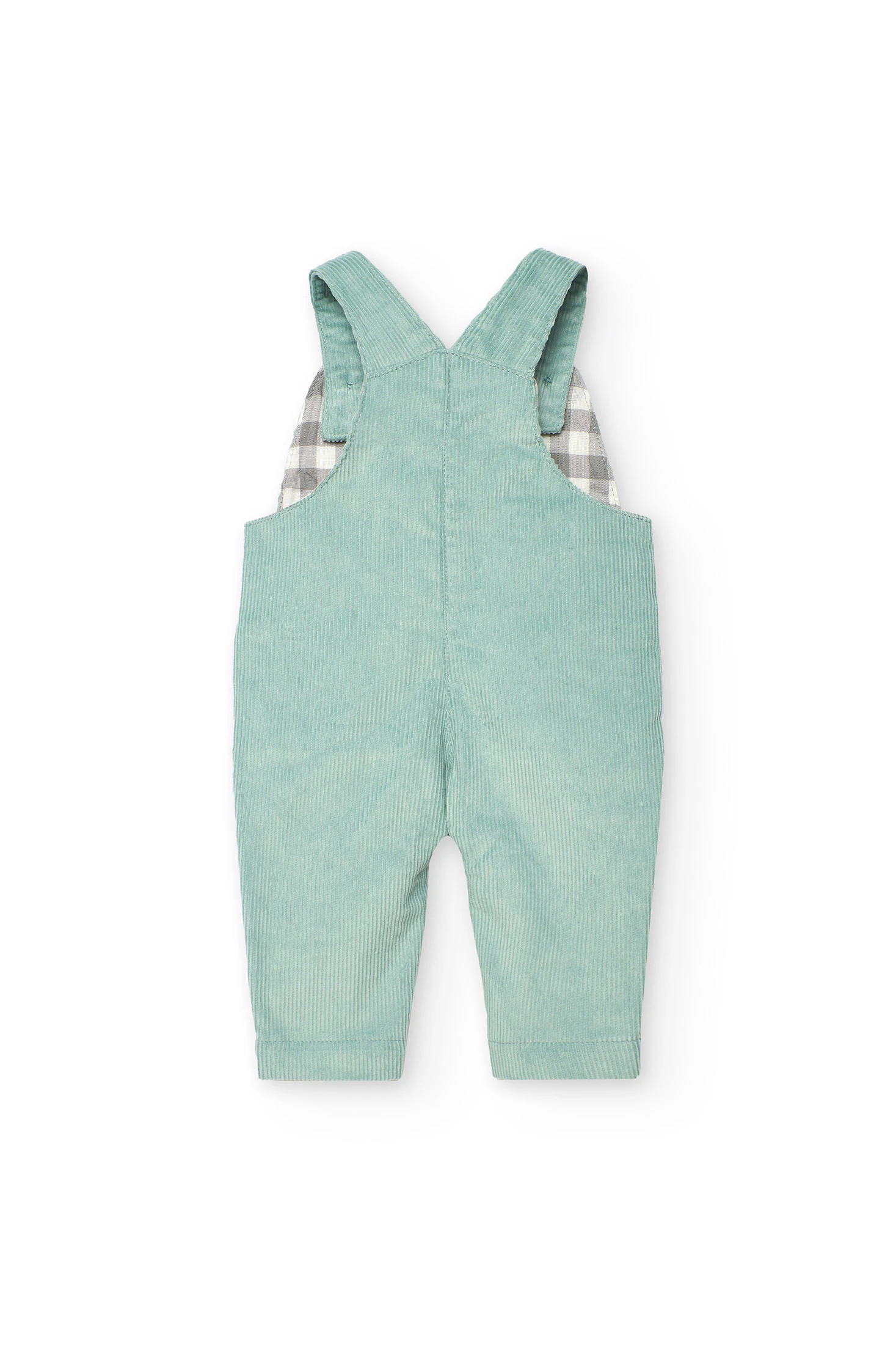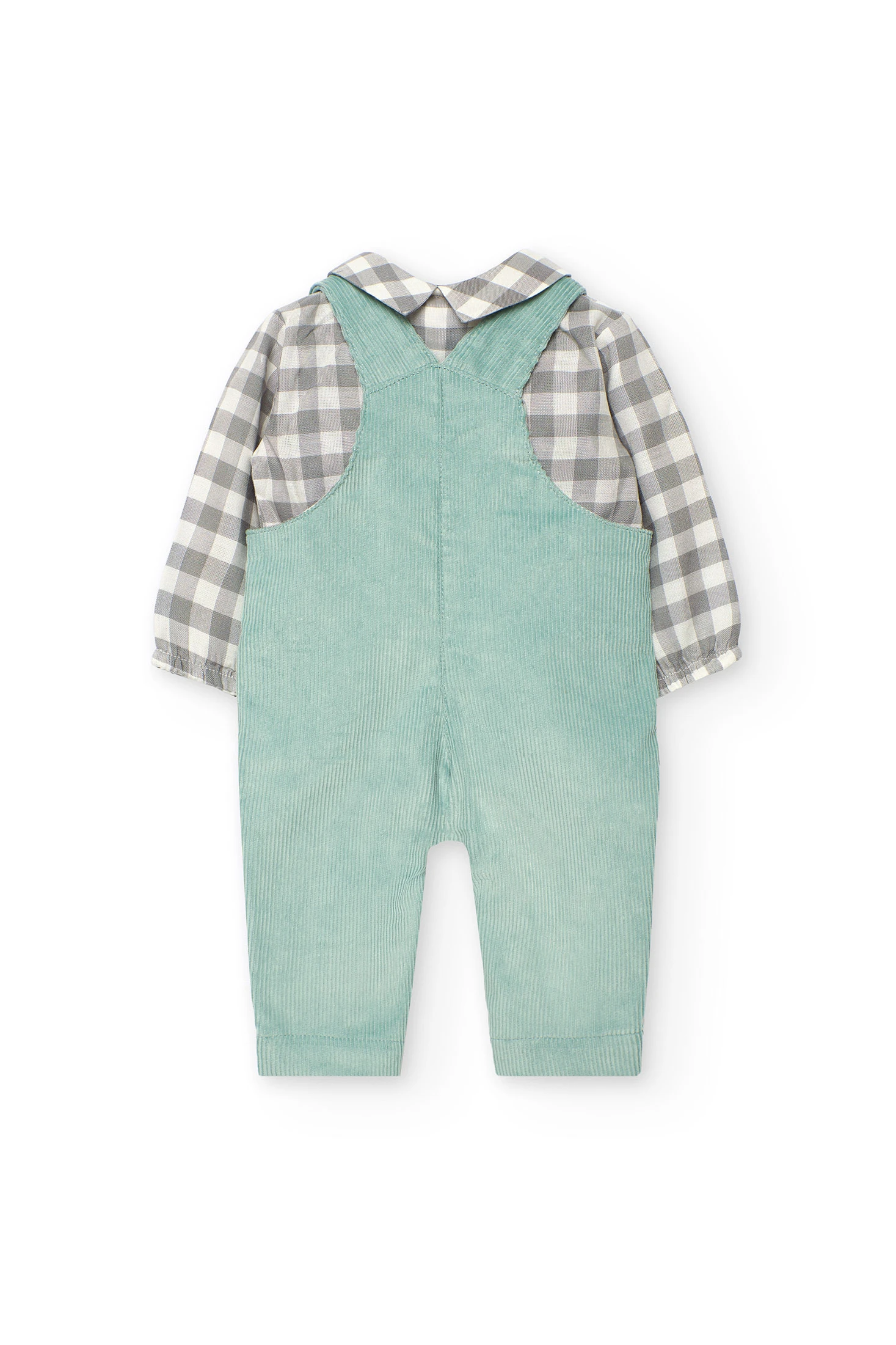 Conjunto de bebé em veludo verde com detalhes de quadrados, ideal para a temporada de outono e inverno. Fabricado em veludo suave e quente, proporciona conforto e calor aos mais pequenos. Disponível em tamanhos desde 1 mês até 2 anos, é perfeito para combinar com botinhas ou sapatinhos fechados em dias frescos ou eventos familiares. O design clássico e os padrões de quadrados oferecem um estilo elegante e intemporal para o guarda-roupa infantil.