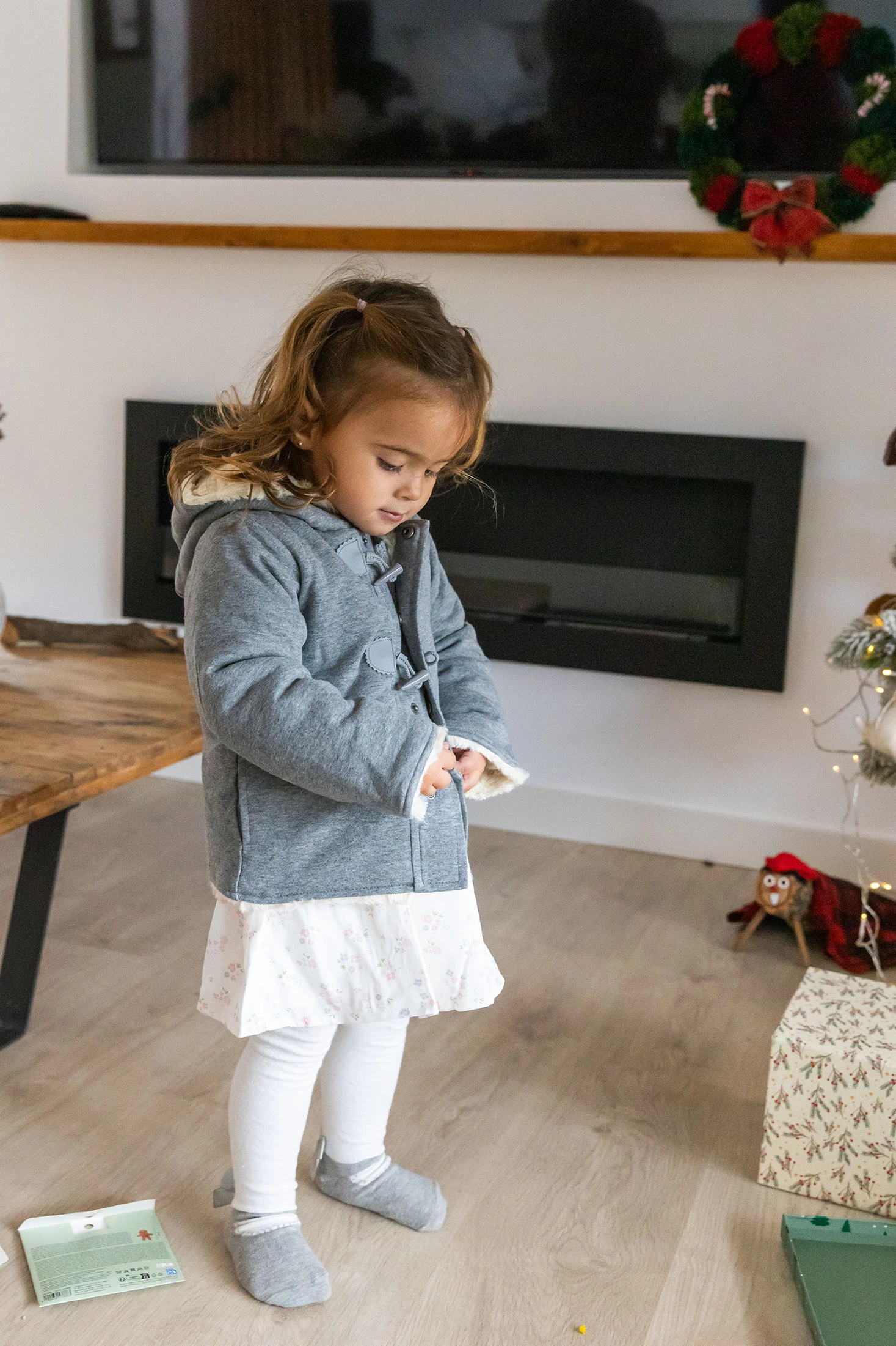 Casaco de malha cinzento para bebé, ideal para as estações de outono e inverno, proporciona calor e suavidade ao mesmo tempo. Confeccionado em um delicado material de malha, oferece conforto sem irritar a pele sensível do bebé. Disponível em tamanhos desde 1 mês até os 2 anos, oferece um ajuste perfeito ao longo do crescimento infantil. O seu design versátil permite combiná-lo facilmente com diversas peças do guarda-roupa do bebé, como calças de algodão ou polainas, para um conjunto acolhedor e elegante.