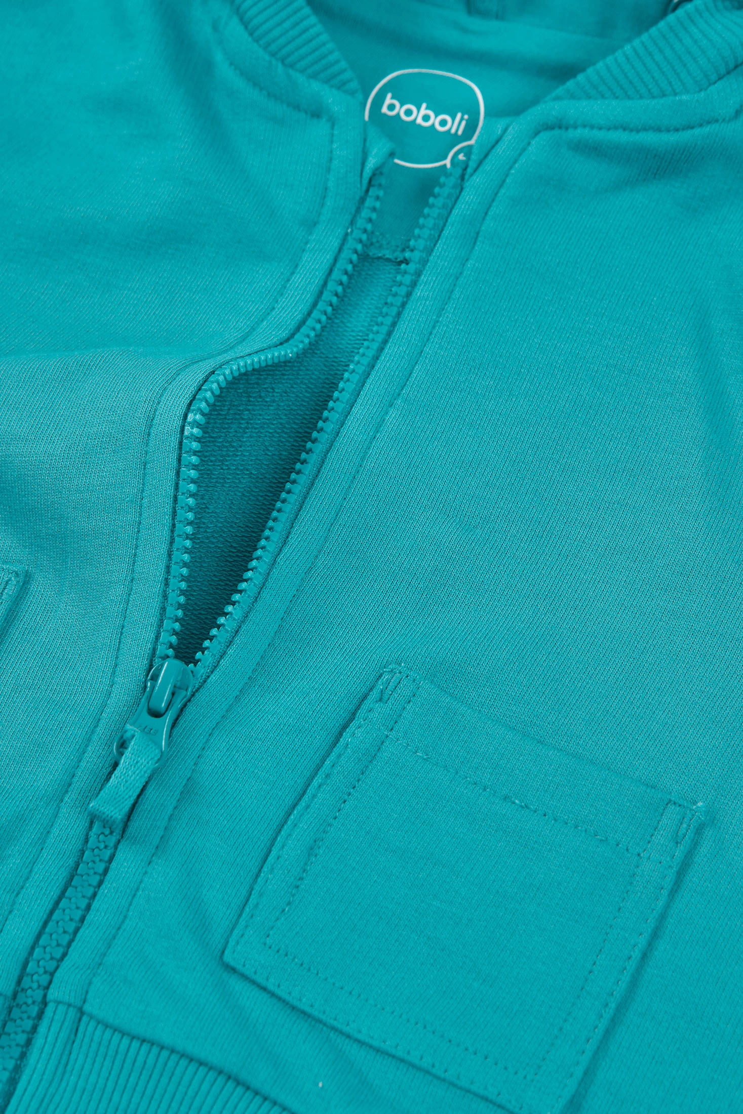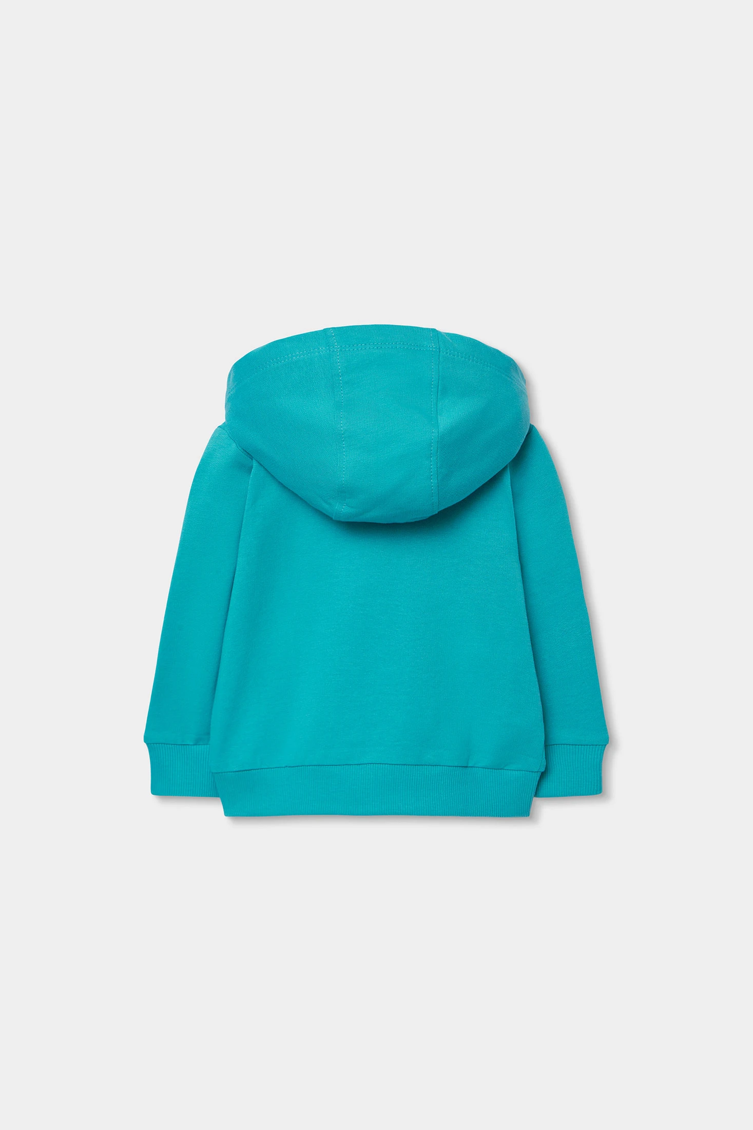 Casaco de pelúcia azul-turquesa para bebé, ideal para manter seu pequeno aquecido em dias mais frescos. Fabricado com tecido suave, oferece conforto e calor. O design inclui capuz e fecho de zíper, o que facilita sua colocação. Vem com dois práticos bolsos frontais. Seus tamanhos variam de 1 mês a 24 meses. É uma peça versátil que pode ser facilmente combinada com calças ou jardineiras para um look confortável e moderno.