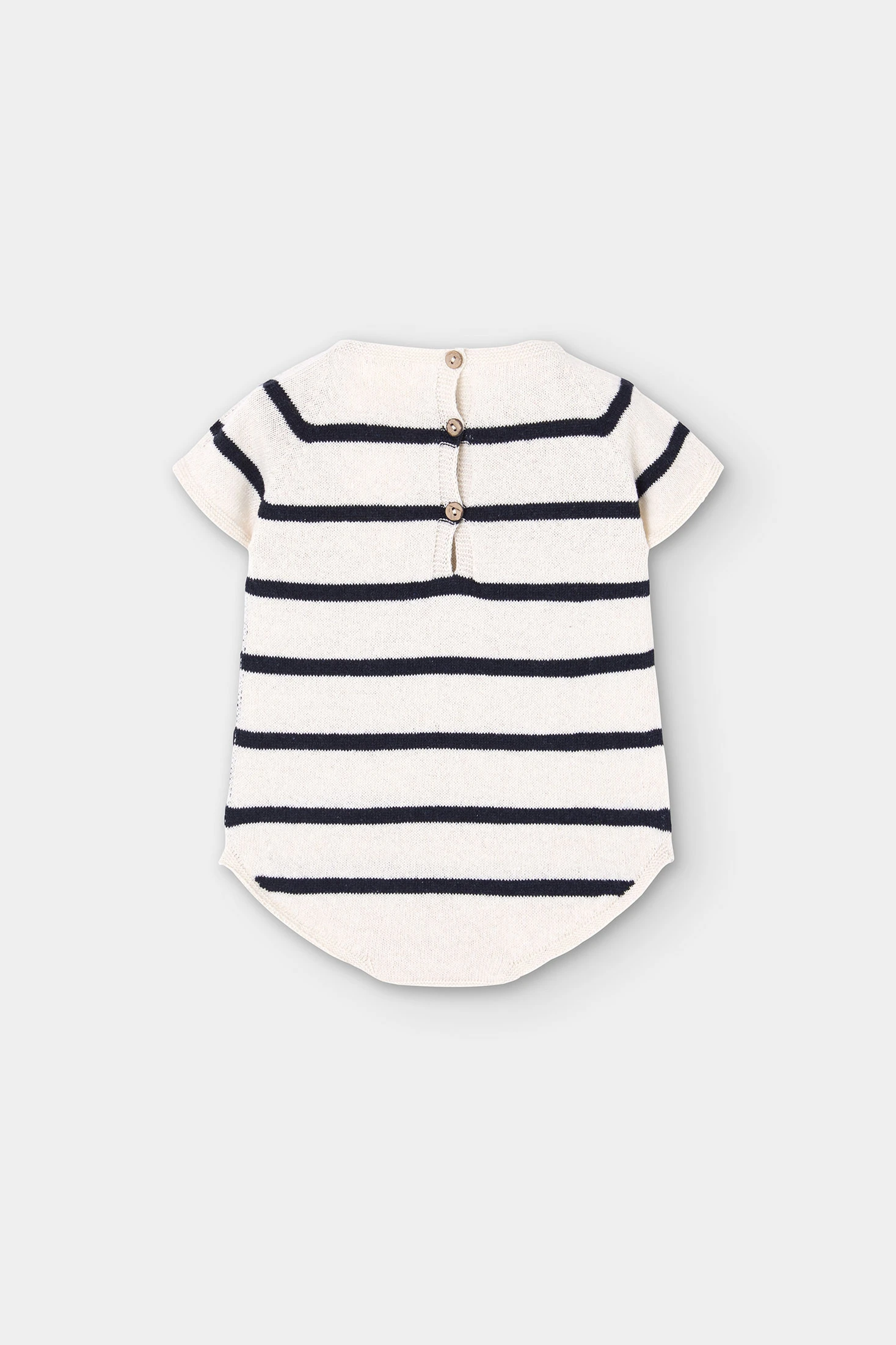 Macacão bebé em malha às riscas fio 100% reciclado | Limited Edition