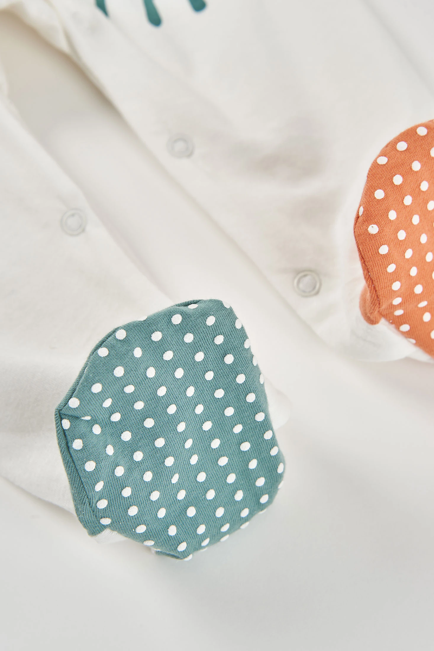 Babygrow de algodão branco para bebé, perfeito para os primeiros meses. Apresenta um design divertido com animais sorridentes em tons laranja e verde, que adiciona um toque alegre. Com mangas compridas e pés cobertos. Disponível em tamanhos de 0 a 24 meses, assegura um ajuste ideal conforme o teu pequeno cresce. O seu tecido suave garante conforto e o fecho frontal facilita a troca de fraldas. Ideal para uso diário durante todo o ano.