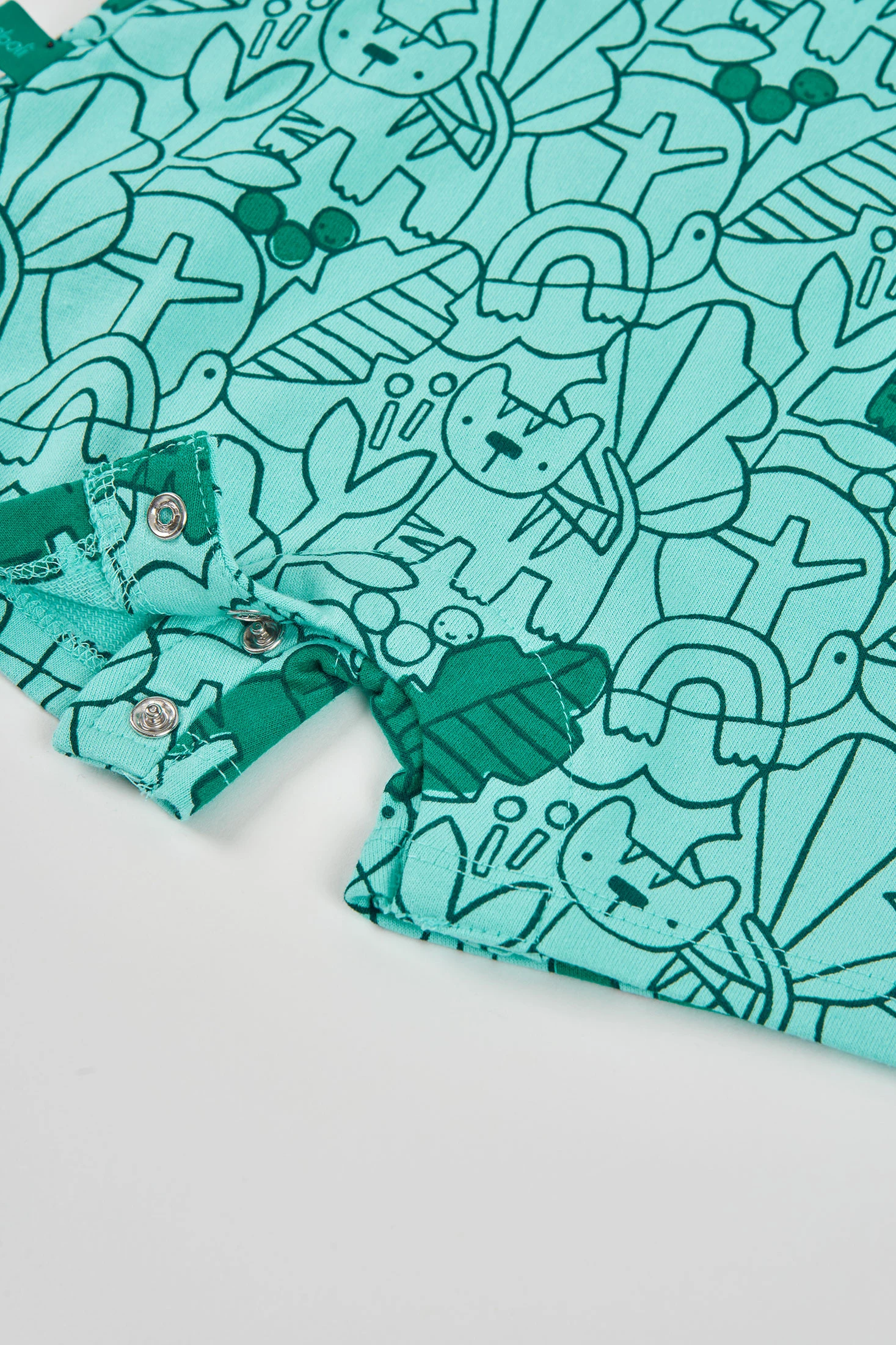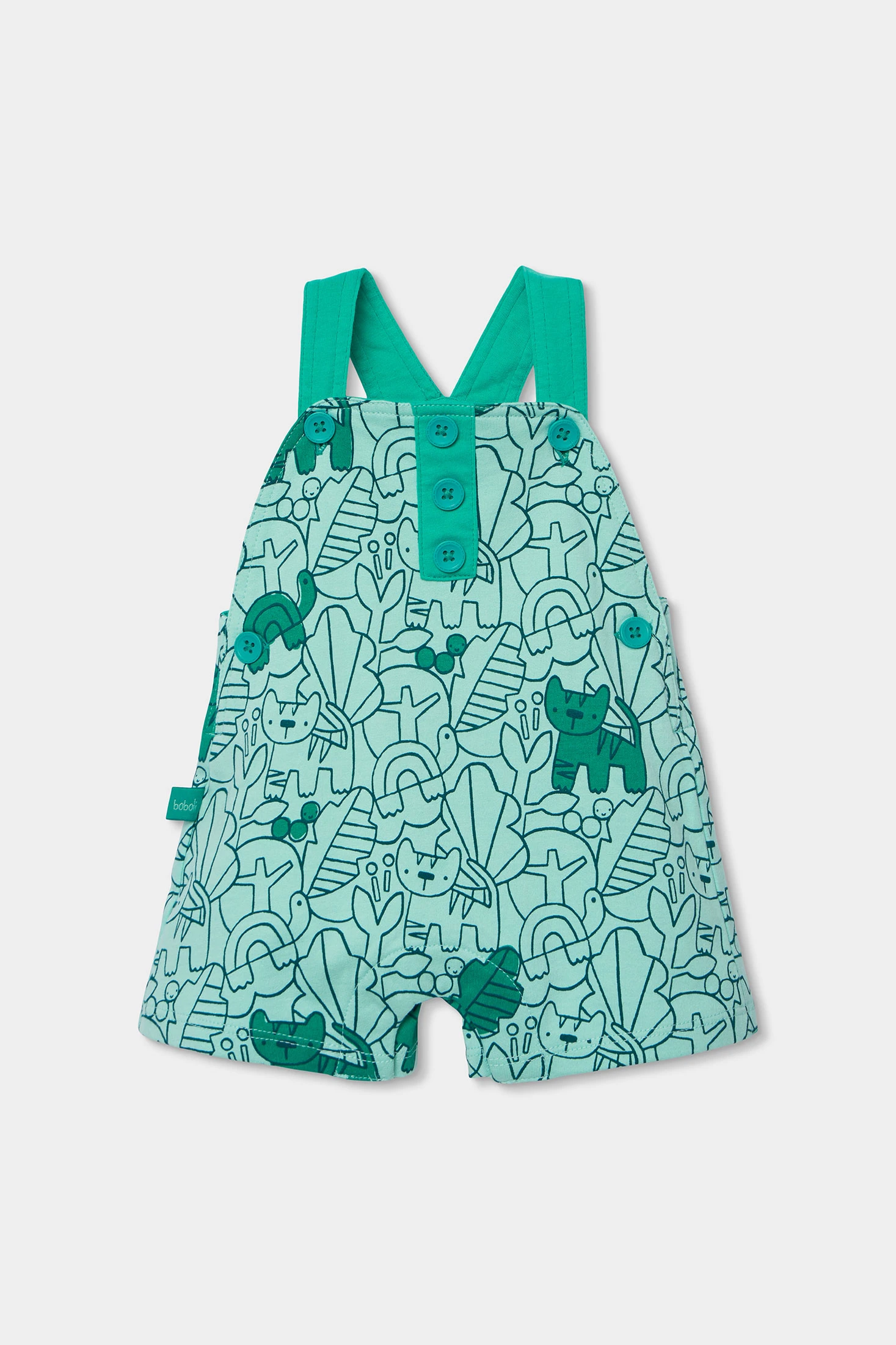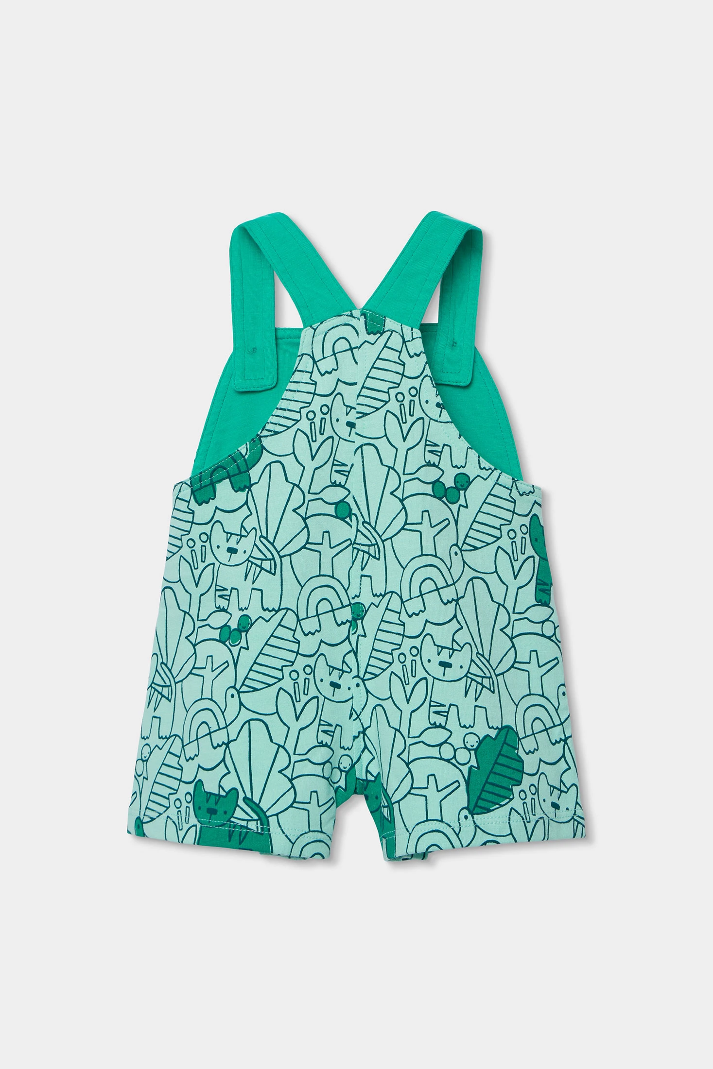 Conjunto de malha para bebé menino, ideal para idades desde 0 meses até 24 meses. Elaborado em algodão, oferece suavidade e conforto. Apresenta um design estampado com animais que adiciona um toque divertido e colorido. Combina tons verdes e brancos, com detalhes de botões que facilitam o seu uso. Perfeito para vestir o pequeno em qualquer ocasião, mantendo-o confortável e estiloso. O seu design versátil torna-o ideal para o uso diário. As alças com botões facilitam o ajuste do macacão.