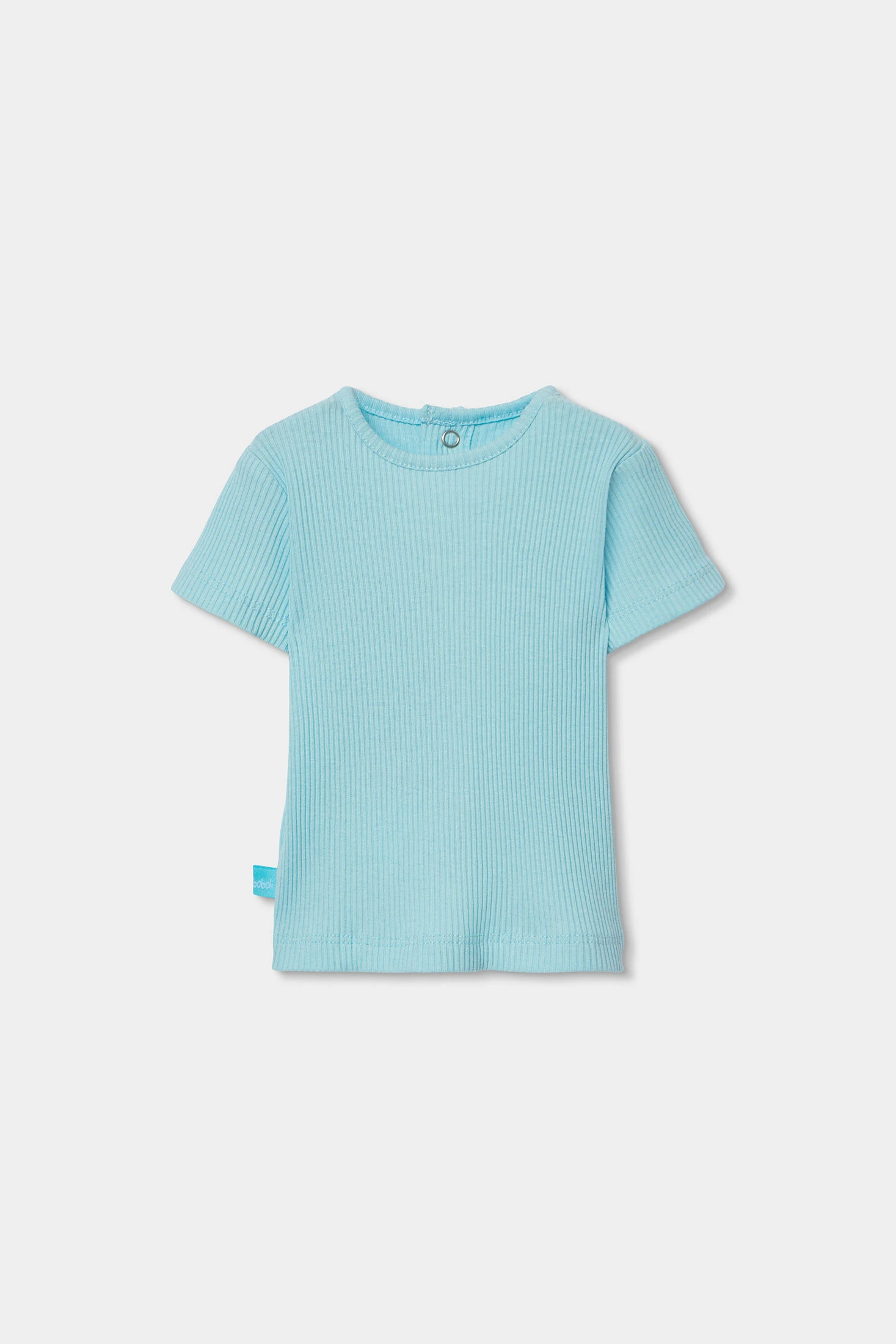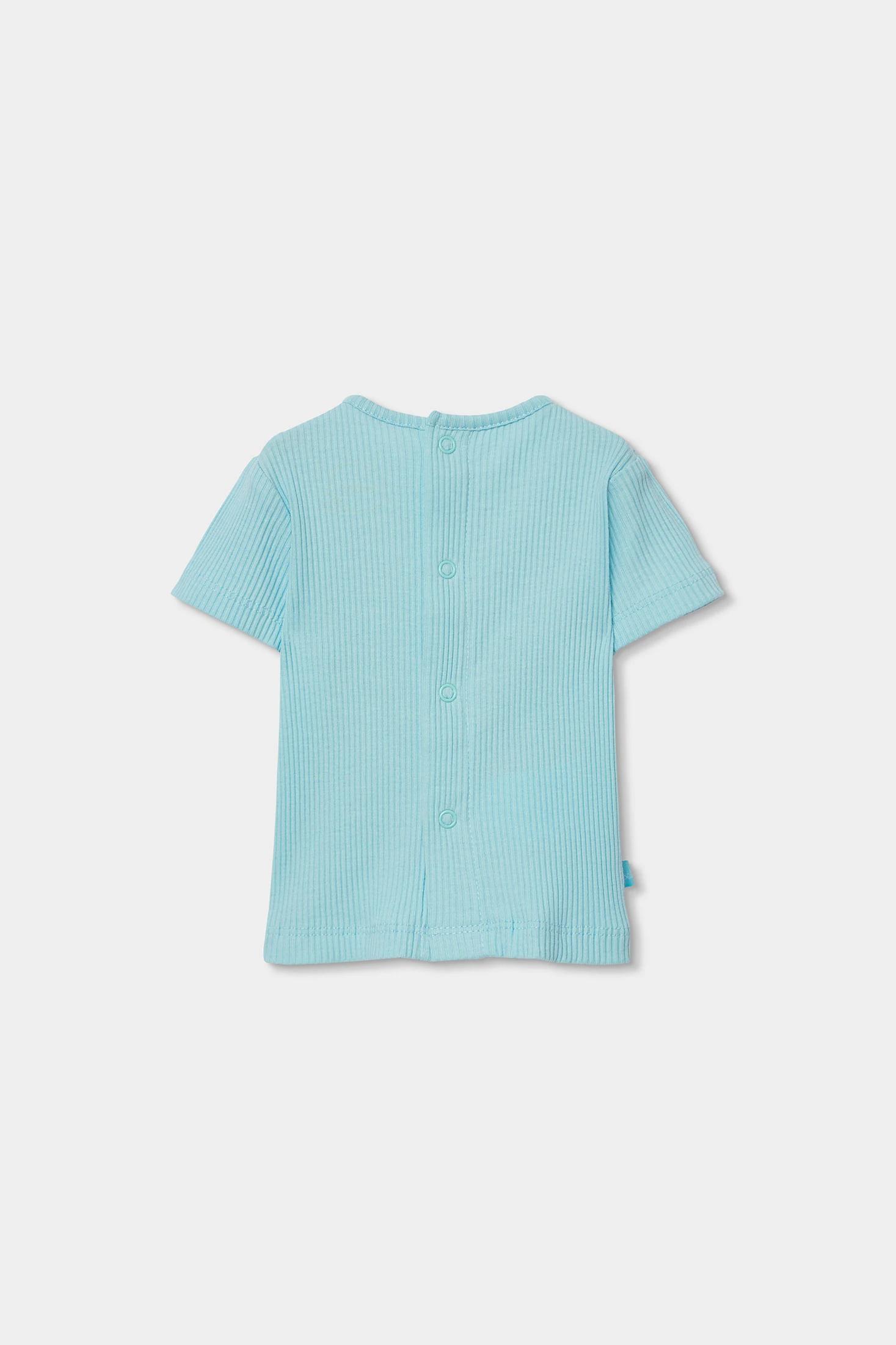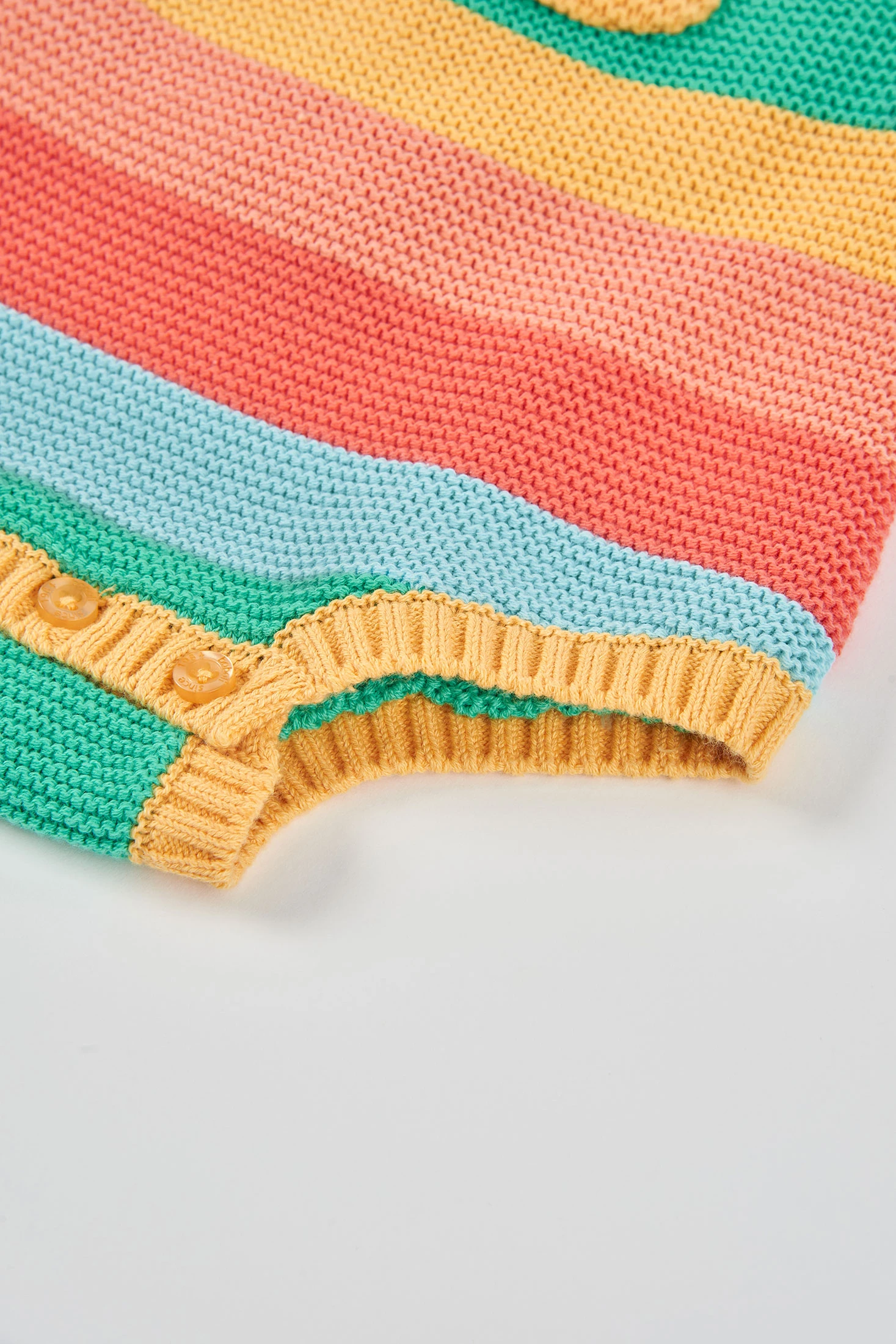 Conjunto de bebé em algodão apresenta um design às riscas multicolor, ideal para um look alegre e confortável. Inclui uma camiseta de manga curta em azul claro e um macacão de malha às riscas em tons de verde, vermelho, amarelo e azul. É perfeito para a pele delicada do bebê. Está disponível em tamanhos desde 1 mês até 12 meses. O seu estilo colorido torna-o perfeito para qualquer saída casual, combinando conforto com um toque divertido e moderno.