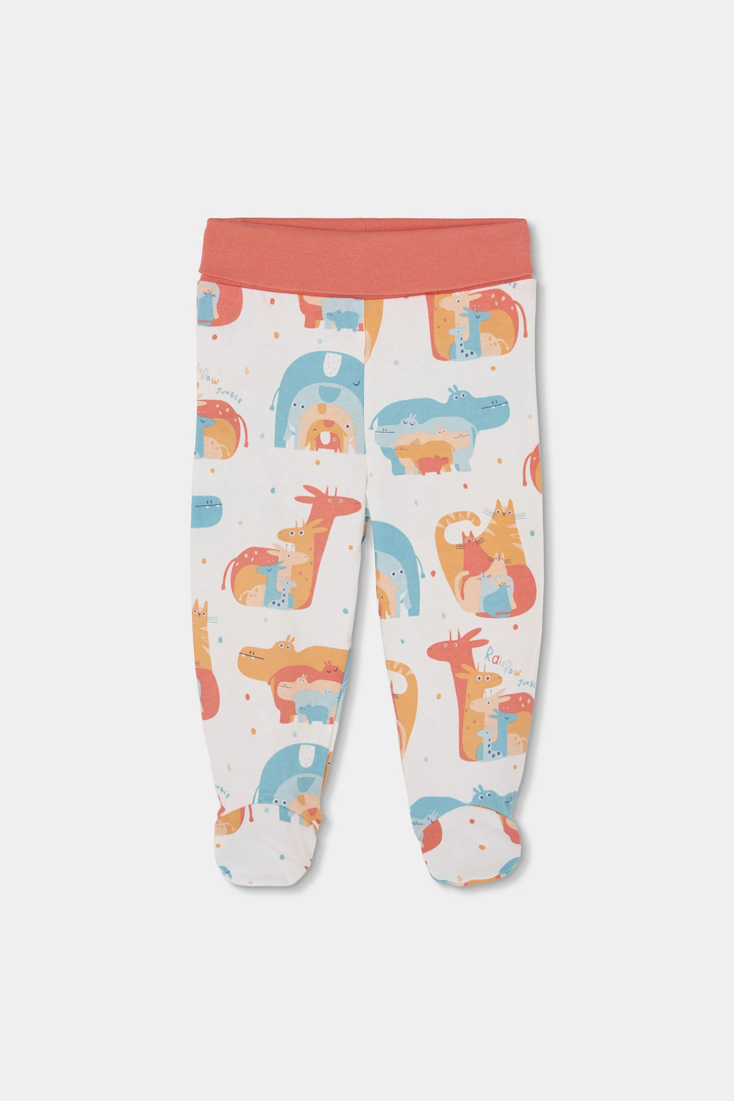 Conjunto de malha para bebé desenhado em algodão suave, ideal para peles delicadas e os primeiros meses de vida. Apresenta uma estampa alegre de animais em cores vibrantes. Disponível em tamanhos desde 0 até 6 meses, adaptando-se ao crescimento do seu bebé. A peça inclui um gorro a condizer. O seu design confortável e funcional é ideal para o dia a dia. A cor branca de fundo realça os desenhos, conferindo um toque de diversão e estilo terno para os mais pequenos.