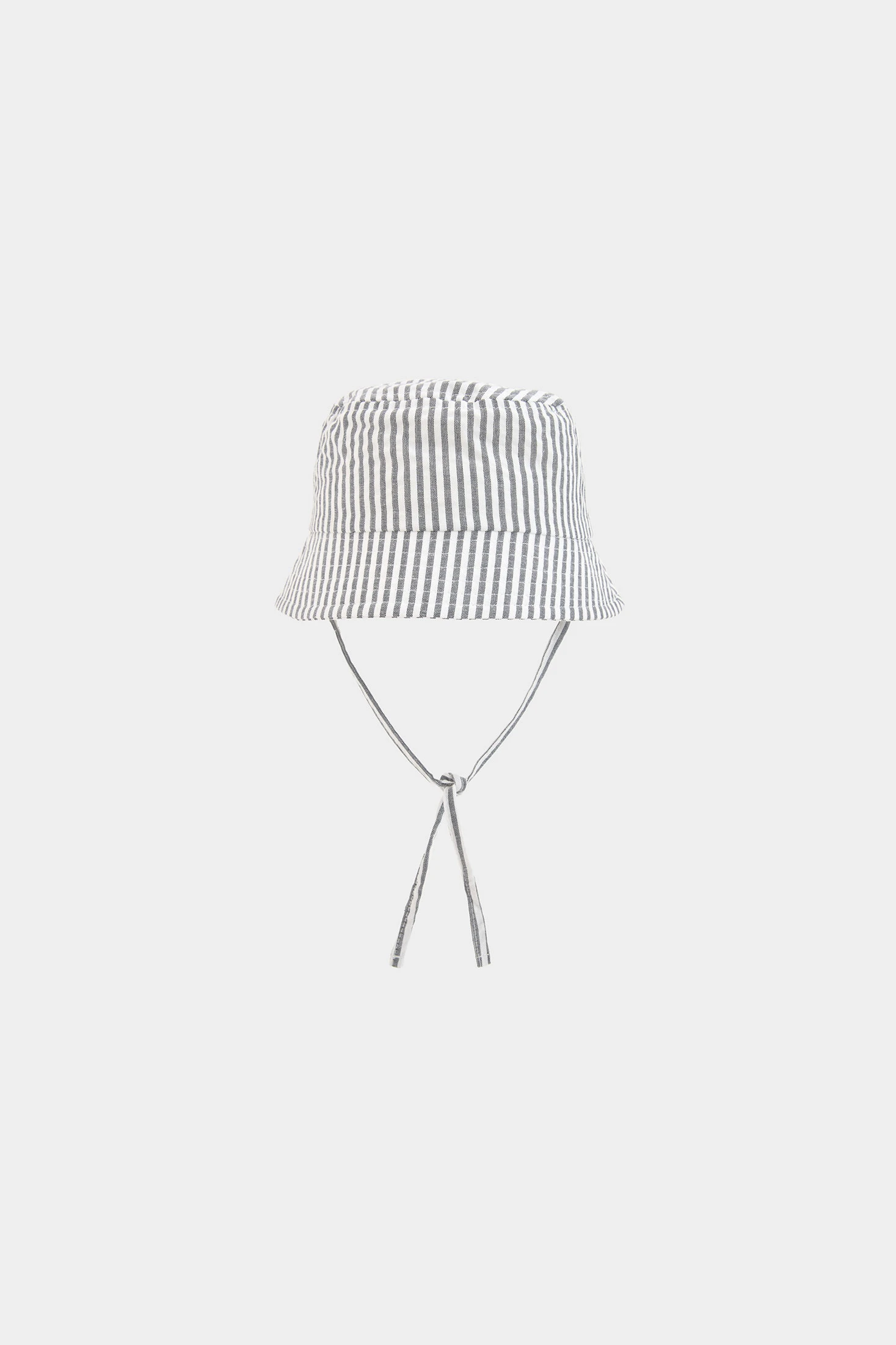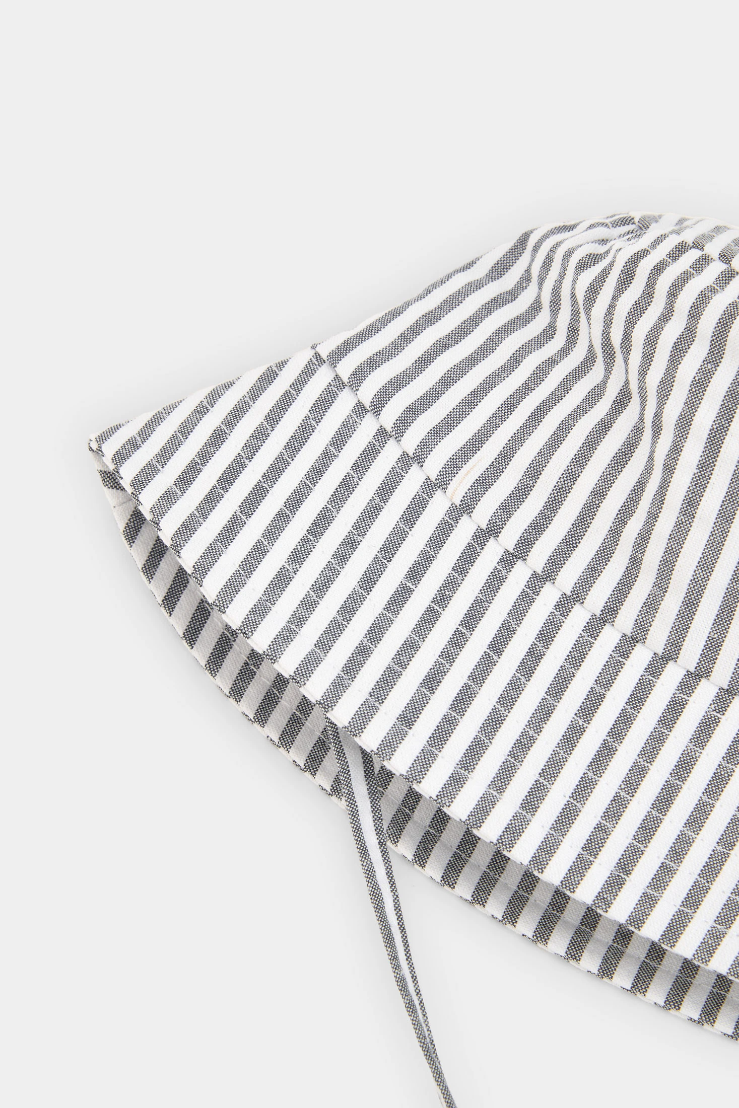 Gorro de popelina listado, ideal para os mais pequenos durante a primavera e o verão. O seu design às riscas em tons de cinza proporciona um toque clássico e elegante. Confeccionado com material leve, oferece conforto e respirabilidade. Adequado para idades desde 0 meses até 2 anos, disponível em tamanhos XXS a M. Inclui cordões para um ajuste seguro. Perfeito para combinar com roupas casuais, protegendo do sol sem sacrificar o estilo.