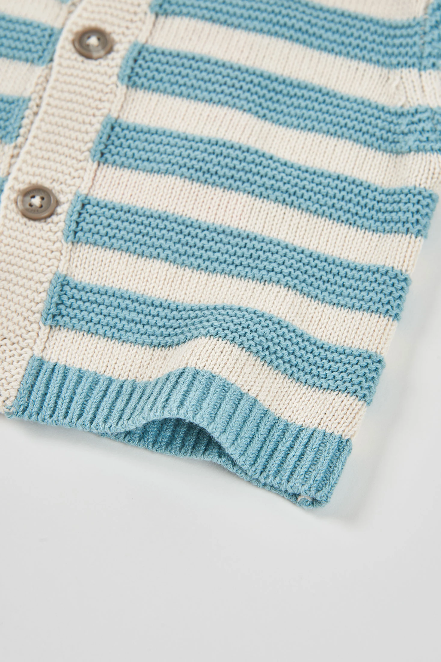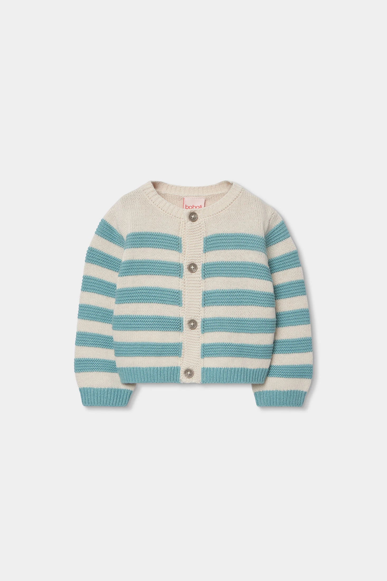 Casaco de bebé confecionado em malha, ideal para manter o seu pequeno aquecido. O seu design apresenta um padrão de riscas combinando verde e creme, adicionando um toque alegre e moderno. Destinado a idades de 1 mês a 2 anos. O material suave assegura conforto e calor, enquanto o seu fecho de botões facilita o uso. Perfeito para combinar com calças ou saias, tornando-se uma peça versátil para qualquer ocasião.