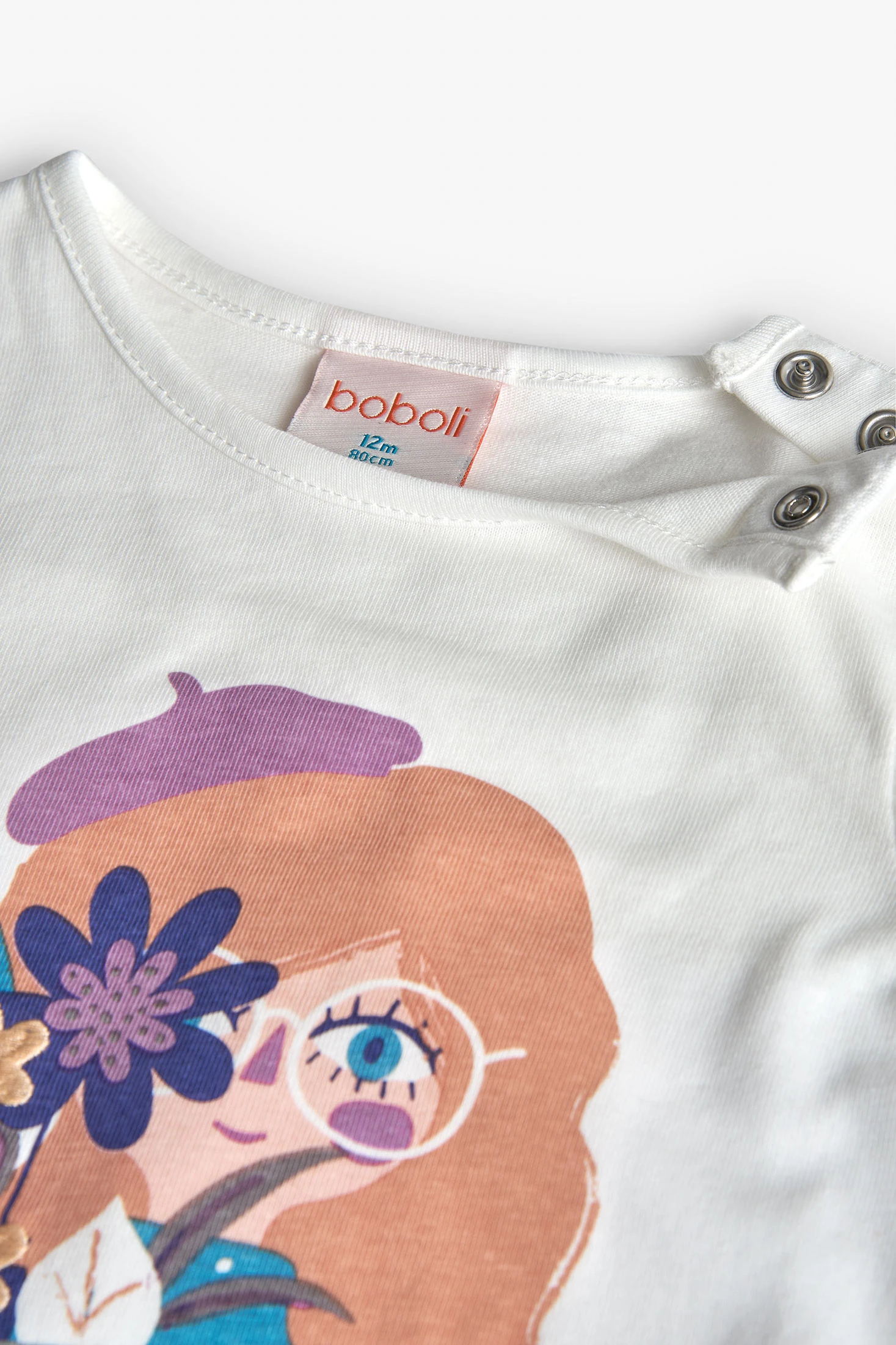 Camiseta de malha para menina em cor branca com estampa de flores, ideal para a temporada de outono. Feita de um tecido suave e leve, garante conforto e frescor para os mais pequenos durante as suas atividades diárias. Delicadas flores no seu design acrescentam um toque encantador e feminino, tornando-a perfeita para combinar com calças ou saias em tons pastel. Disponível em tamanhos desde 12 meses a 10 anos, é uma opção versátil e estilosa para qualquer ocasião.