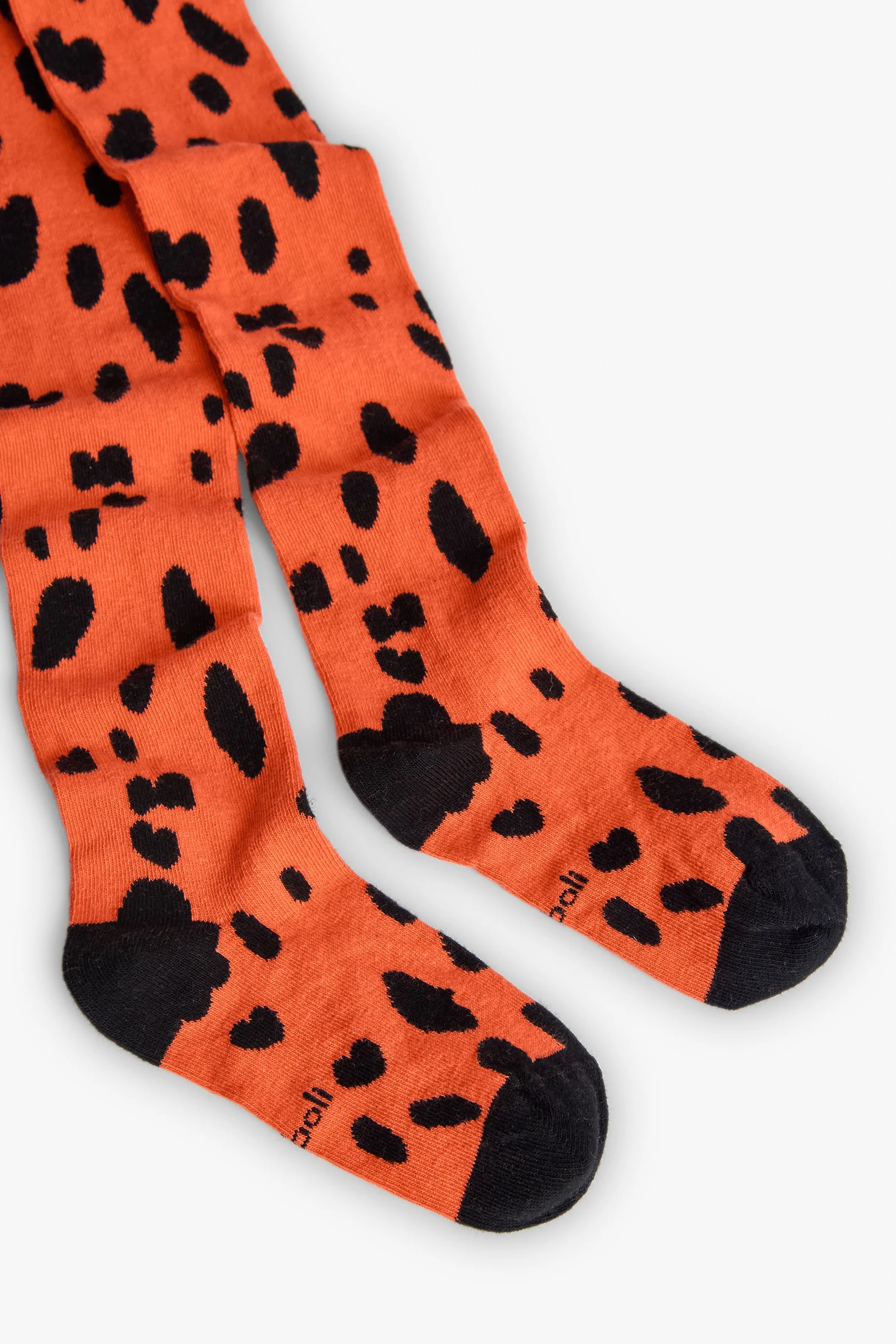 Collants de malha salmão com estampado animal, desenhados especialmente para meninas, são um essencial no guarda-roupa infantil pelo seu vibrante tom vermelho e detalhes de manchas pretas. Confeccionados em tecido de malha elástica, garantem conforto e um ajuste perfeito nos tamanhos disponíveis desde 2 até 14 anos. Ideais para manter o calor em temporadas frias, estes collants combinam na perfeição com vestidos, saias ou calções, acrescentando um toque elegante e moderno a qualquer conjunto. O seu design distintivo é adequado tanto para eventos especiais como para o uso diário.