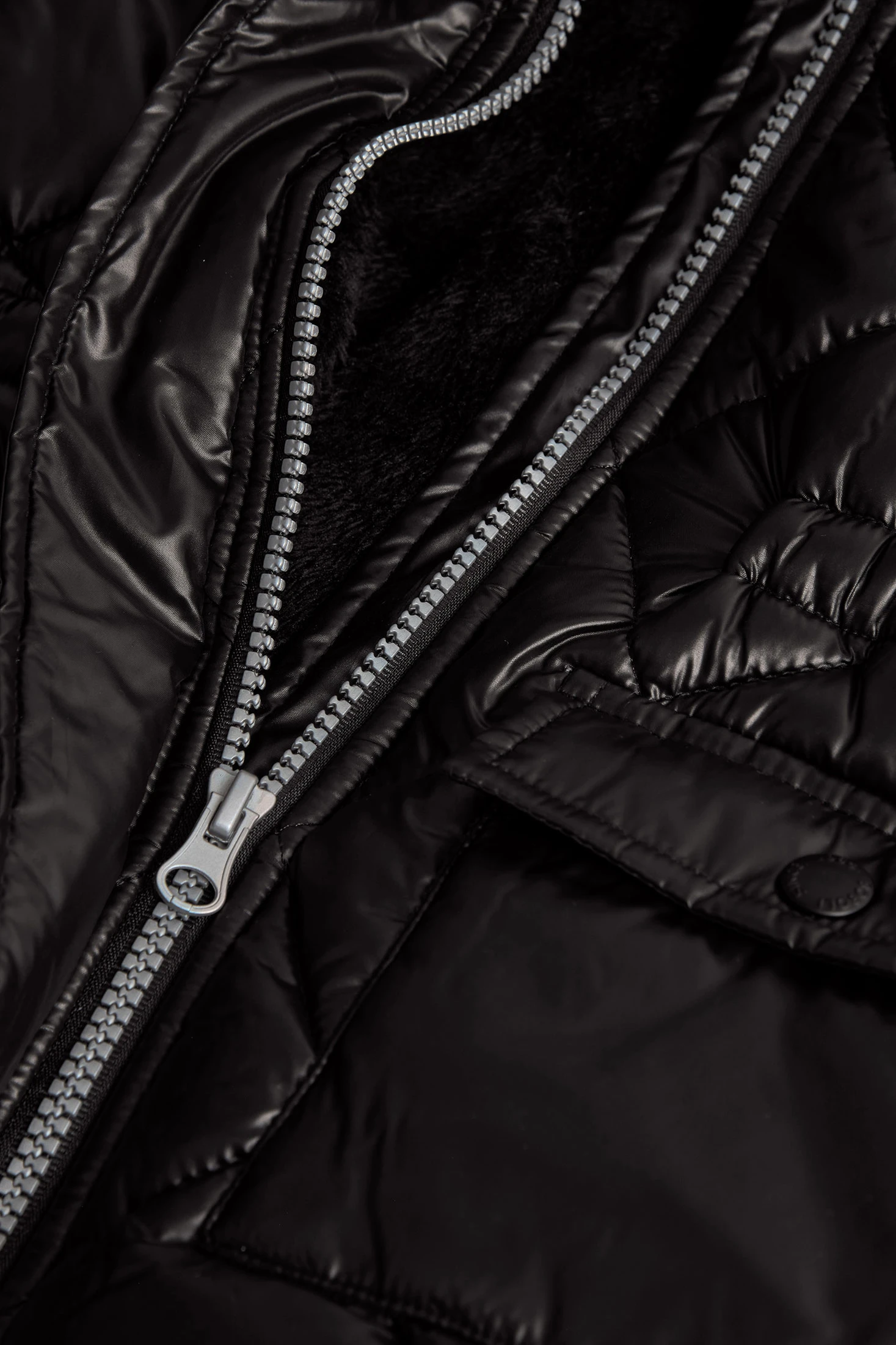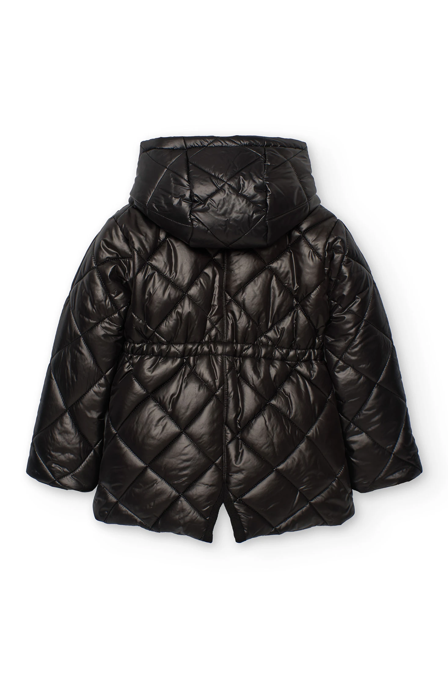 Parka de tecido técnico preta para menina ideal para manter a sua pequenina aquecida durante as estações de outono e inverno. Confeccionada com material técnico de alta qualidade, proporciona excelente proteção contra o frio, o vento e a chuva. O seu design inclui um capuz e fecho frontal com fecho éclair, complementado por botões decorativos nos bolsos para um toque moderno. Disponível em tamanhos de 2 a 14 anos, a sua versatilidade permite combiná-la com diferentes estilos, assegurando conforto e moda a qualquer momento.