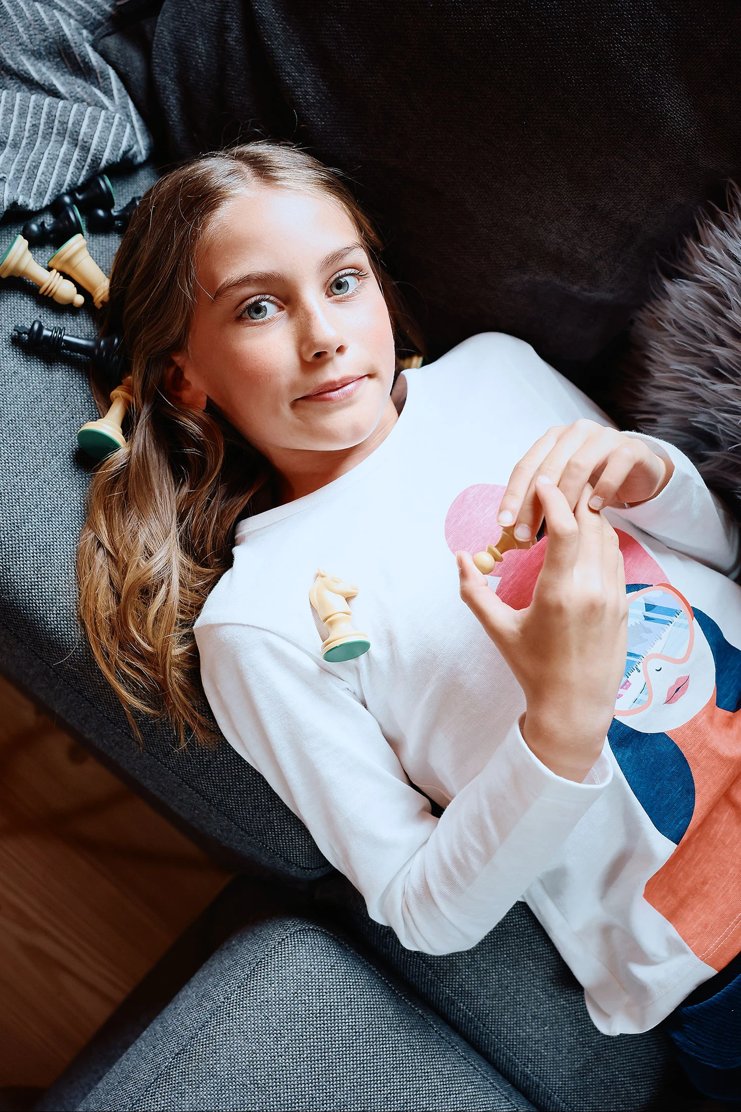T-shirt de malha para menina em cor branca, versátil e moderna, perfeita para qualquer ocasião. Confeccionada num tecido suave, é ideal para manter a sua filha confortável durante todo o ano. O seu design estampado com uma menina acrescenta um toque único e contemporâneo ao guarda-roupa infantil. Disponível em tamanhos desde 2 até 14 anos, esta t-shirt combina facilmente com jeans ou saias para criar um look casual e estiloso. Perfeita para usar com sapatilhas para um estilo descontraído e chique.