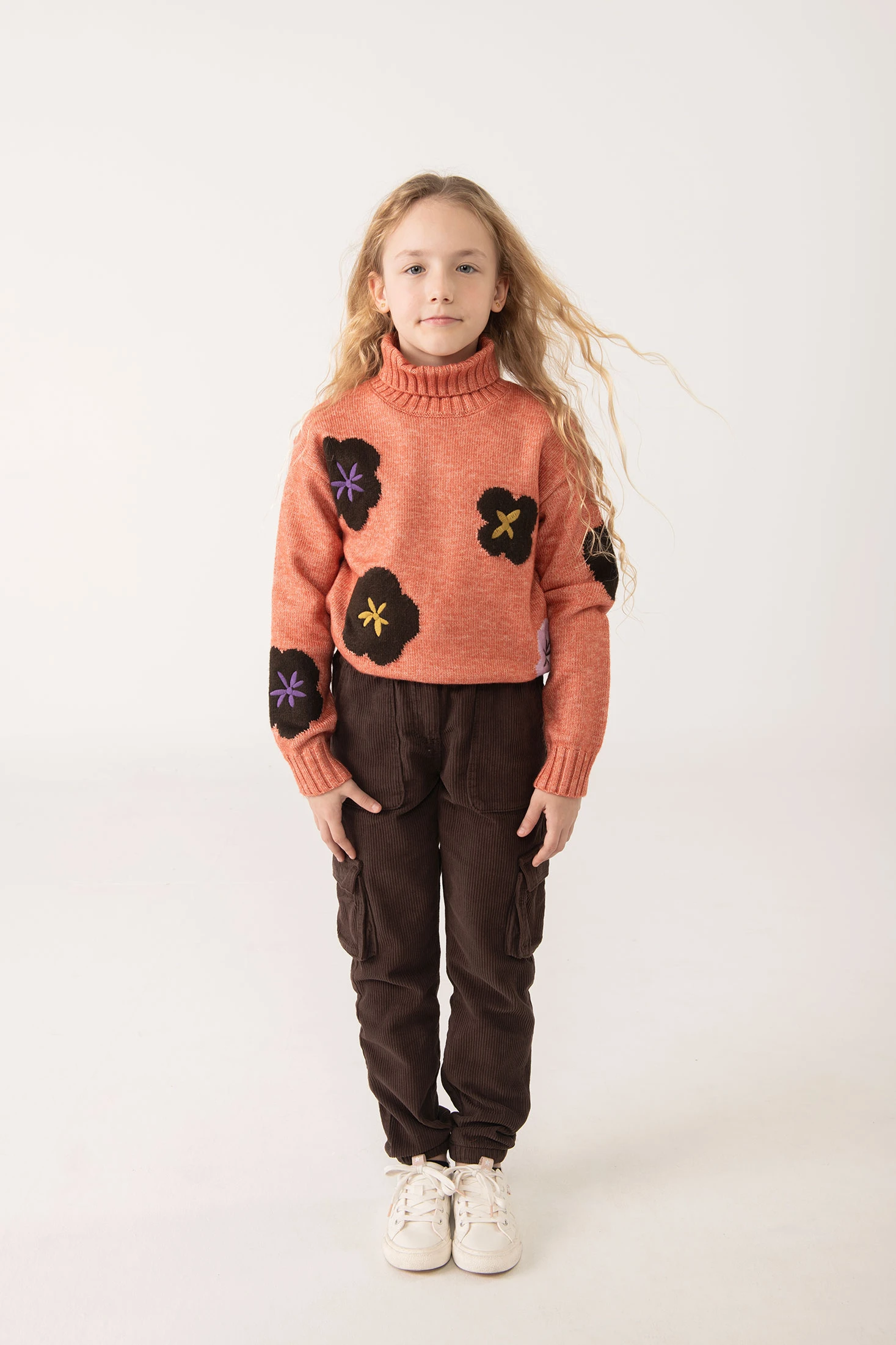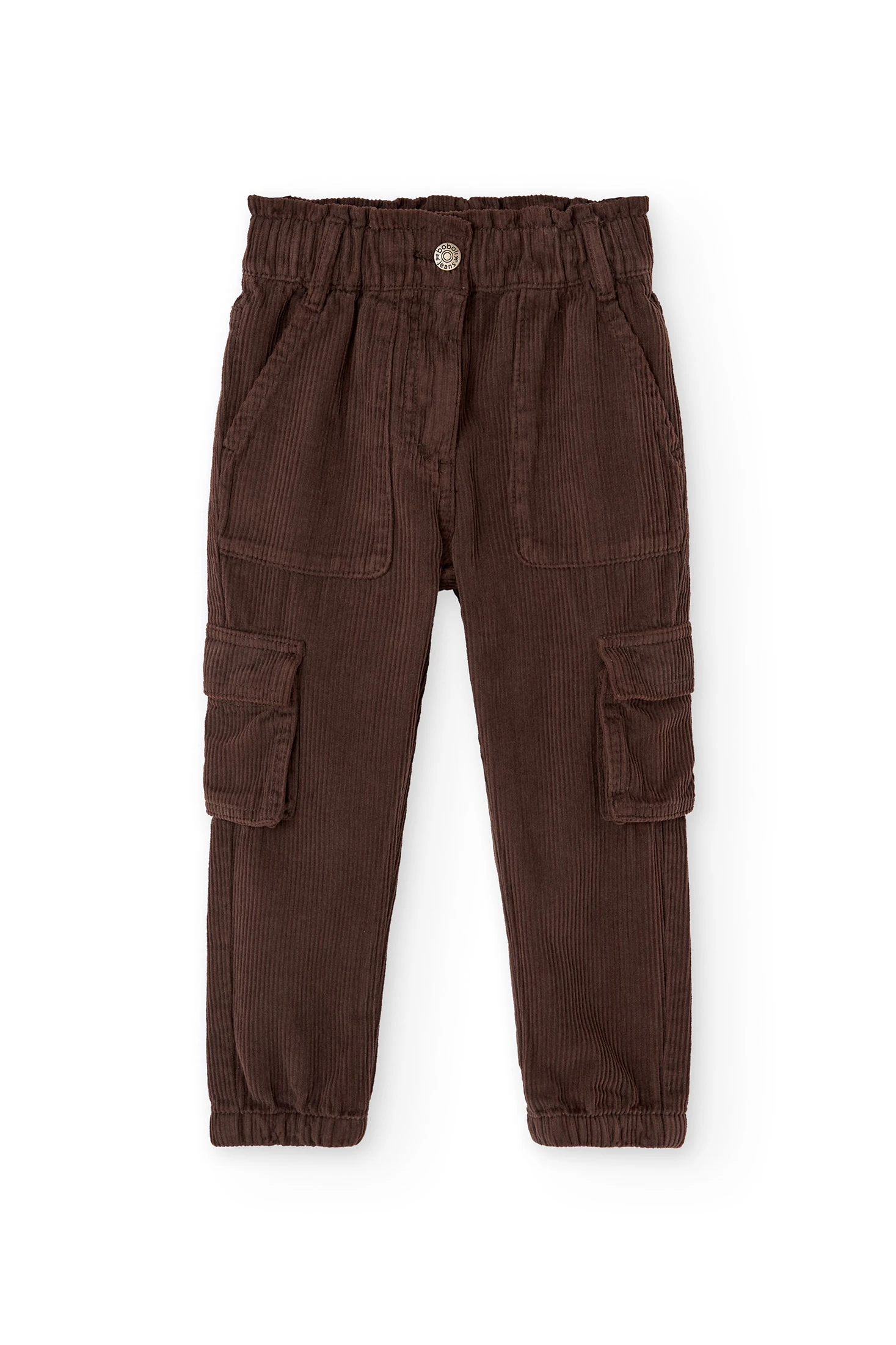 Calças de veludo cotelê para menina em um acolhedor tom de castanho, ideal para as temporadas de outono e inverno. Confeccionado num tecido de veludo cotelê resistente e suave, que oferece tanto conforto como durabilidade. A cintura elástica ajustável proporciona um ajuste seguro e confortável para o dia a dia ou atividades ao ar livre. Disponível em tamanhos dos 2 aos 14 anos, este design versátil combina perfeitamente com camisolas e casacos, criando um conjunto casual e moderno.