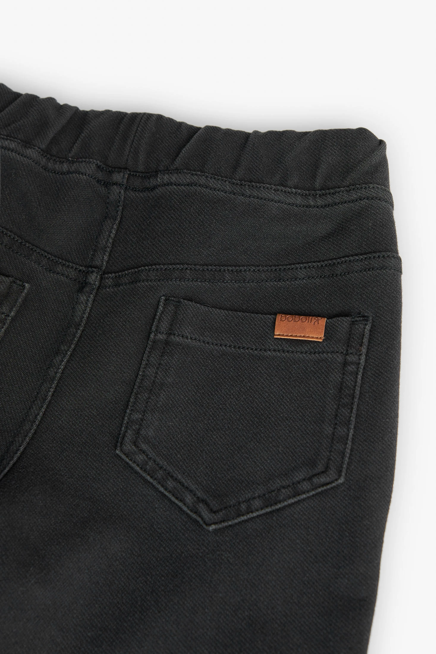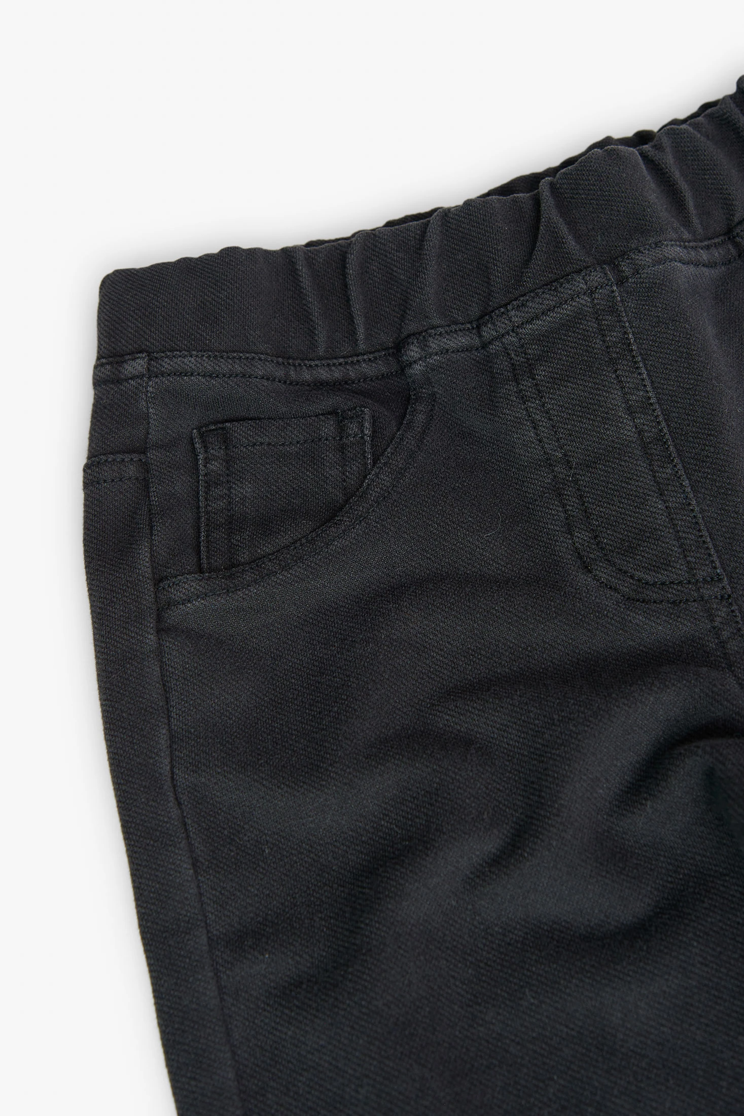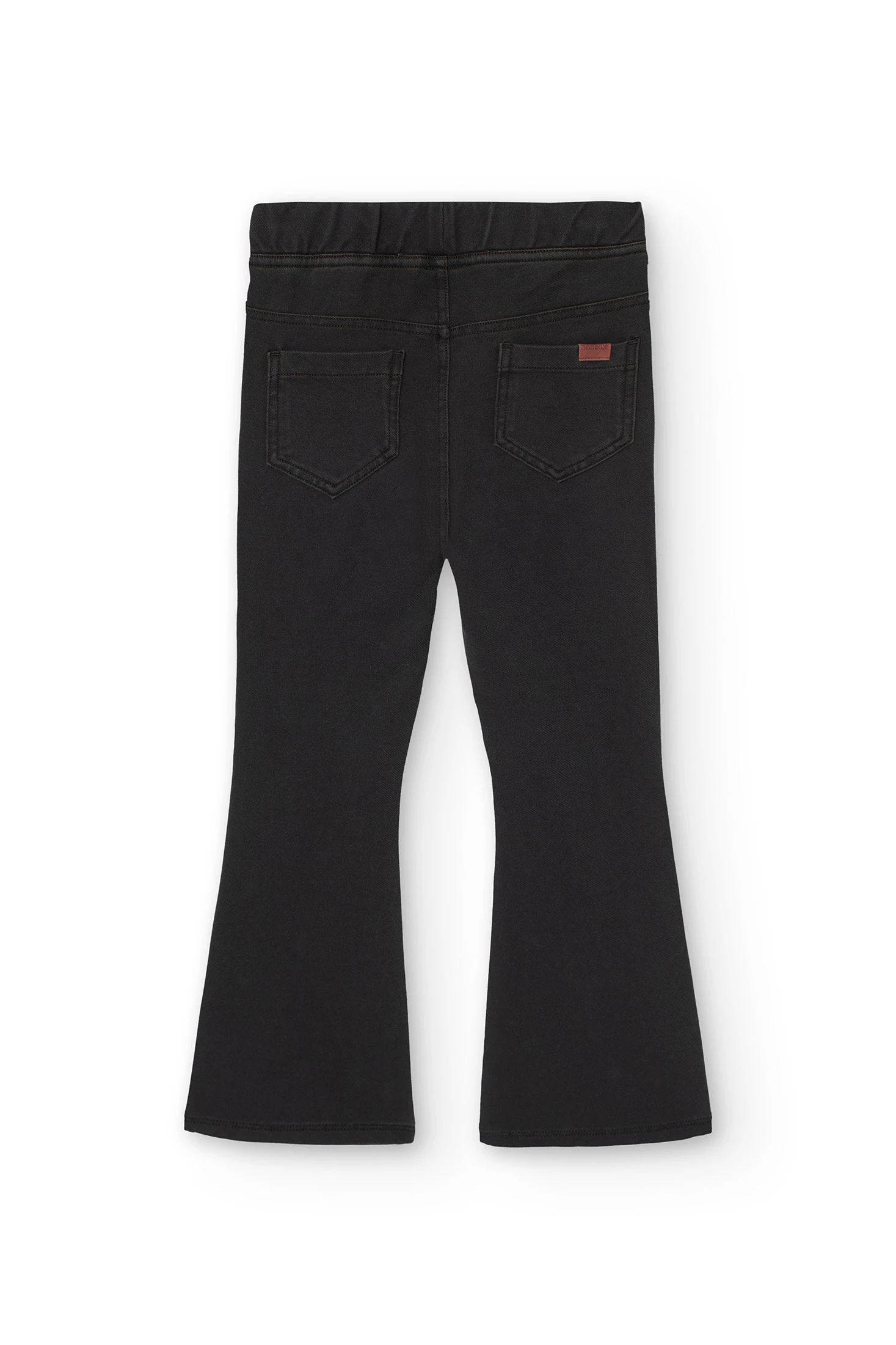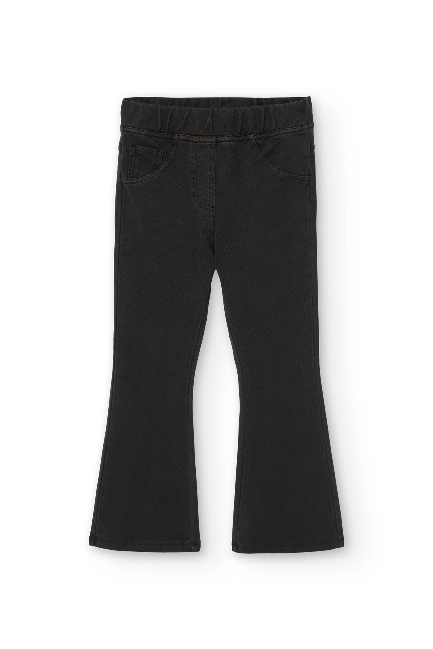 Calças de malha em preto para menina, ideal para qualquer estação, apresenta um corte clássico e confortável. Confeccionado em sarja de alta qualidade, garante durabilidade e estilo. A cintura elástica facilita o ajuste, proporcionando liberdade de movimento para o dia a dia. Disponível em tamanhos de 2 a 14 anos, combina facilmente com blusas, suéteres ou camisetas, oferecendo versatilidade no vestuário infantil.