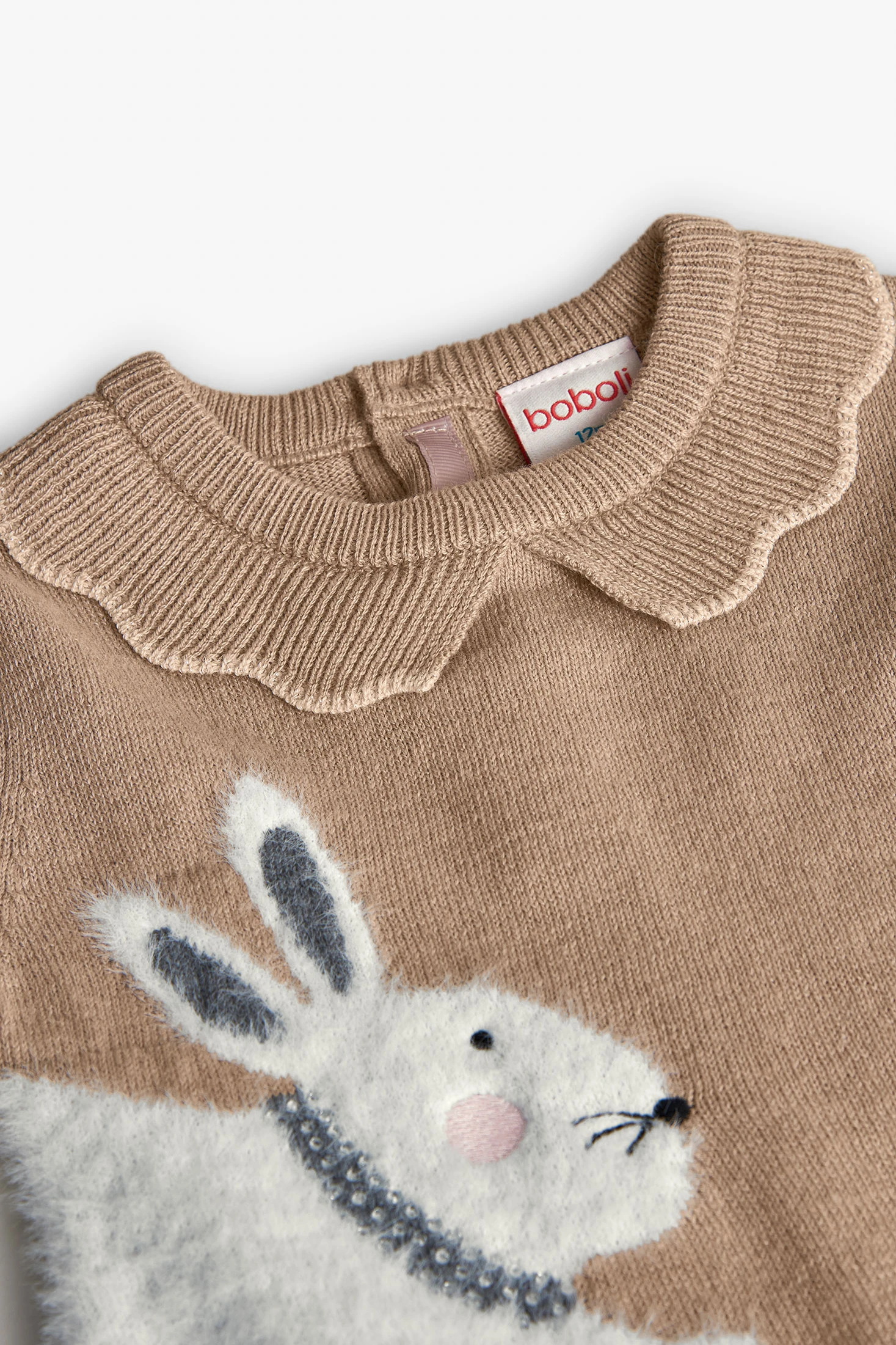 Vestido de tricô bege para menina, com encantadoras estampas de coelhinhos, perfeito para aquecer as mais pequenas durante o outono e inverno. Confeccionado num tecido de malha quente e suave, possui um design de gola redonda e mangas compridas que garante conforto nos dias mais frios. Disponível em tamanhos desde os 12 meses até aos 10 anos, o seu tom neutro torna-o numa peça versátil que se combina facilmente com outras roupas para qualquer evento ou saída.