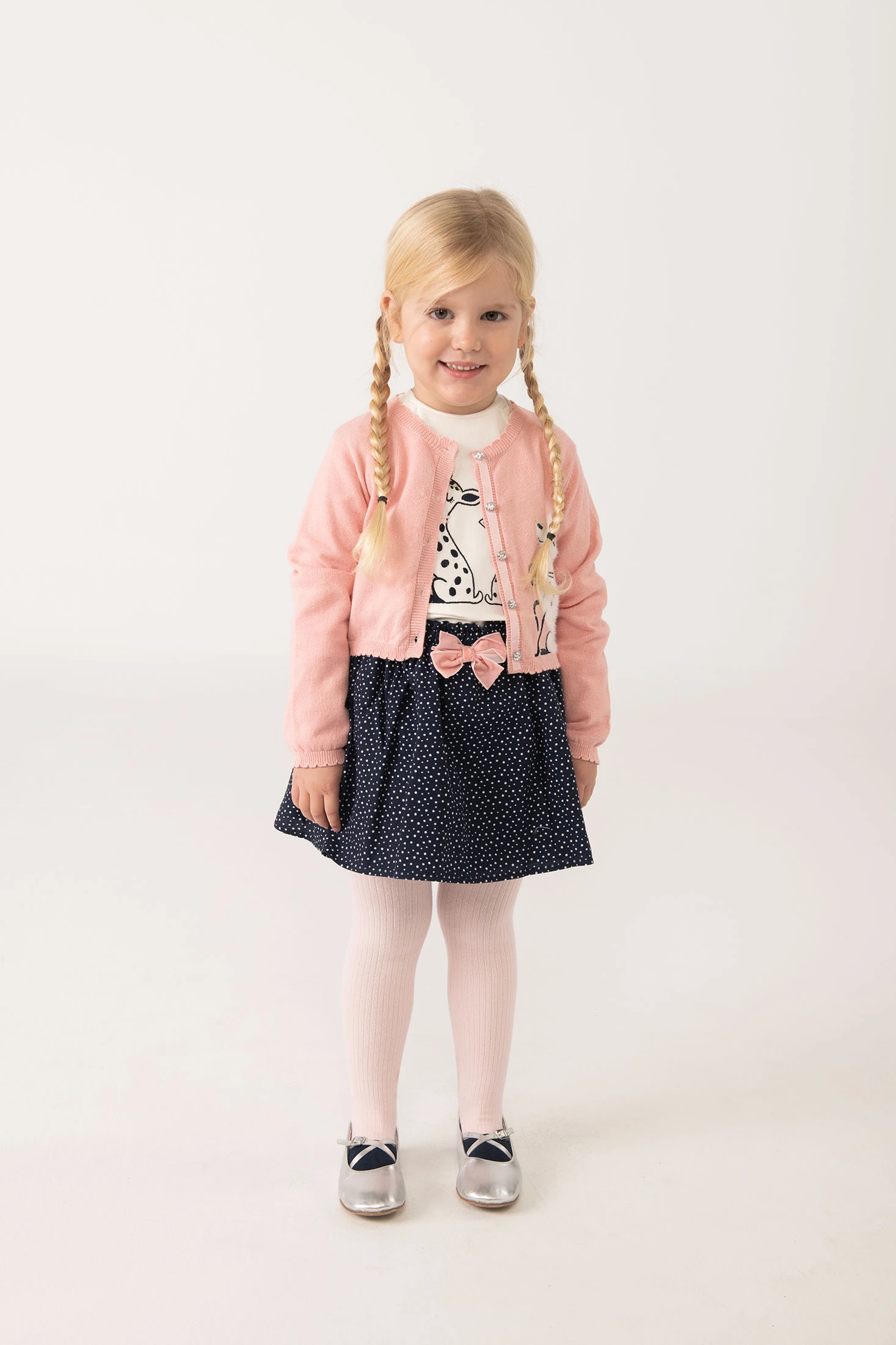 Saia azul-marinho com bolinhas, perfeita para um look elegante e alegre para meninas. Ideal para a temporada de outono e inverno, graças ao seu material quente e suave ao toque. Disponível em tamanhos desde 12 meses até 10 anos, garantindo um ajuste perfeito para diferentes idades. O seu design clássico com bolinhas brancas e um corte fluido tornam-na numa peça versátil que se pode combinar com blusas de tons claros ou camisolas. Ideal para ocasiões especiais ou para adicionar um toque de estilo no dia a dia.
