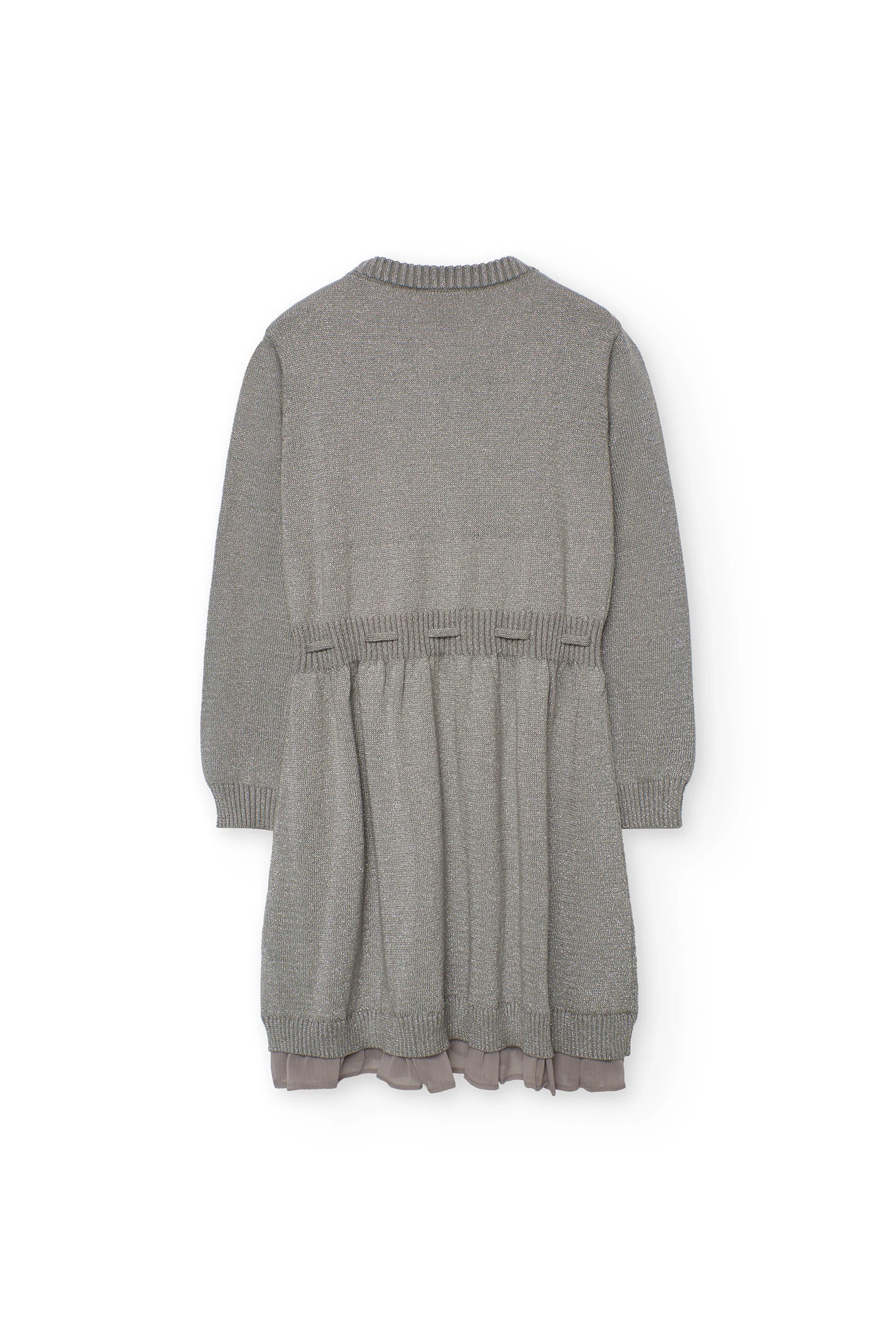 Vestido de malha para menina ideal para as temporadas de outono e inverno, confeccionado num tecido suave que proporciona calor. A sua elegante cor cinza torna-o perfeito para diversas ocasiões, combinando estilo e conforto. Apresenta um design de gola redonda e mangas compridas, complementado com um laço ajustável na cintura para adicionar um toque encantador. Disponível em tamanhos desde os 2 até aos 14 anos, pode ser combinado com collants ou leggings para criar um conjunto sofisticado e confortável durante os dias mais frescos.