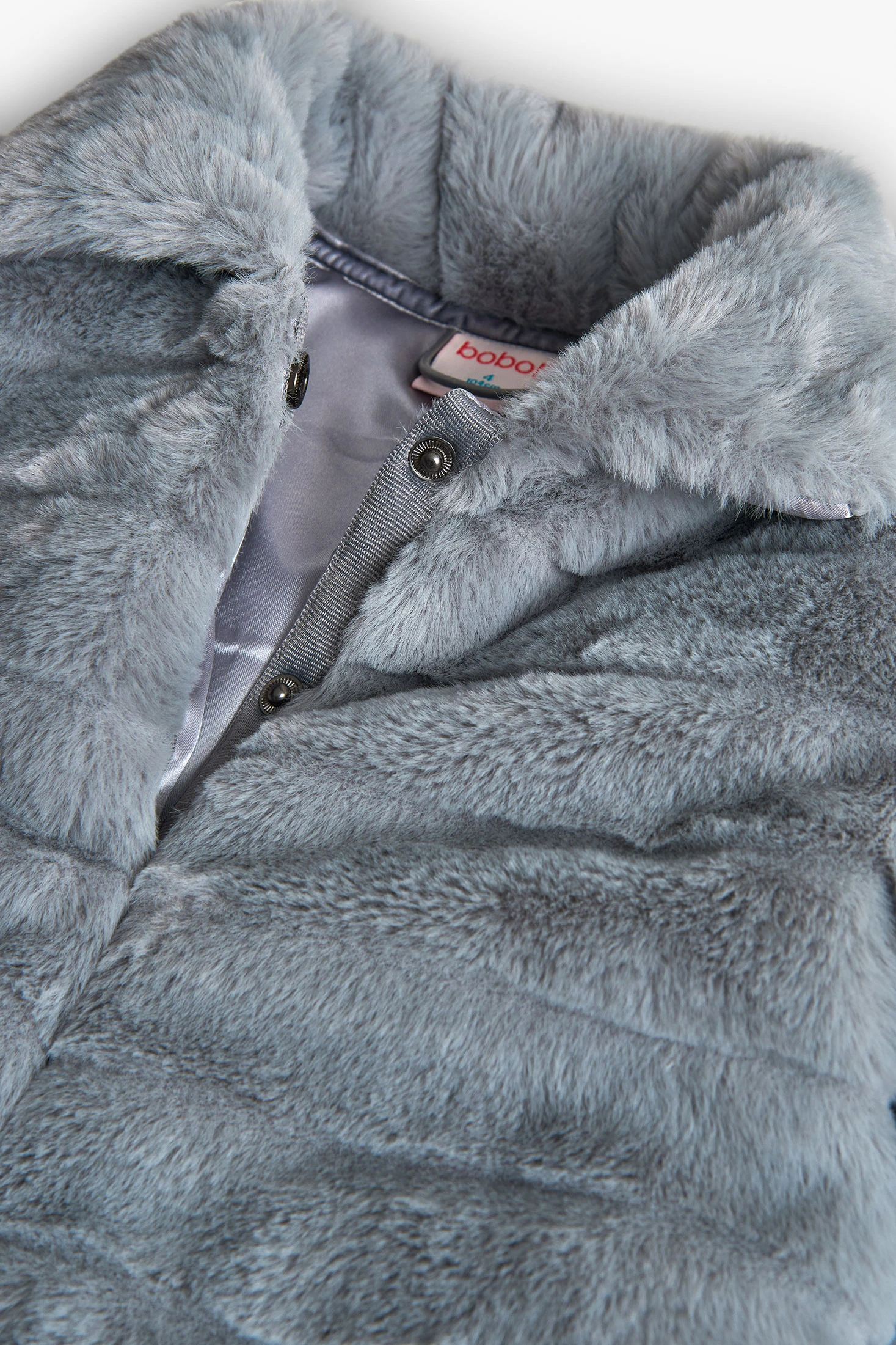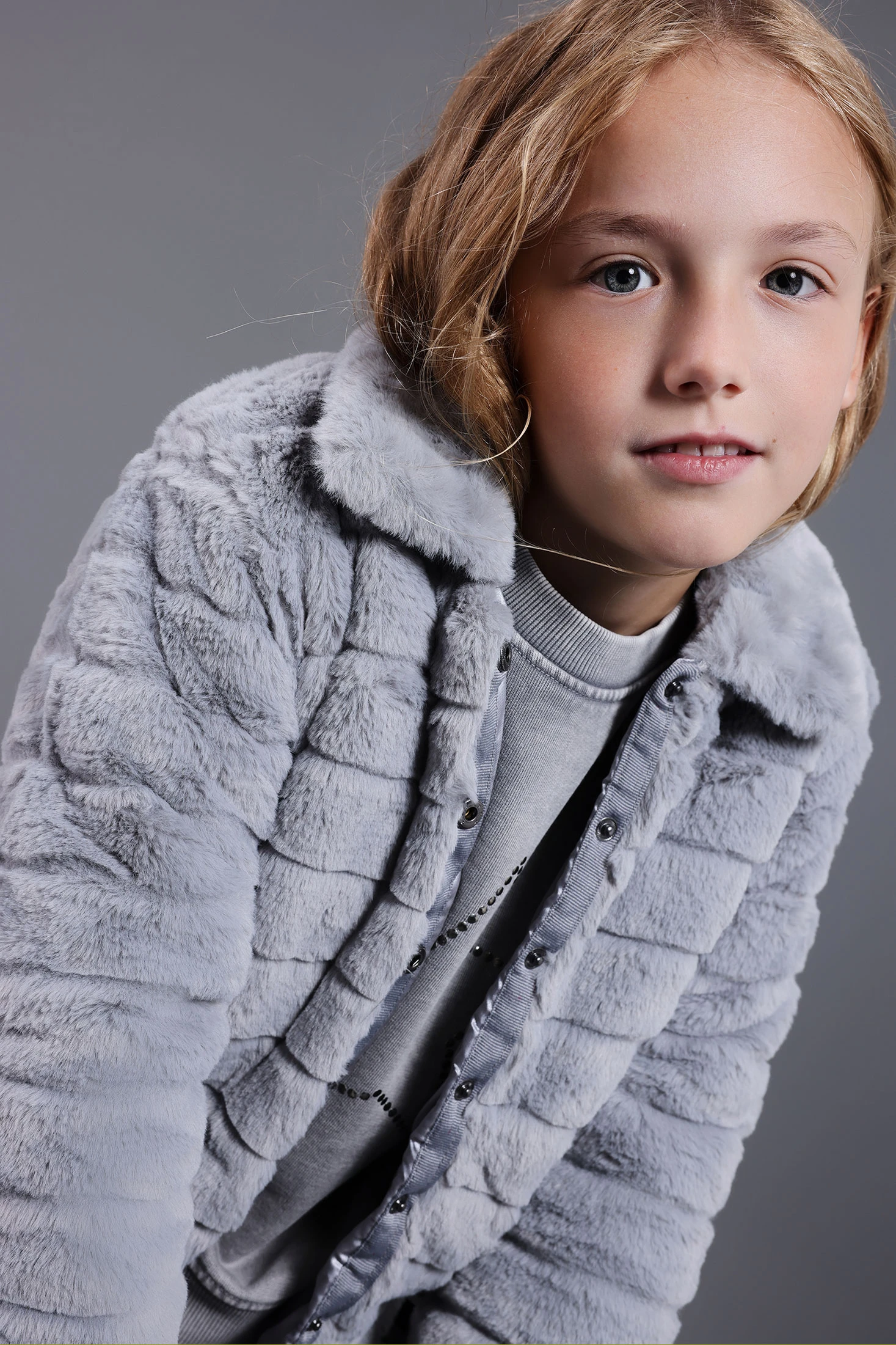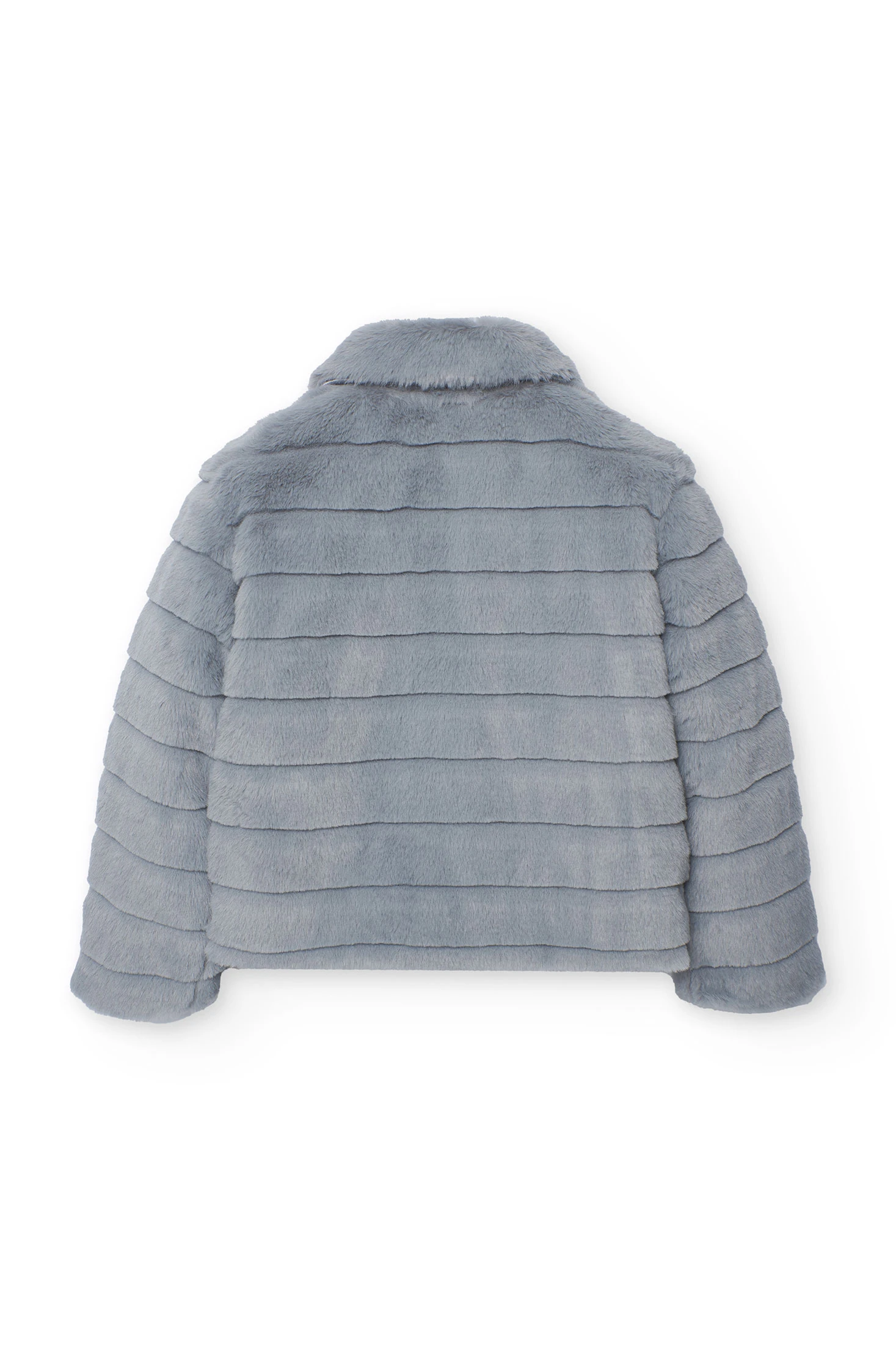 Casaco de pêlo cinza para menina, ideal para manter o calor durante o inverno, combinando elegância e modernidade. Confeccionado num suave tecido de pêlo, proporciona conforto e proteção graças ao seu design de gola clássica e mangas compridas. Disponível em tamanhos desde 2 a 14 anos, adapta-se a qualquer ocasião, desde eventos formais até saídas informais. O seu tom cinza neutro permite combinações versáteis com qualquer indumentária, tornando-se num essencial no guarda-roupa da sua pequena.
