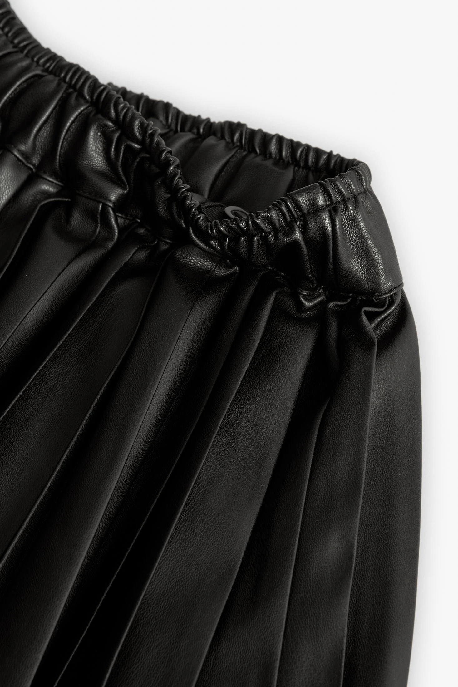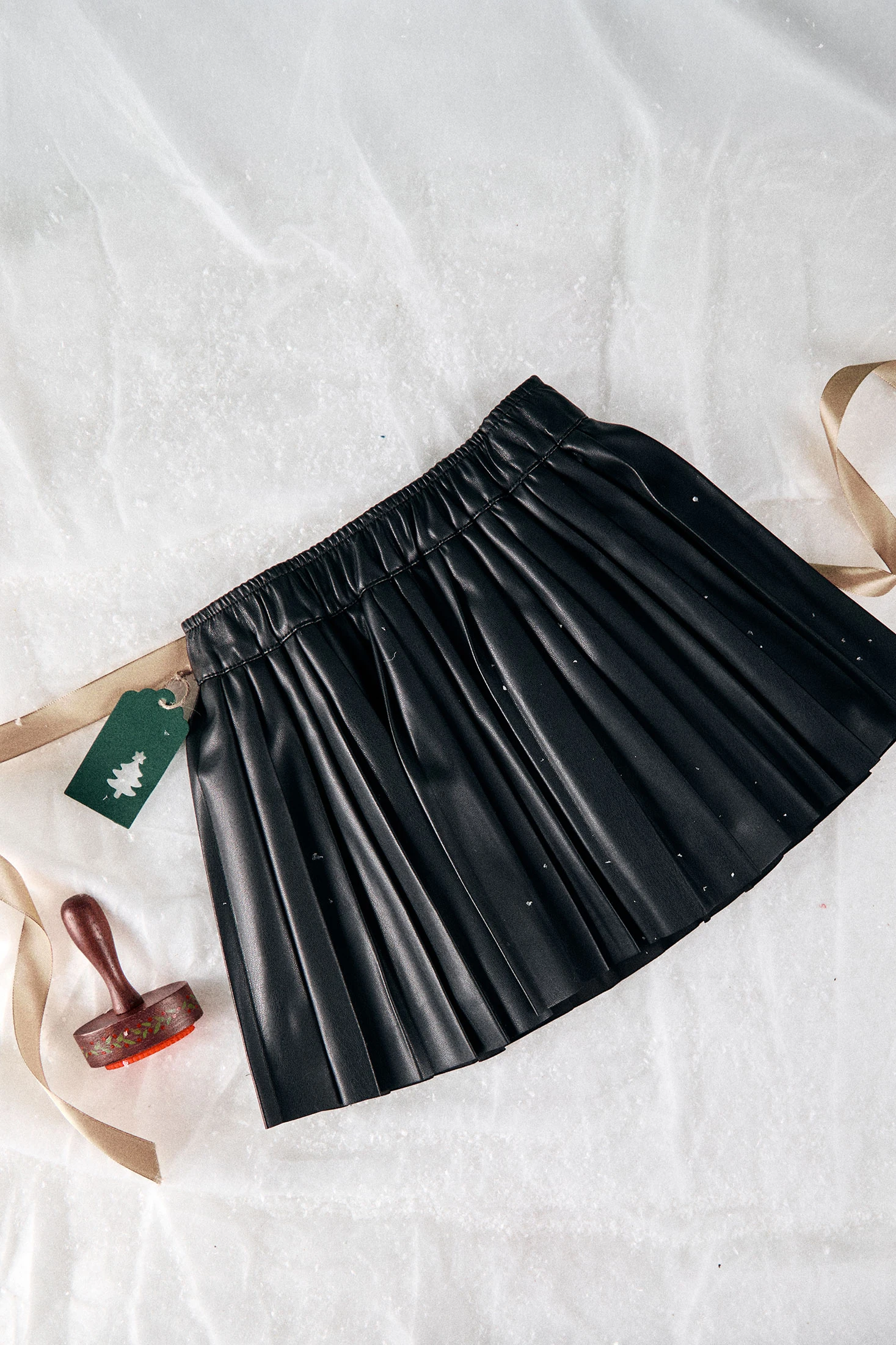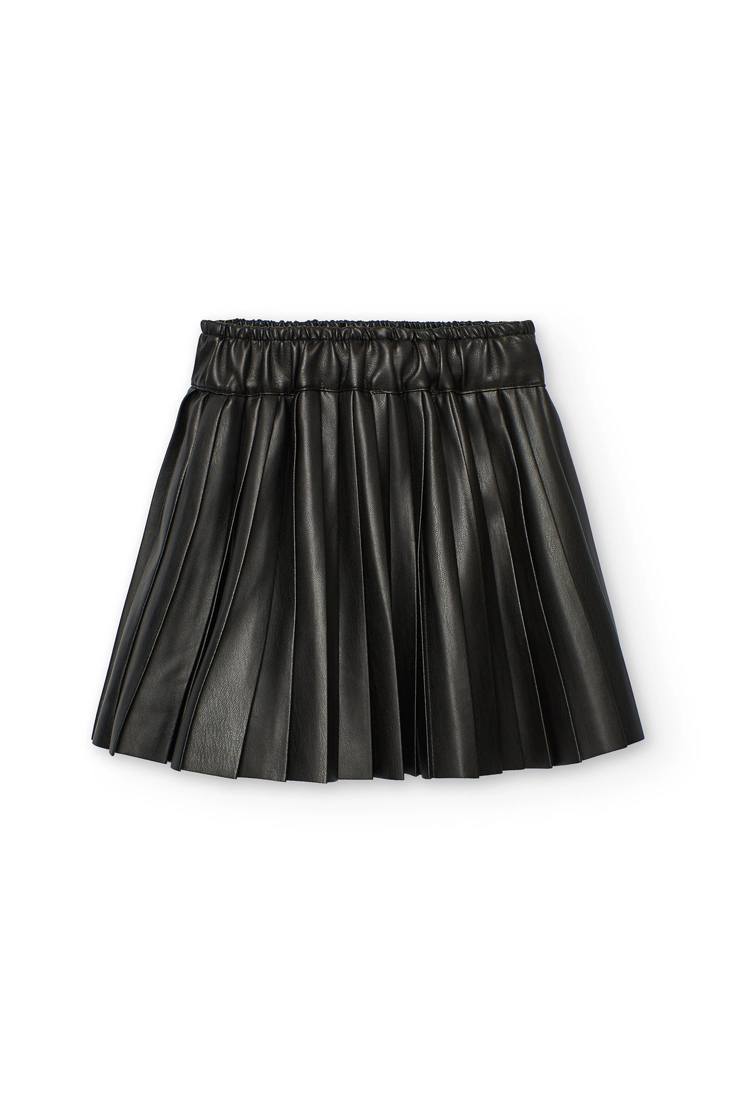 Saia de pele sintética preta, ideal para meninas durante a temporada de outono e inverno. Fabricada em material sintético com um acabamento brilhante atraente, destaca-se pelo seu estilo contemporâneo e elegante. O design com pregas proporciona um movimento fluido, enquanto a cintura elástica garante um ajuste confortável e seguro. A sua cor preta versátil permite combiná-la facilmente com blusas, camisolas e casacos, oferecendo múltiplas opções de estilo. Disponível em tamanhos desde 2 até 14 anos, é perfeita tanto para ocasiões especiais como para adicionar um toque chique a um traje diário.