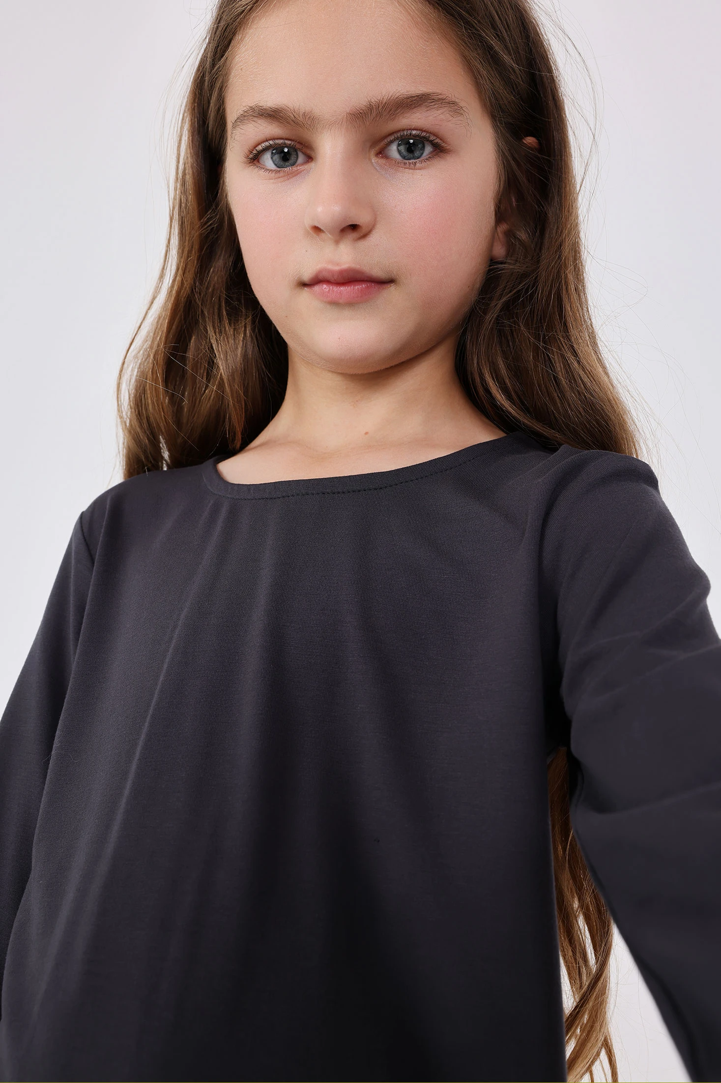 Camisola de malha cinza para menina, perfeita para uso diário em qualquer estação. Fabricada com um tecido de malha suave e respirável, garante conforto e flexibilidade para as atividades infantis. Disponível em tamanhos que vão dos 2 aos 14 anos, é fácil de combinar com saias e calças, adequada tanto para ocasiões casuais como mais formais. Adiciona um toque clássico e intemporal ao guarda-roupa de qualquer menina, tornando-se uma peça essencial para todas as estações.