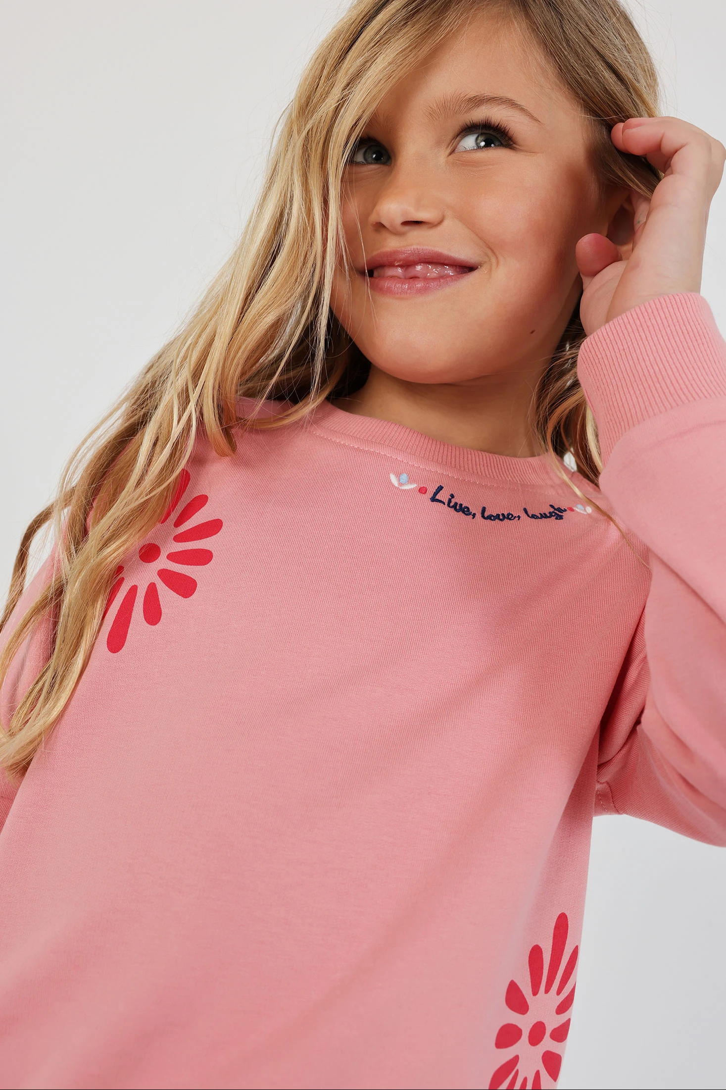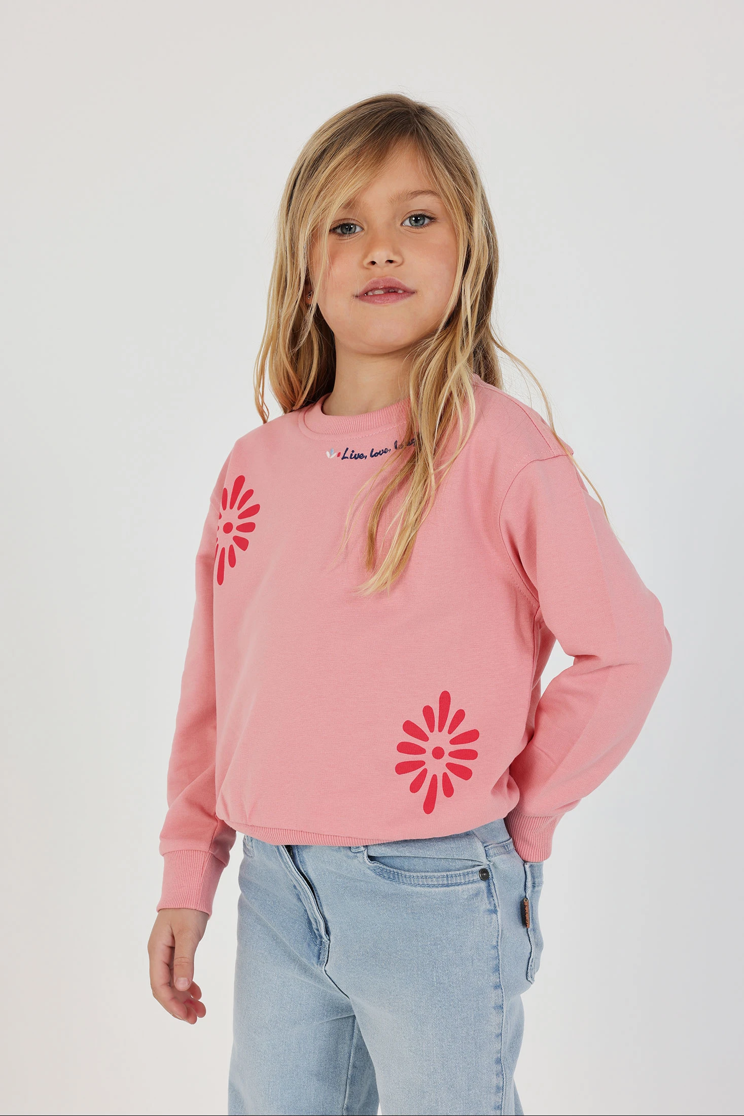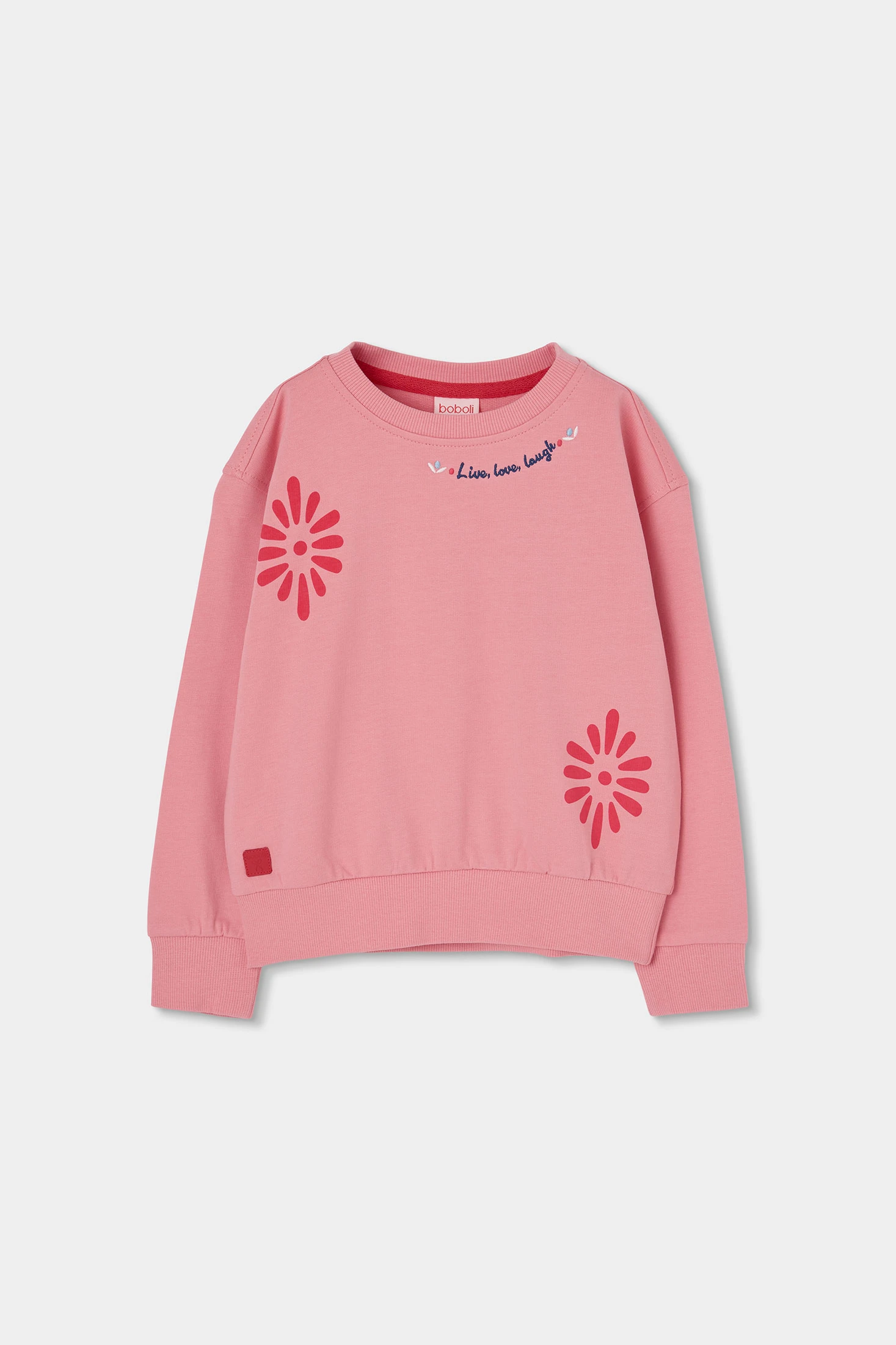 Sweatshirt de pêlo para menina. Feita em algodão de cor rosa, oferece conforto e calor. Apresenta um design com estampas florais que acrescenta um toque divertido. Possui uma gola redonda e mangas compridas, ideais para os dias mais frescos. Disponível em tamanhos de 12 meses até 10 anos, esta peça adapta-se a diferentes fases de crescimento. Opção versátil que pode ser facilmente combinada com calças ou saias, ideal para um look casual e confortável.