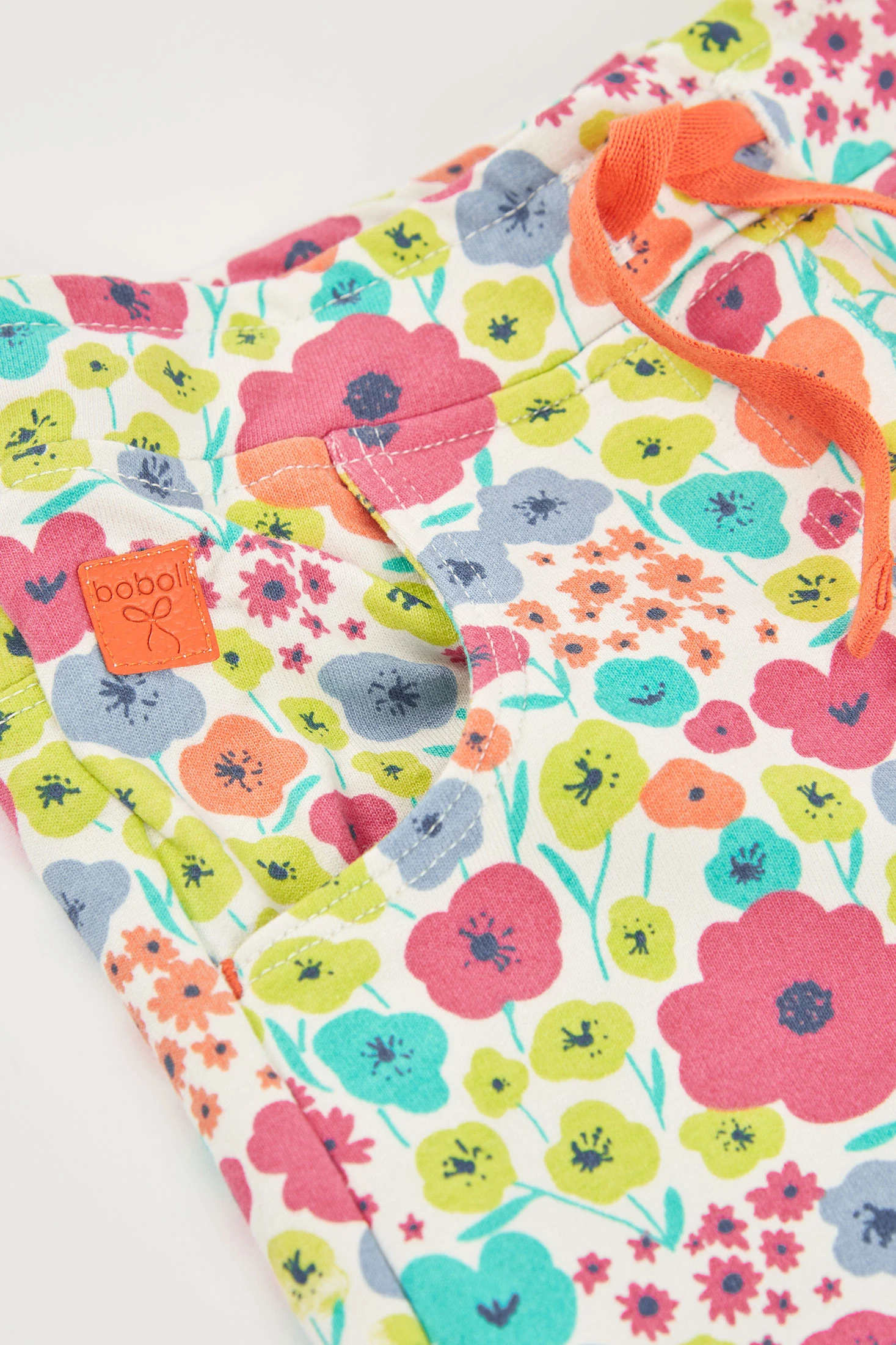 Short de pelfa para menina com estampado floral multicolorido, perfeito para ocasiões casuais e dias quentes. O seu tecido suave proporciona conforto e frescor. Dirigido para idades desde 12 meses até 10 anos, o design inclui um prático cordão na cintura para ajustar, e o seu colorido vibrante torna-o numa peça alegre e divertida. Opção ideal para combinar com camisetas lisas, oferecendo estilo e conforto no dia a dia.