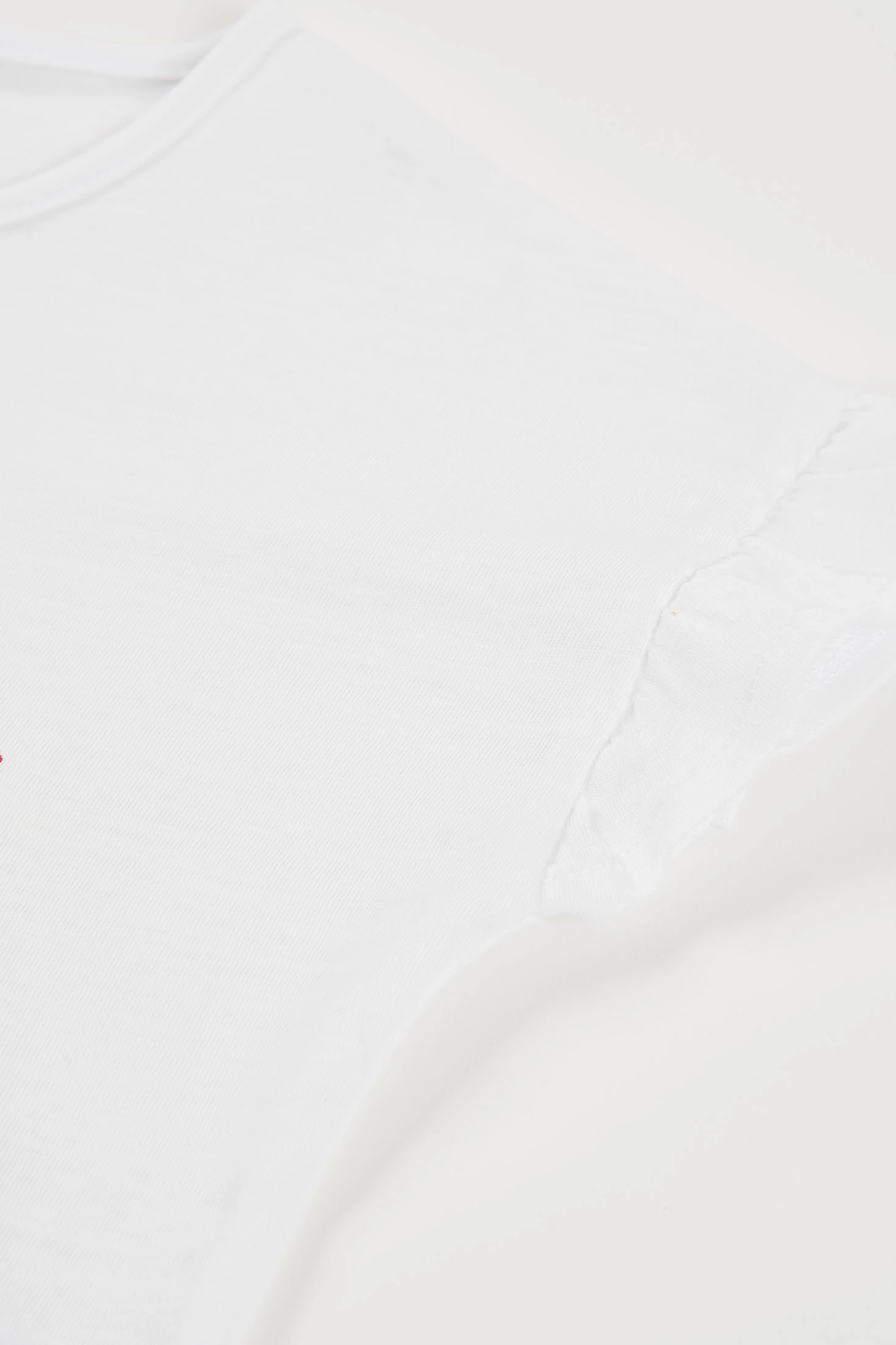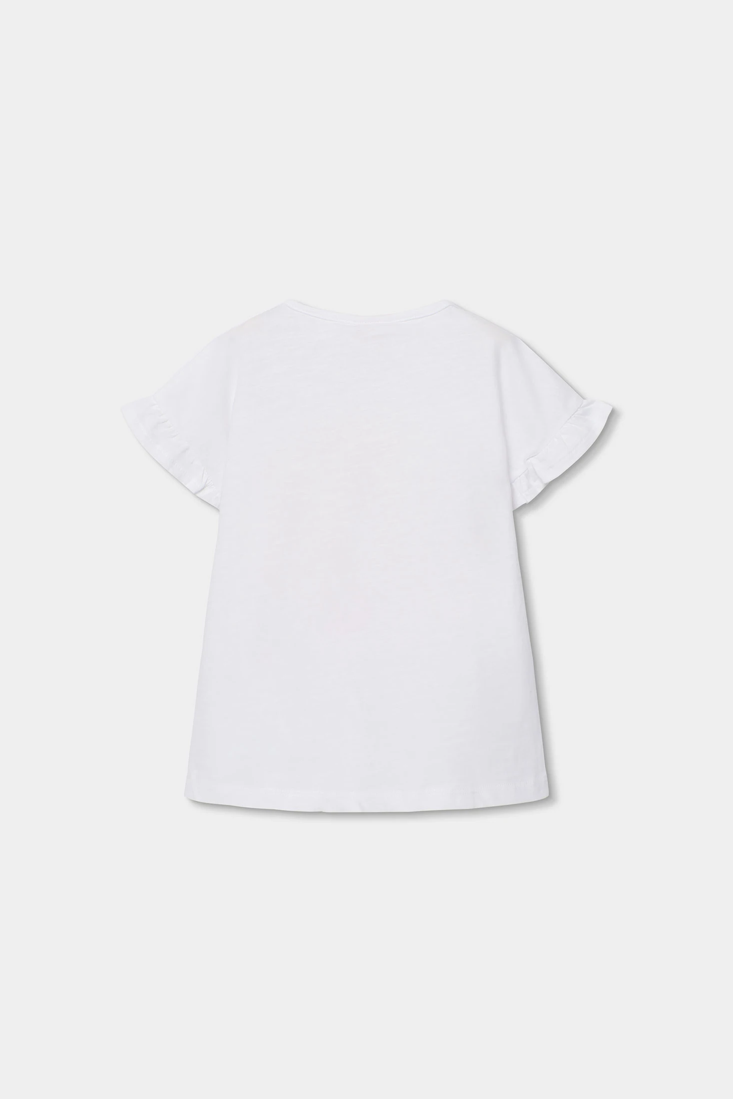 T-shirt de malha para menina de algodão branco, ideal para um look fresco e confortável. Apresenta um design central divertido com uma ilustração colorida. O material de algodão garante suavidade e respirabilidade, perfeito para o uso diário. Disponível em tamanhos desde 18 meses até 14 anos, adaptando-se a diferentes etapas de crescimento. Com uma gola redonda e mangas curtas com folhos, oferece um estilo casual e versátil. Perfeita para combinar com jeans ou saias, acrescentando um toque de alegria ao guarda-roupa das mais pequenas.