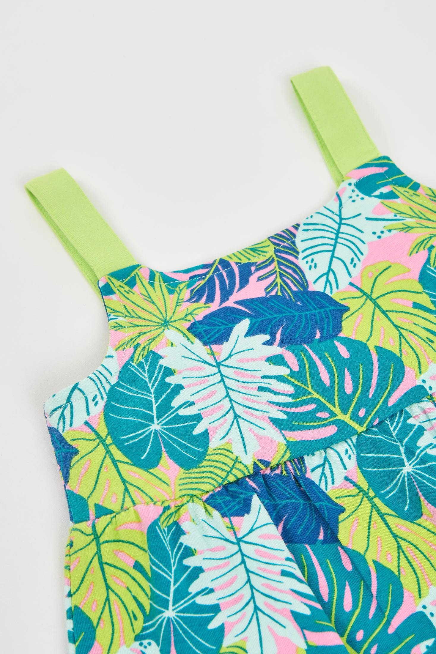 Vestido para menina em cor verde com estampa, perfeito para a estação da primavera e verão. Feito em tecido de malha leve e fresco, proporciona conforto durante todo o dia. O seu design alegre e o corte fluido fazem dele uma opção ideal tanto para passeios como para eventos informais. Disponível em tamanhos dos 2 aos 14 anos.