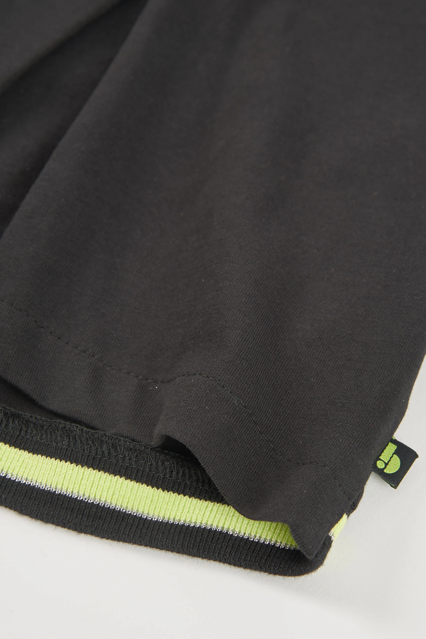 T-shirt preta para menina, feita de algodão que oferece conforto e versatilidade nos looks. O design é simples, sem estampados e com um canelado preto com uma risca verde néon na cintura. Ideal para combinar com diferentes estilos. Disponível em tamanhos desde 2 anos até 14 anos, adapta-se a diferentes fases de crescimento. O seu corte sem mangas e decote redondo torna-a perfeita para usar em dias mais frescos juntamente com um casaco ou em climas quentes. Uma peça básica indispensável no guarda-roupa de qualquer menina, adequada para qualquer estação.