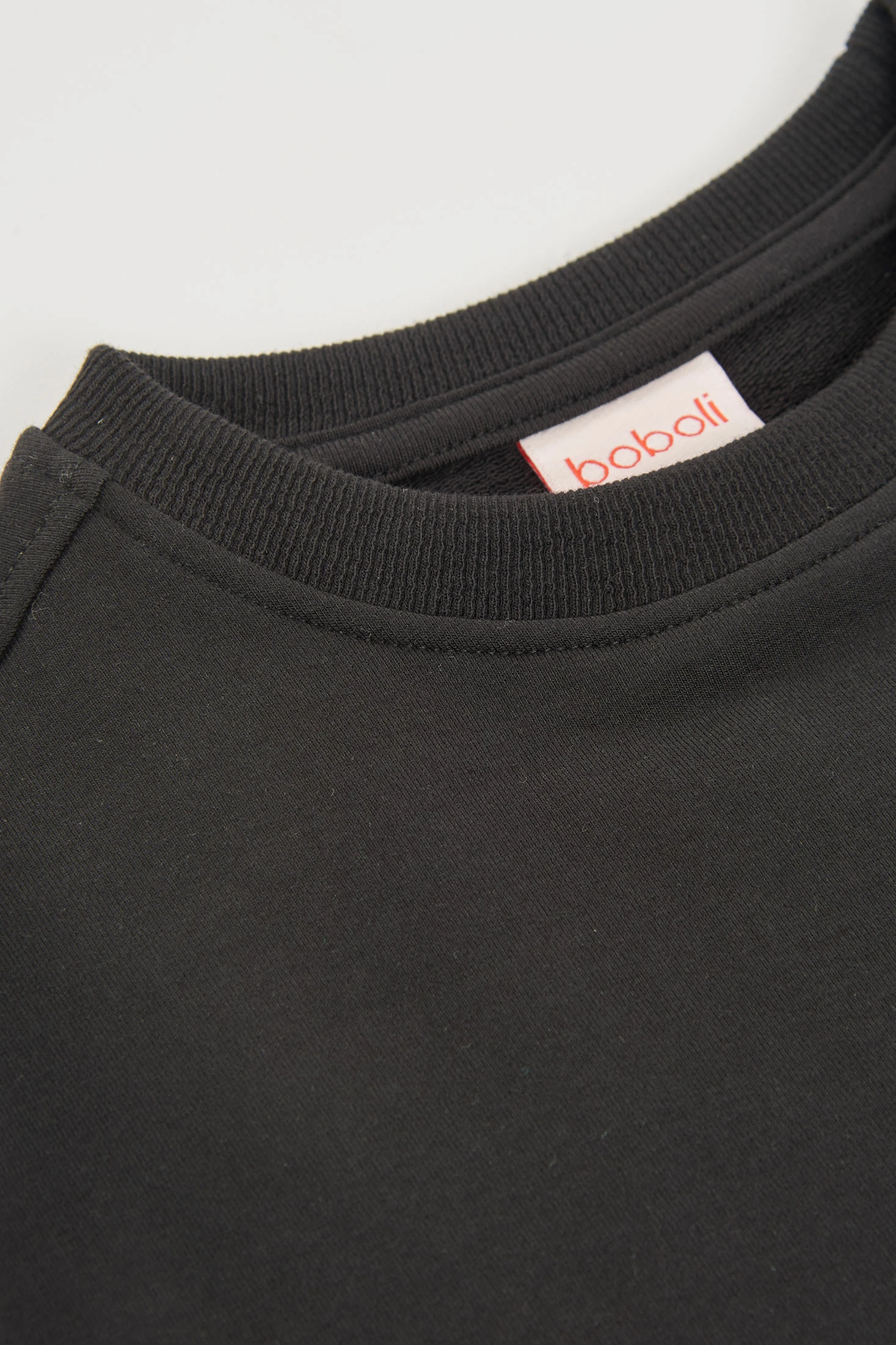 Sweatshirt de pelúcia preta para menina, perfeita para os dias mais frescos da primavera e as noites de verão. Com um design simples e elegante, conta com detalhes de riscas verde néon nos punhos e na bainha que acrescentam um toque moderno. Tem uma gola redonda e mangas compridas, ideal para um estilo casual e versátil. Disponível em tamanhos desde os 2 anos até os 14 anos, é uma opção prática para combinar com diferentes peças e estilos.