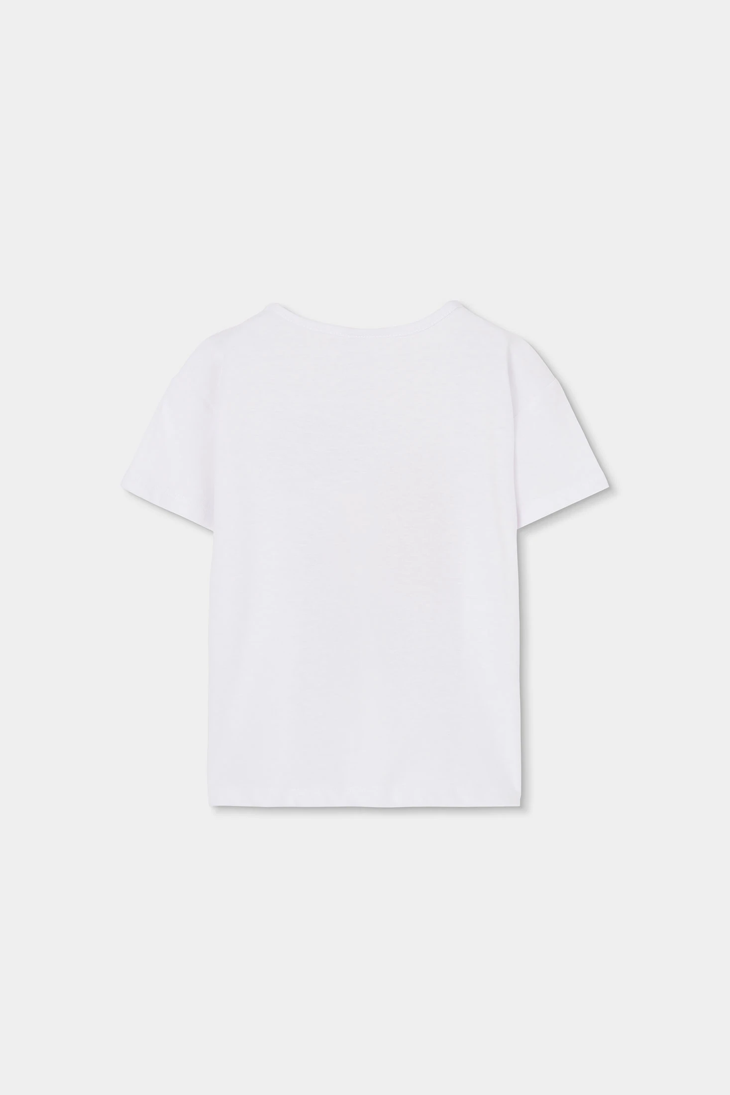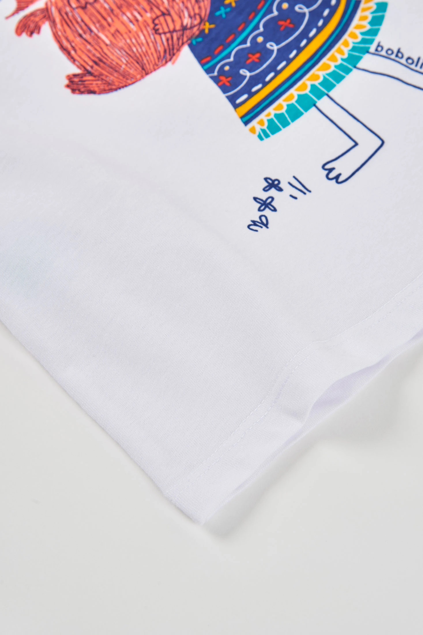 Camisola de malha de algodão para menina que apresenta uma encantadora estampa de uma menina, com detalhes coloridos. Confeccionada em algodão suave, é ideal para o conforto diário. O seu design de manga curta e gola redonda torna-a perfeita para estilizar com calças ou saias. Disponível em tamanhos desde 12 meses até 14 anos, adapta-se a diferentes etapas de crescimento. A cor branca oferece versatilidade, tornando-a uma peça fácil de combinar com outras peças do guarda-roupa infantil.