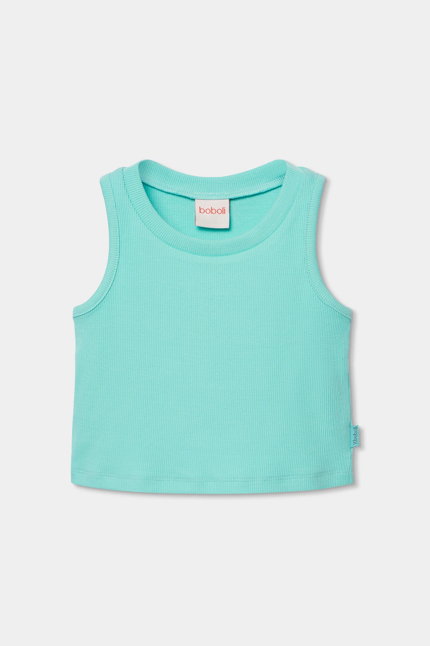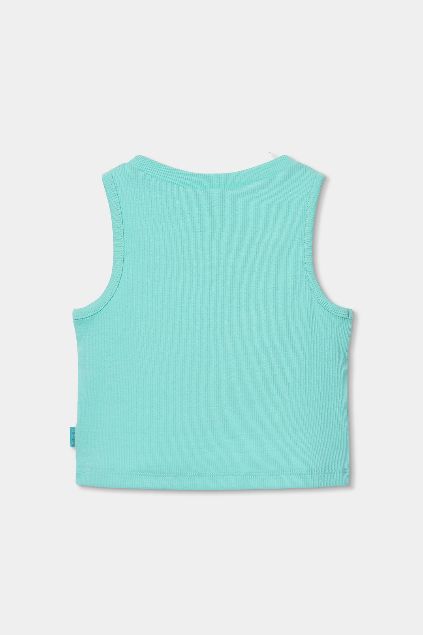 Camiseta de malha canelada para menina, perfeita para o verão. Confeccionada em um tecido que proporciona suavidade e conforto, apresenta um design sem mangas que permite liberdade de movimento. A cor verde menta acrescenta frescura ao guarda-roupa. Disponível em tamanhos para 12M, 18M, 2, 3, 4, 5, 6, 7, 8, 10, 12 e 14 anos, é uma opção versátil para combinar com calções ou saias. Ideal para qualquer ocasião informal, esta camiseta é uma peça essencial para os dias quentes.