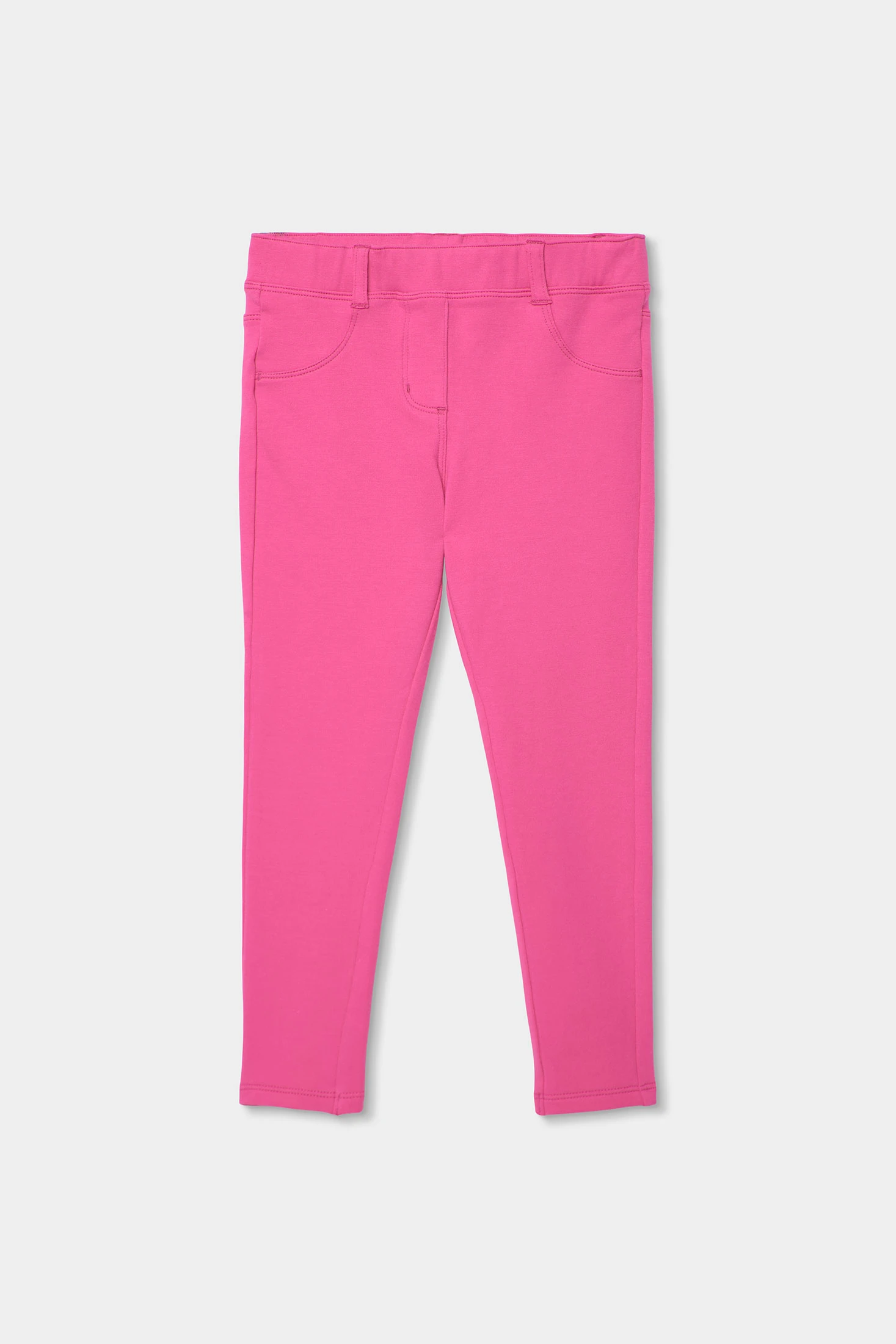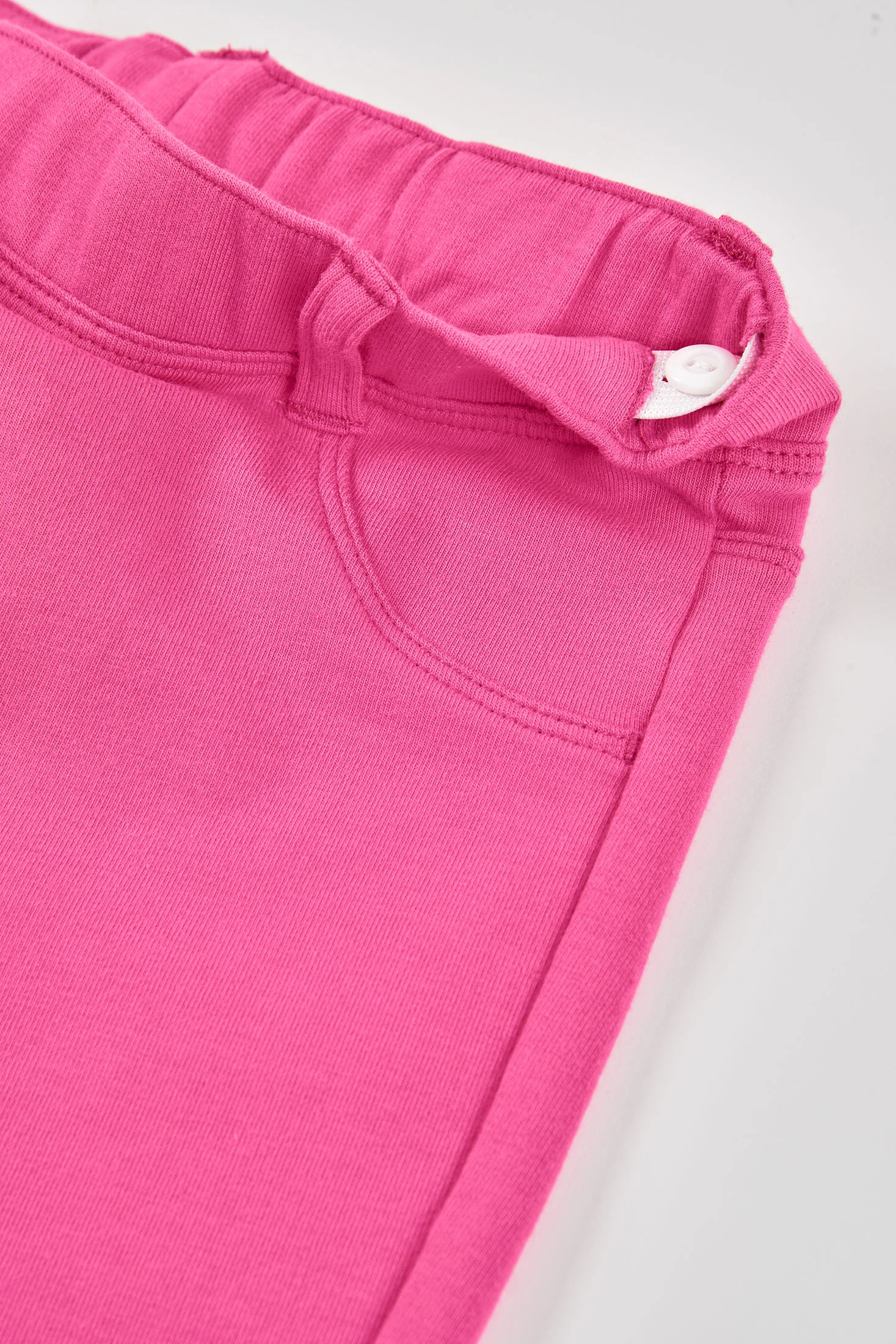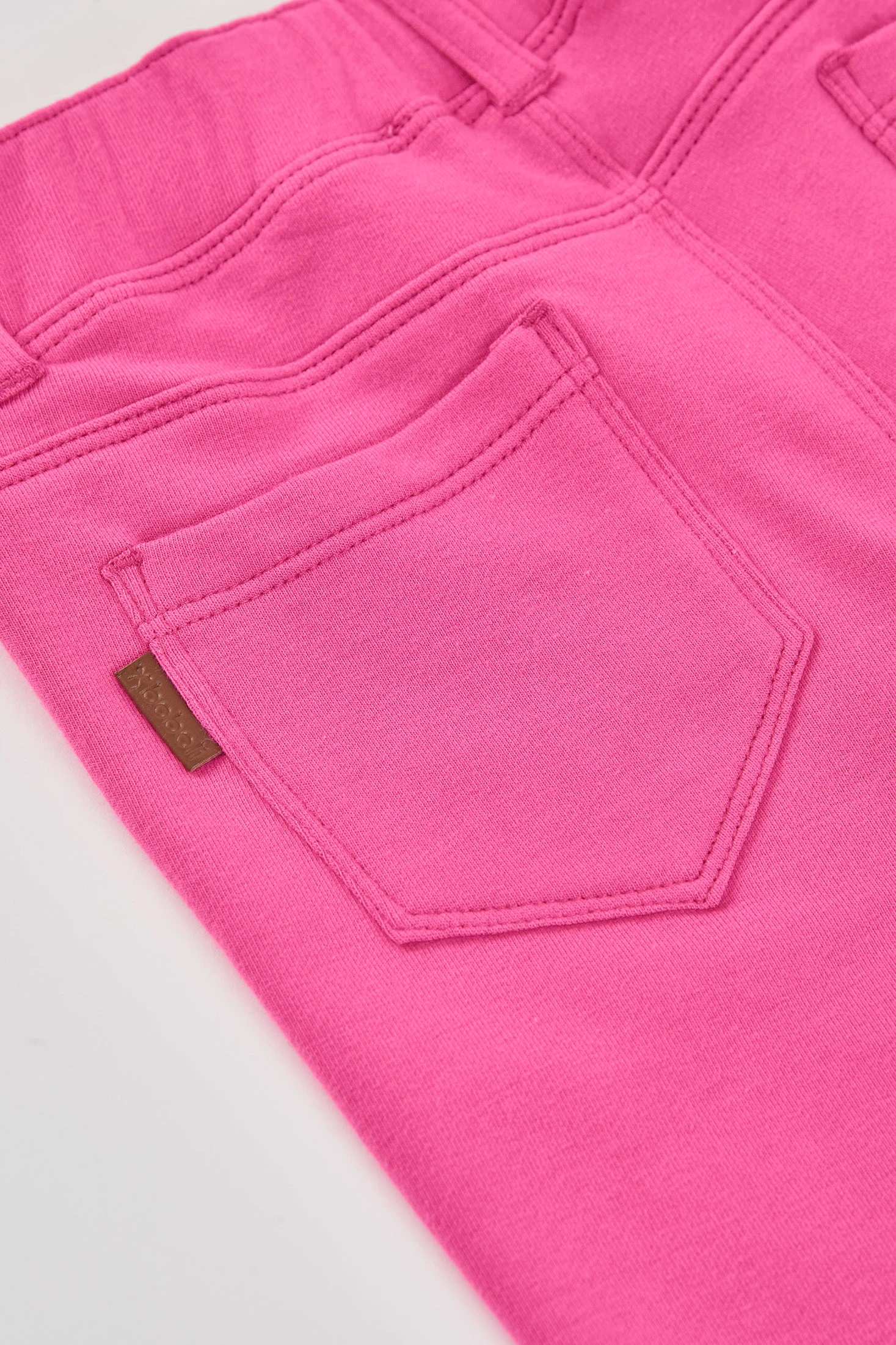 Calças de pelfa rosa para menina, perfeitas para o dia a dia. O seu tecido suave proporciona conforto e permite liberdade de movimento. O design simples e liso torna-as fáceis de combinar. Ideais para meninas de 12 meses até aos 14 anos, oferecem versatilidade no seu uso. As costuras reforçadas acrescentam durabilidade, e a cintura elástica assegura um ajuste confortável. Perfeitas para combinar com camisetas de cores vivas ou neutras e criar um look casual e moderno.