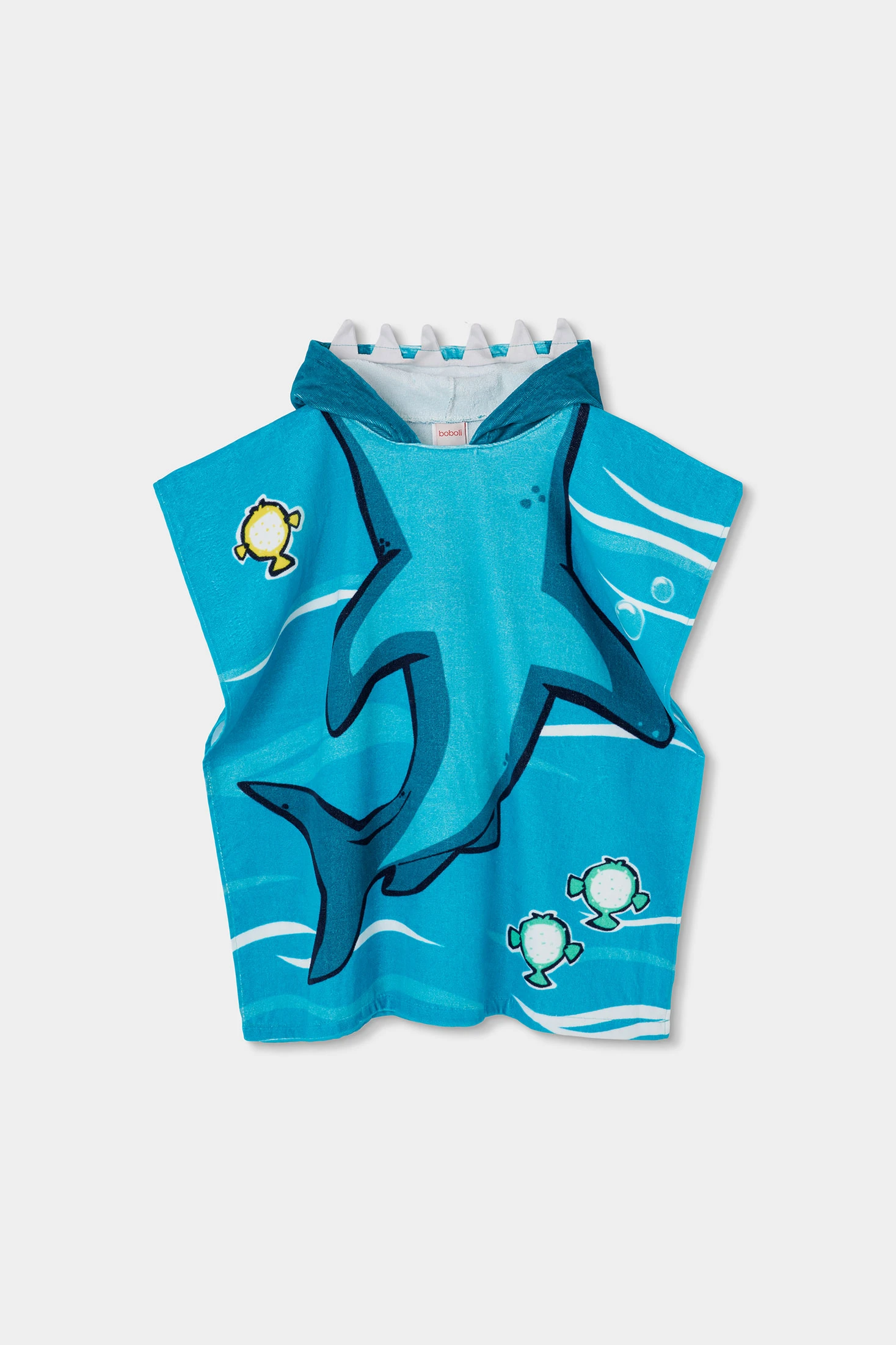 Toalha com capuz infantil confeccionada em suave algodão azul, perfeita para os mais pequenos. O seu design apresenta uma divertida estampa de um tubarão e outros animais marinhos, ideal para atrair a atenção das crianças. Destinada a idades de 12 meses até 10 anos, assegura conforto e funcionalidade após o banho ou na praia. O capuz ajuda a manter a cabeça quente, enquanto o seu tecido absorvente garante uma secagem rápida. Esta toalha é uma escolha prática e divertida para qualquer ocasião aquática.