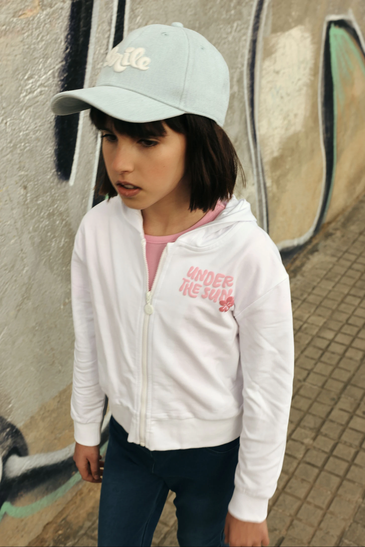 Boné denim bleach com bordado