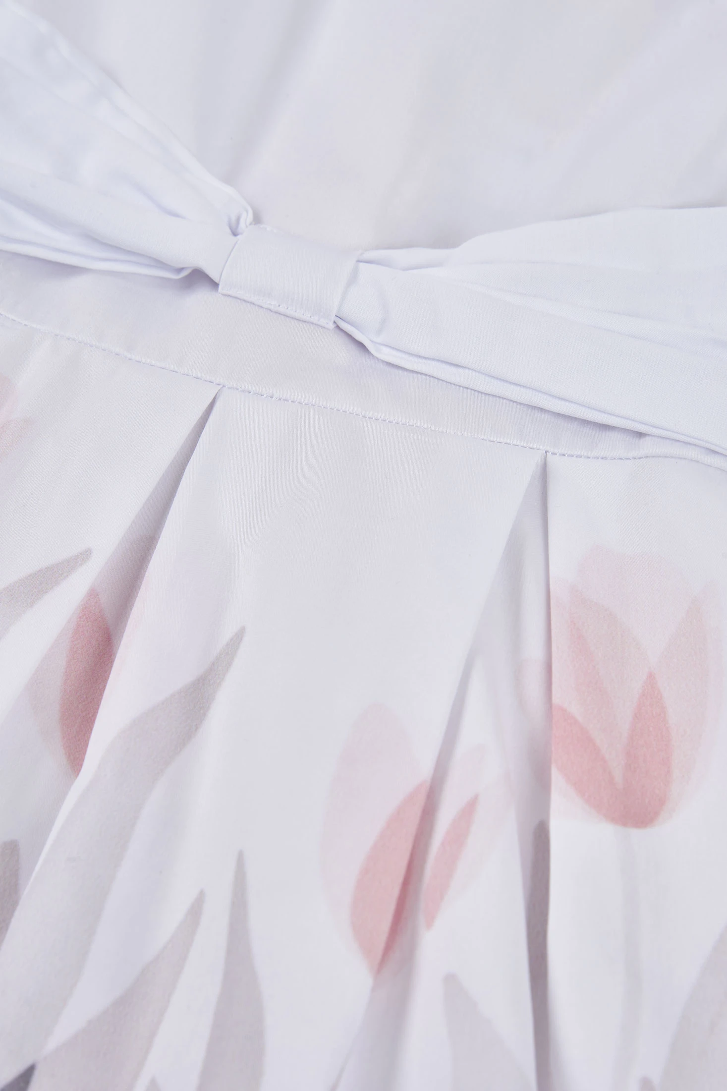 Elegante vestido branco de cetim sem mangas, perfeito para ocasiões especiais. O seu design incorpora delicados detalhes florais em tons rosa e cinza. Confeccionado em cetim, oferece um acabamento suave e brilhante. Disponível em tamanhos desde 12 meses até 10 anos, adaptando-se ao crescimento das pequenas. Ideal para conjuntos formais, o seu estilo impecável torna-o uma escolha destacada para eventos.