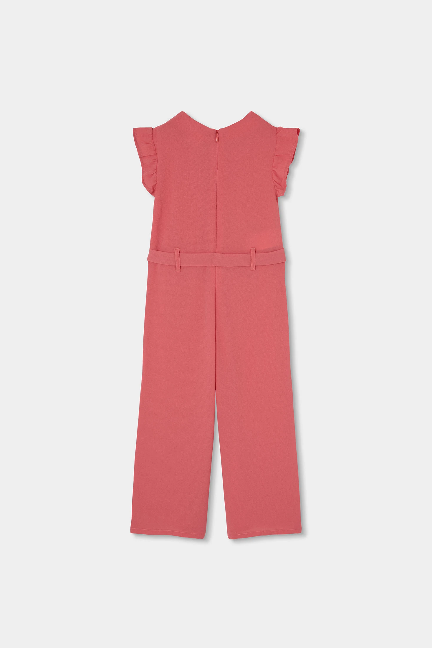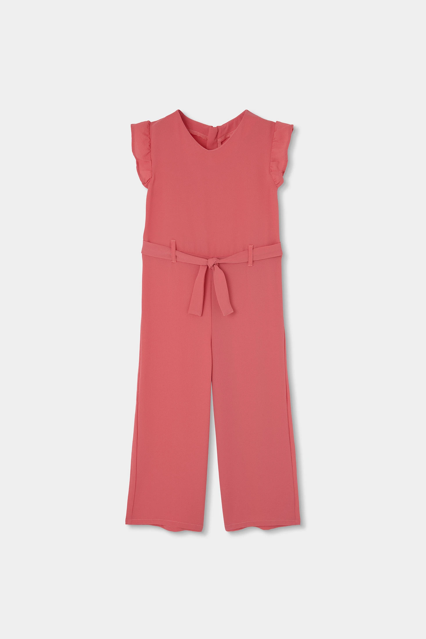 Macacão sem mangas para menina, ideal para ocasiões especiais. Confeccionado em material de crepe suave, oferece conforto e um estilo elegante. O design rosa apresenta folhos nas mangas e um cinto ajustável que adiciona um toque encantador. Disponível em tamanhos de 2 a 14 anos. Perfeito para combinar com uma jaqueta leve ou acessórios simples, este macacão é uma opção versátil para se destacar em celebrações ou eventos familiares.
