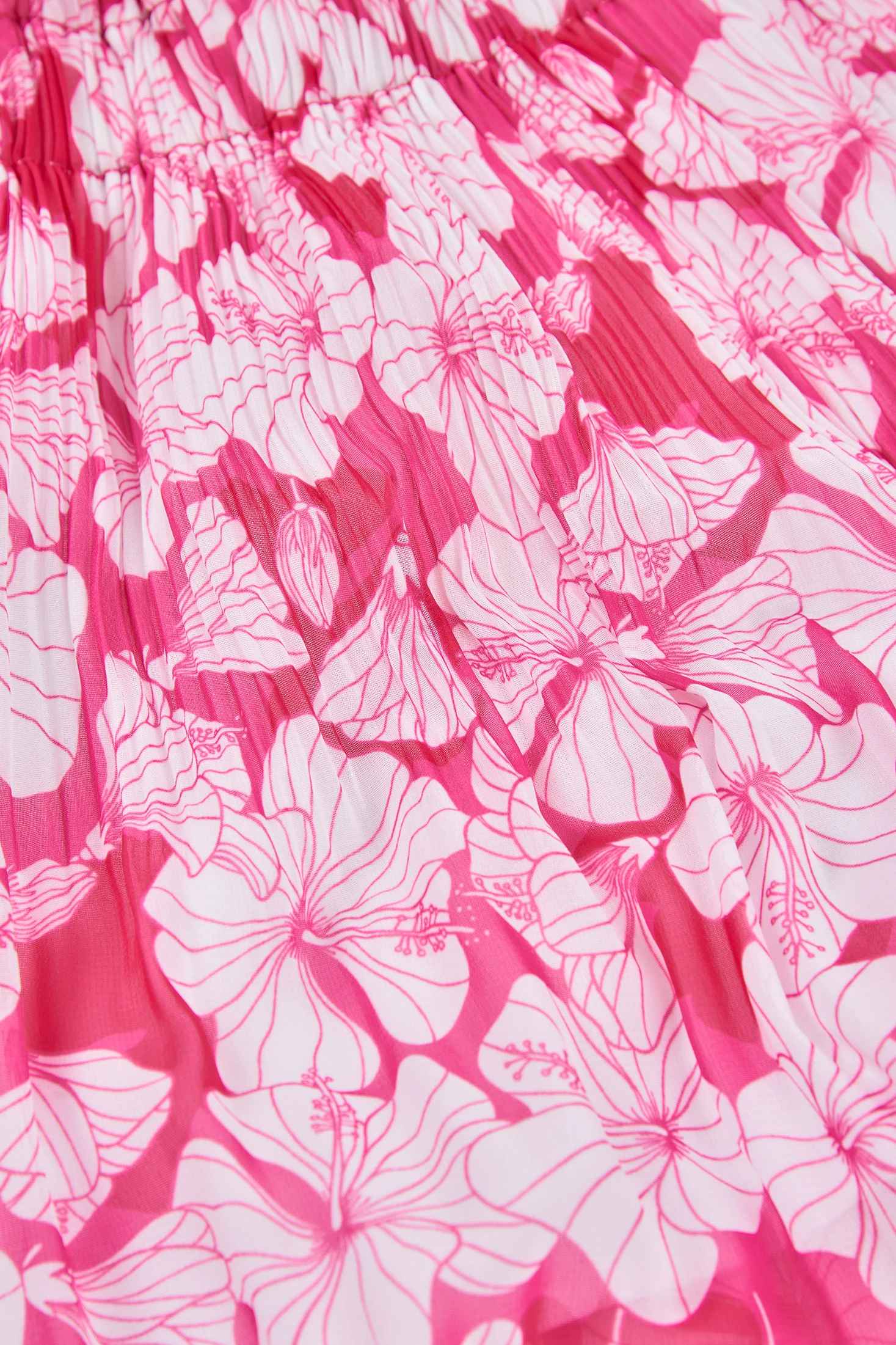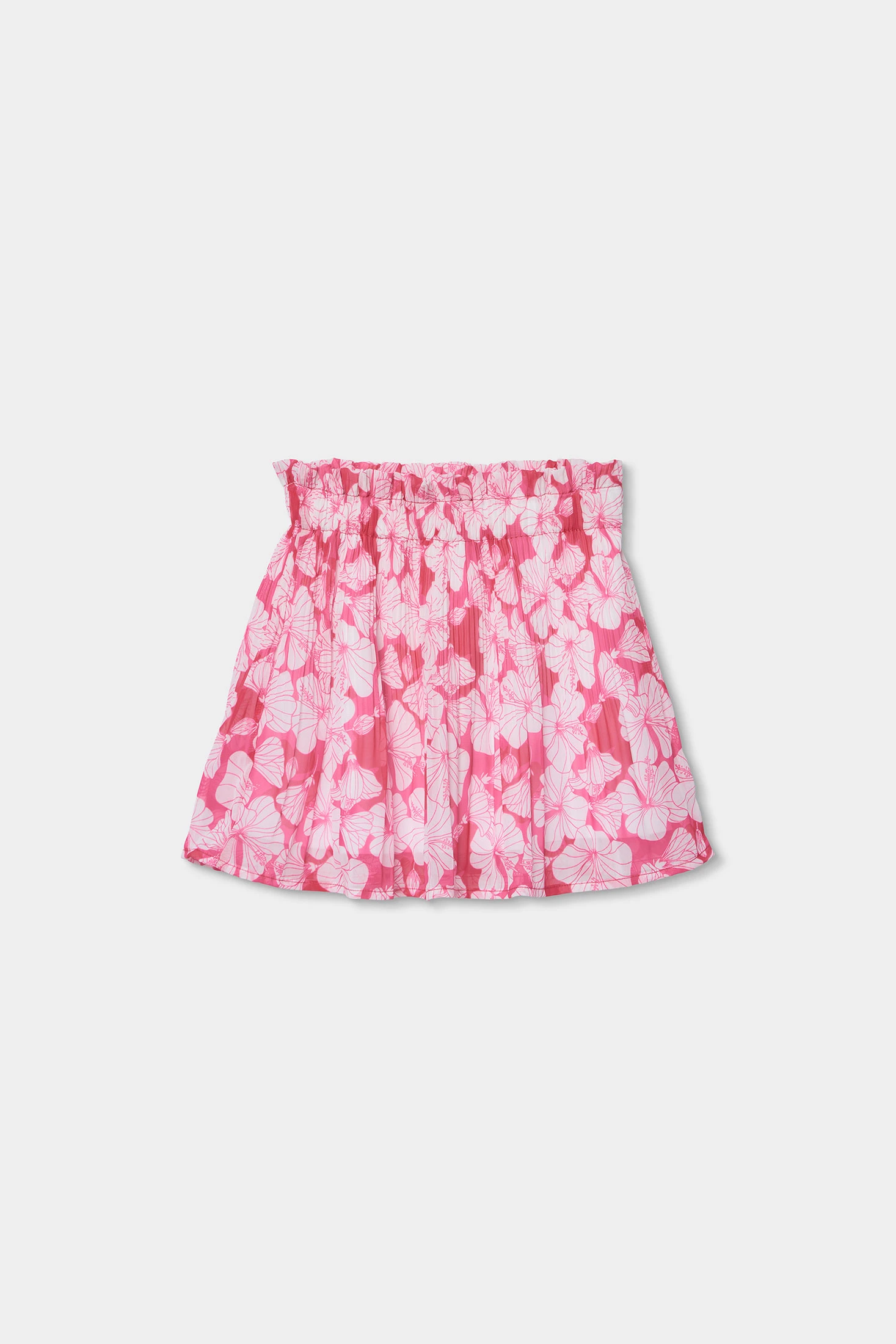 Saia de chiffon estampada para menina ideal para adicionar um toque de estilo fresco e alegre. Disponível em tamanhos desde os 2 até os 14 anos. O seu design leve e fluido em cor rosa com estampado floral é perfeito para ocasiões especiais ou para o dia a dia. O material de chiffon proporciona conforto e movimento, enquanto que a sua cintura elástica garante um ajuste confortável. Combina perfeitamente com camisetas simples ou blusas elegantes, oferecendo versatilidade para diferentes estilos e eventos.