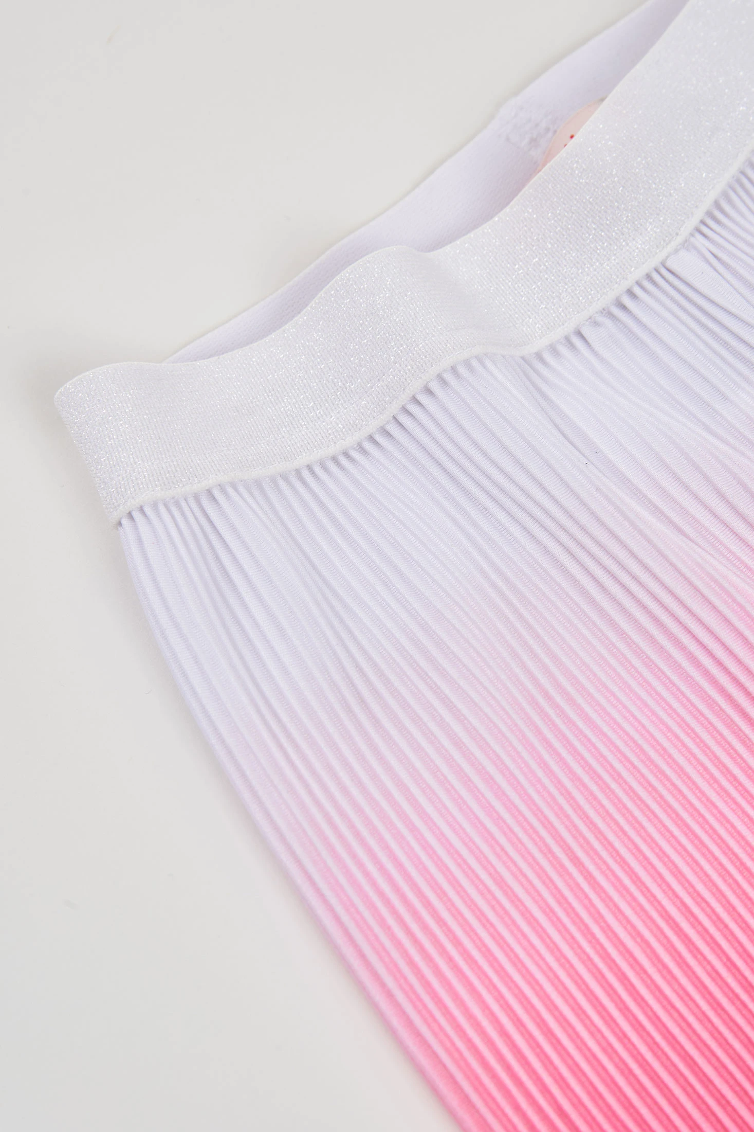 Calças para menina perfeitas para adicionar cor e estilo ao guarda-roupa. Fabricadas com um material plissado que garante conforto e frescura, são ideais para a temporada de primavera e verão. O design em degradê de morango a branco é moderno e atraente. Os tamanhos disponíveis vão dos 2 aos 14 anos. Peça versátil que pode ser facilmente combinada com camisolas ou blusas simples para um visual de verão fresco. A cintura elástica assegura um ajuste confortável para o uso diário.
