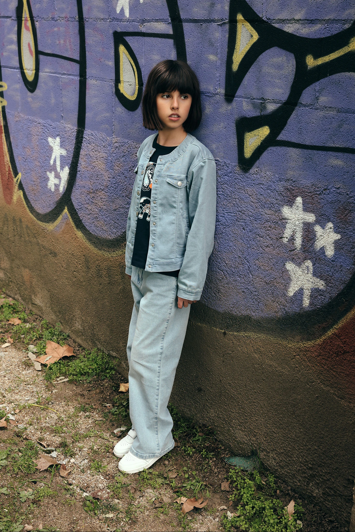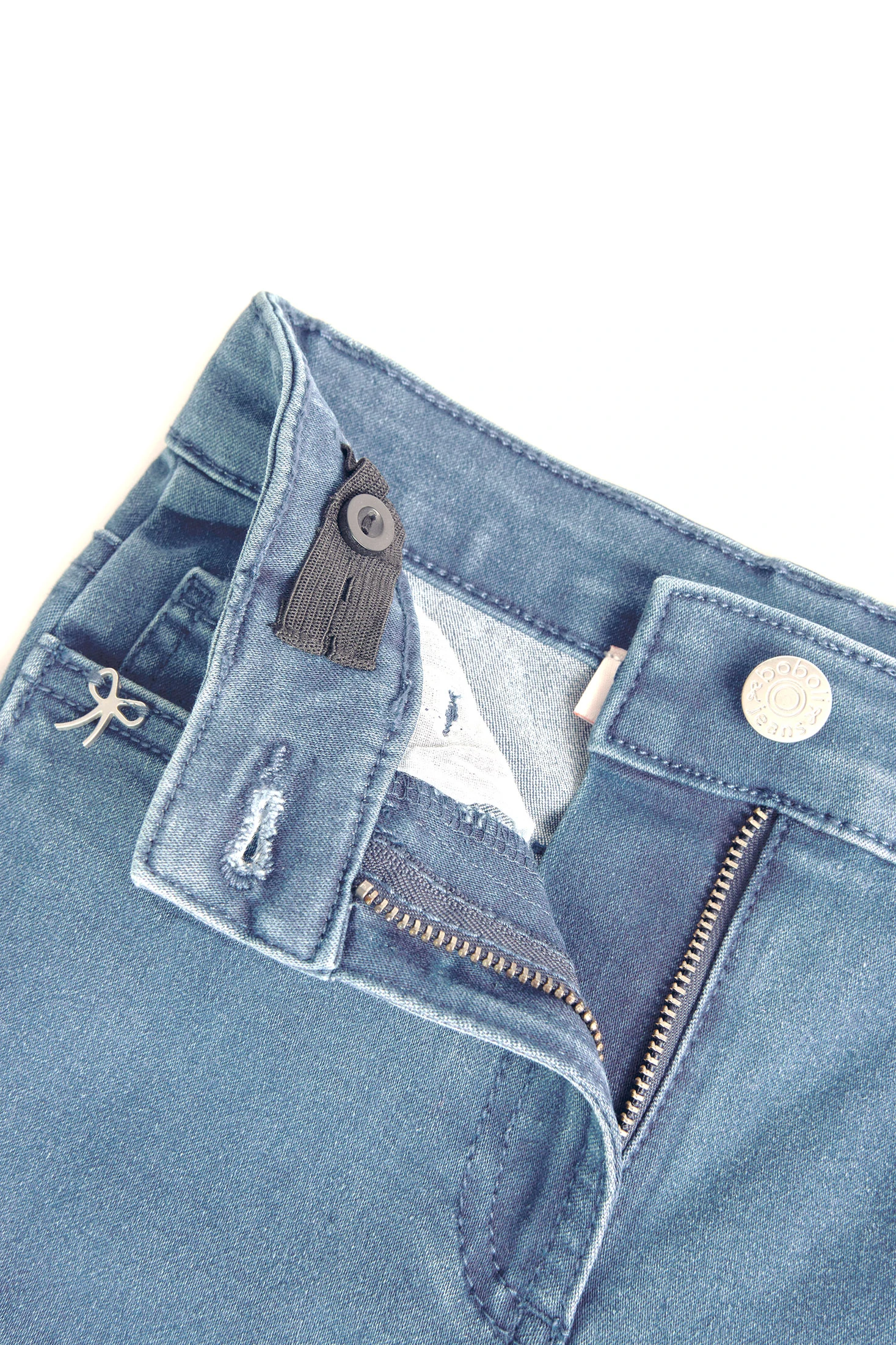 Calças em denim elástico para menina. De cor bleach, apresentam um design liso com acabamento denim, ideal para um estilo casual e confortável. São confeccionadas num tecido denim flexível, com uma composição de 80% algodão e 20% poliéster, que proporciona conforto e um ajuste agradável para o dia a dia. Uma peça versátil e prática, perfeita para combinar com diferentes looks infantis.