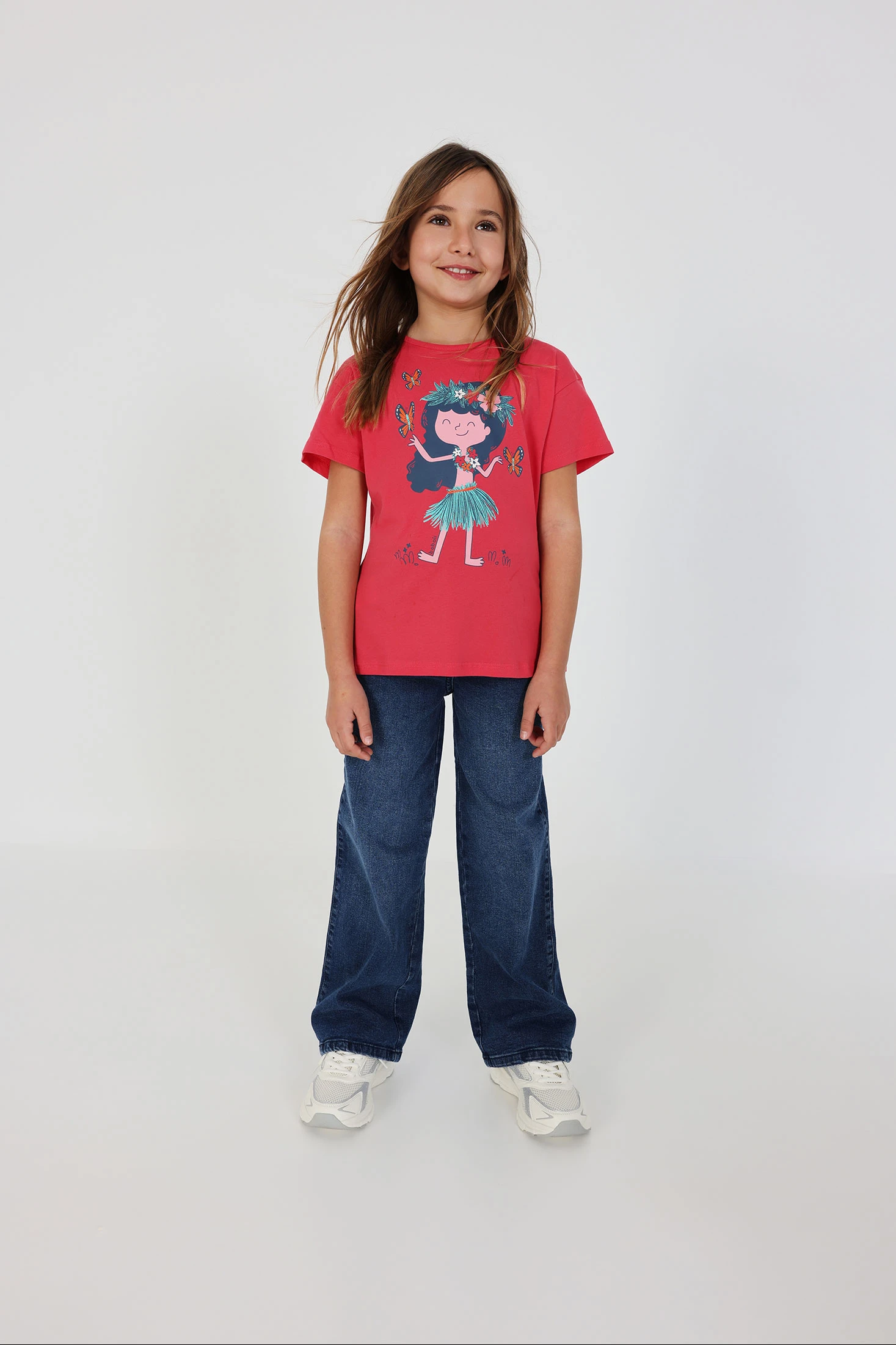 Calças menina em denim elástico azul