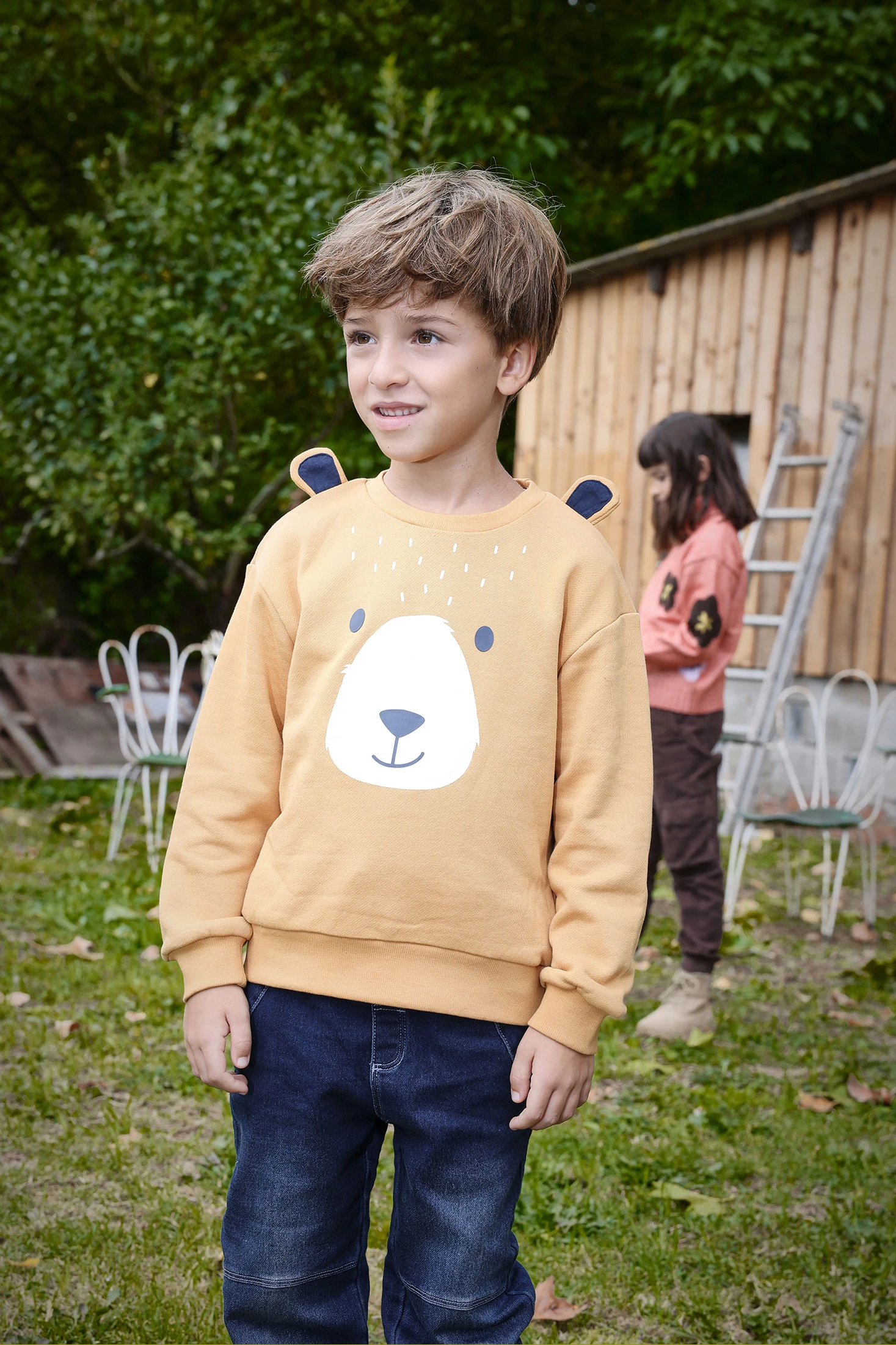 Sweatshirt menino de felpa amarela animal