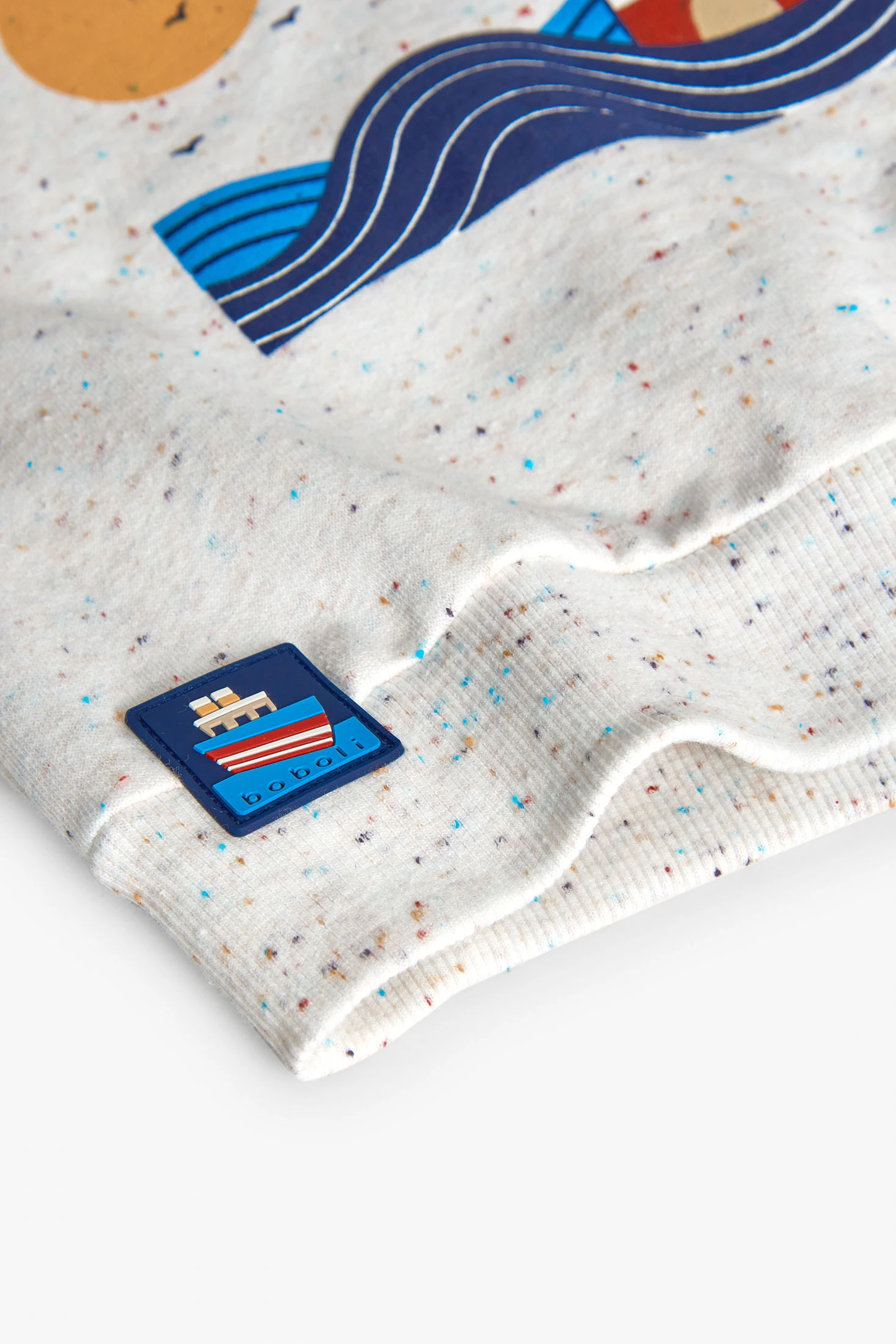 Sweatshirt de felpa para menino em cor branca, desenhada para proporcionar calor e conforto durante o outono e inverno. Um encantador estampado de um farol e sol adiciona um toque divertido e original ao guarda-roupa infantil. A sua gola redonda e mangas compridas oferecem proteção nos dias frios, e está disponível em tamanhos de 12 meses a 10 anos. Esta peça versátil coordena-se facilmente com jeans ou calças, criando um look casual e alegre, perfeito para qualquer ocasião.