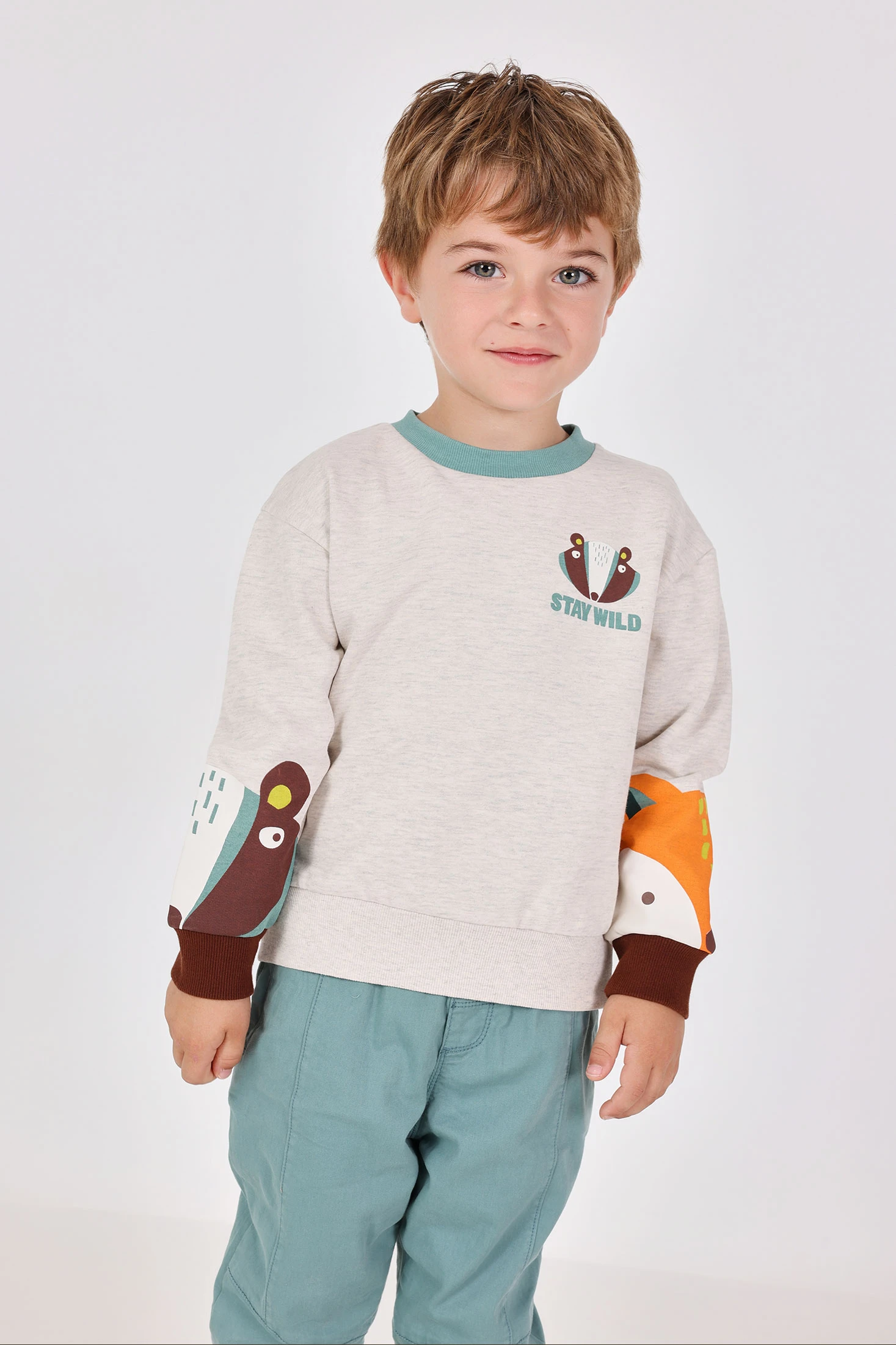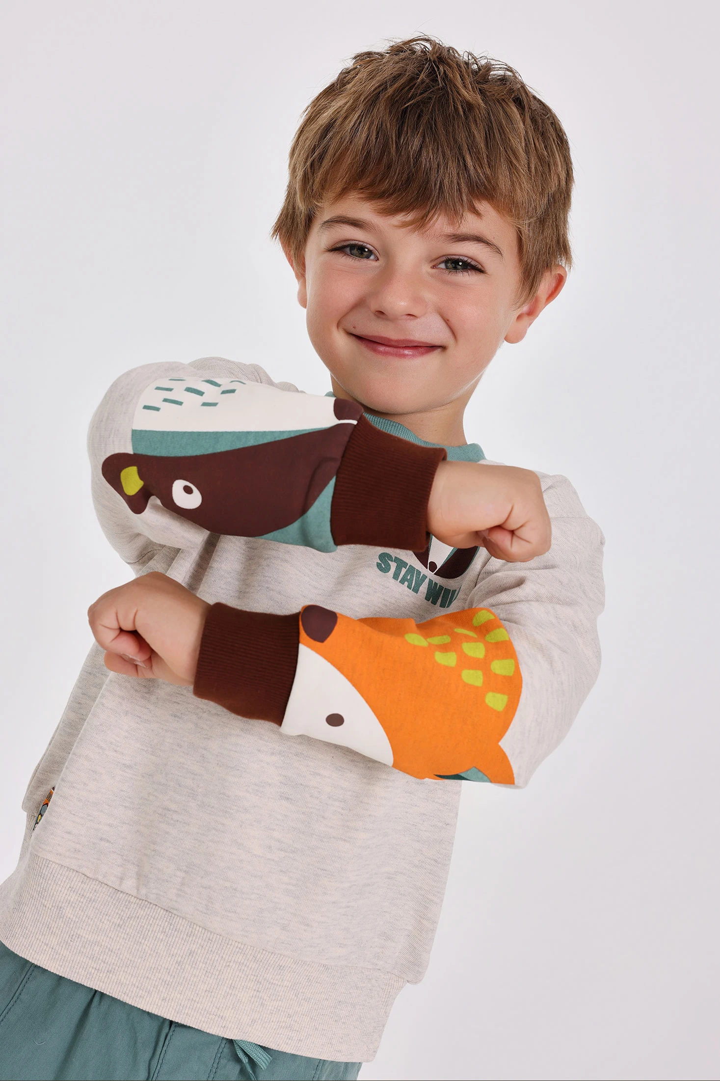 Sweatshirt de felpa para menino, num tom bege, apresenta-se como a escolha ideal para as temporadas de outono e inverno, graças à sua confeção em algodão suave que oferece calor e conforto. Este design inclui uma encantadora estampa de animais que adiciona um toque de diversão ao guarda-roupa do seu pequeno sem perder o estilo. Para maior comodidade, conta com botões no ombro que facilitam a troca de roupa. Disponível em tamanhos que vão desde 12 meses até 10 anos.
